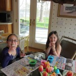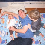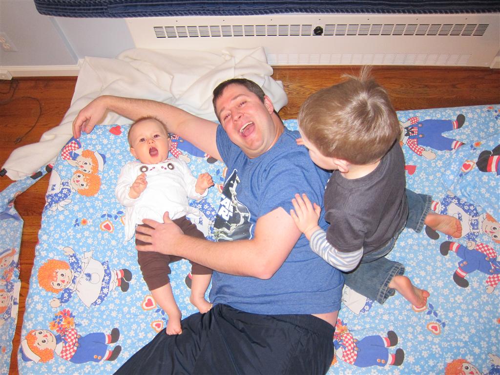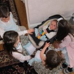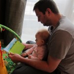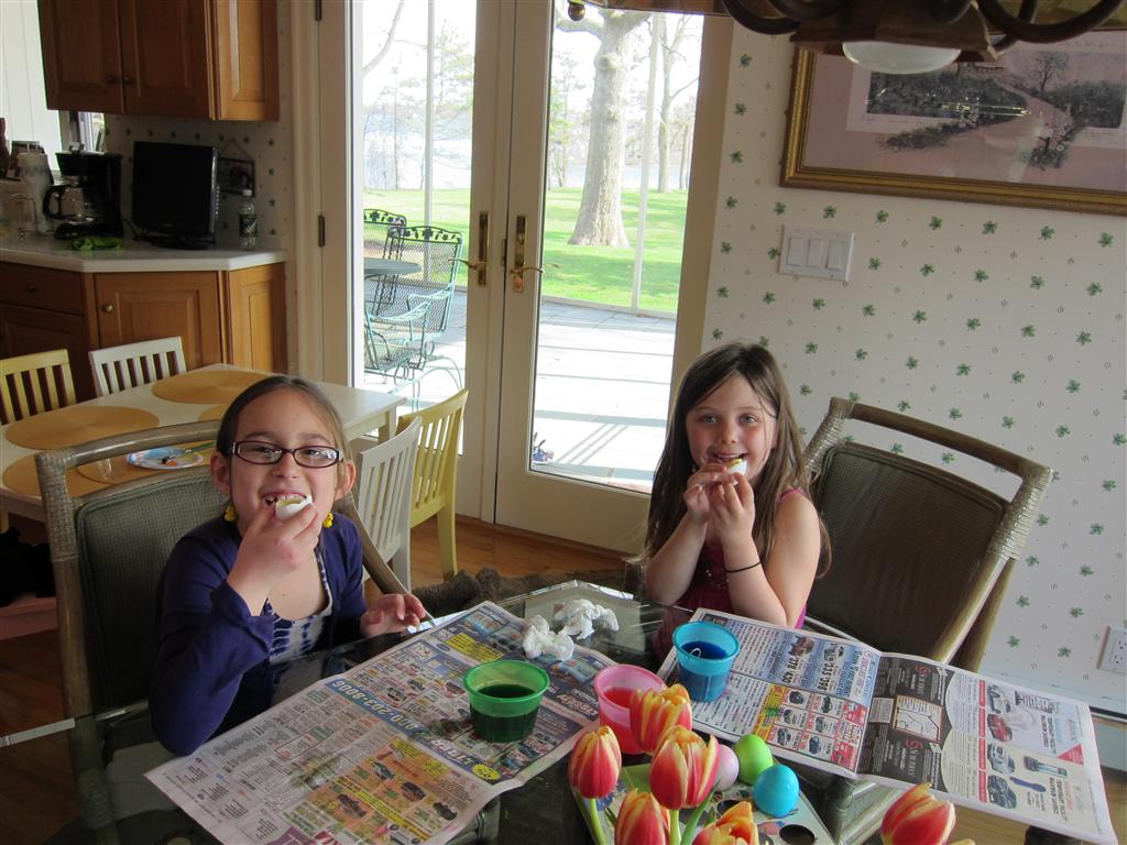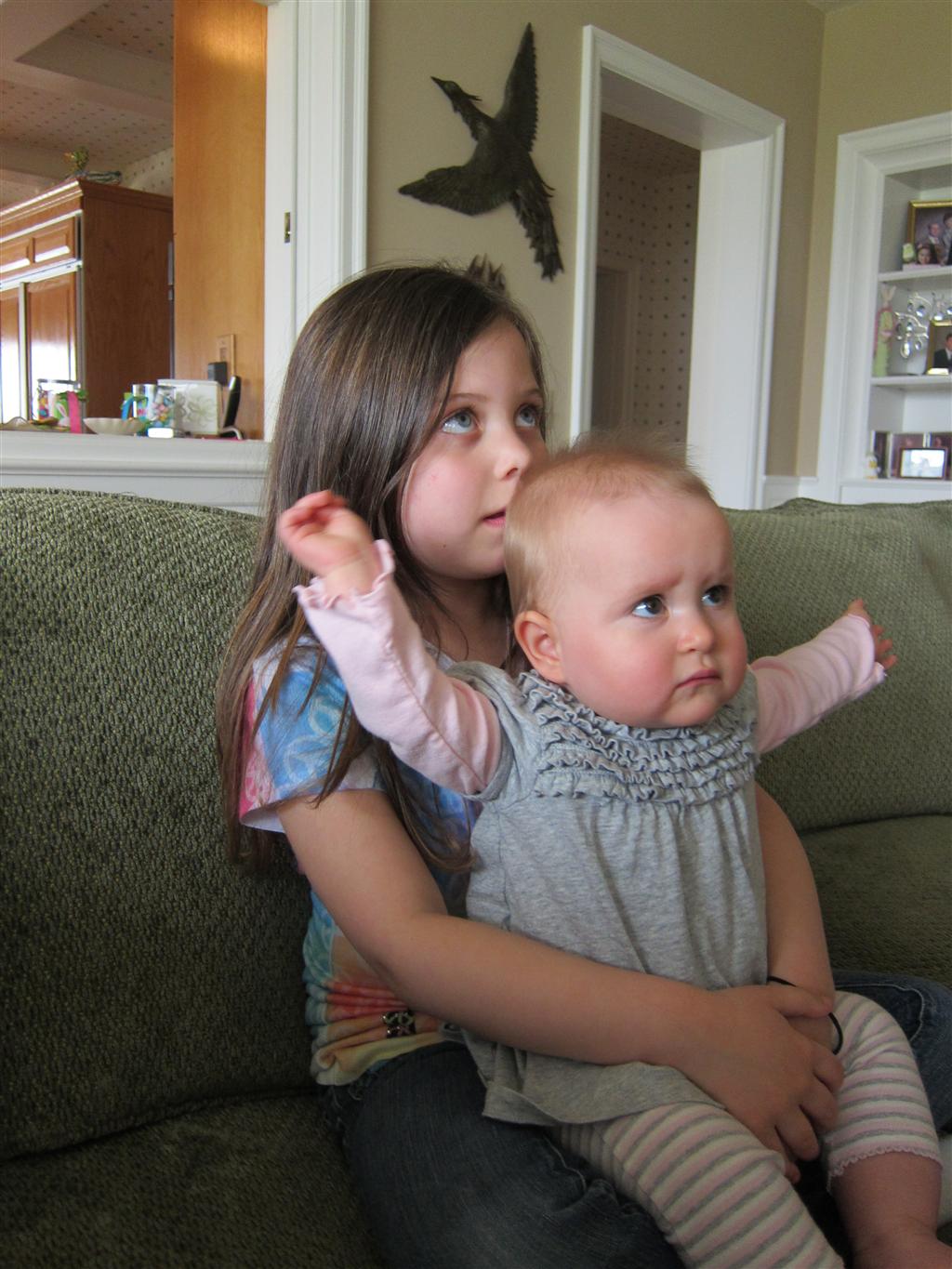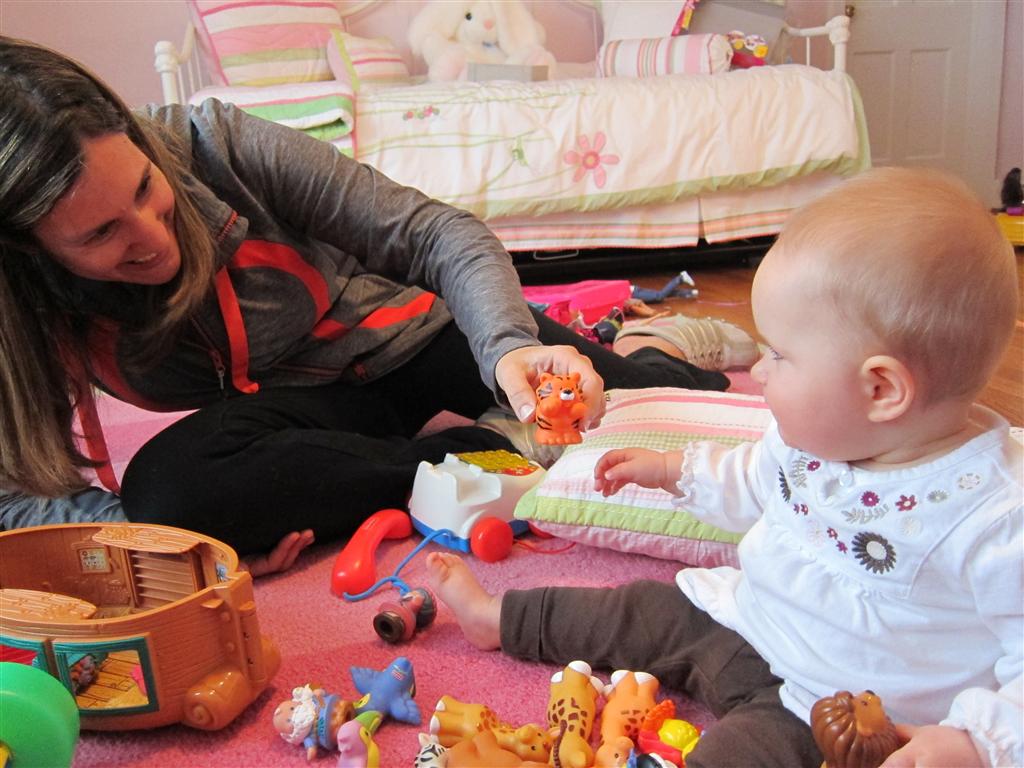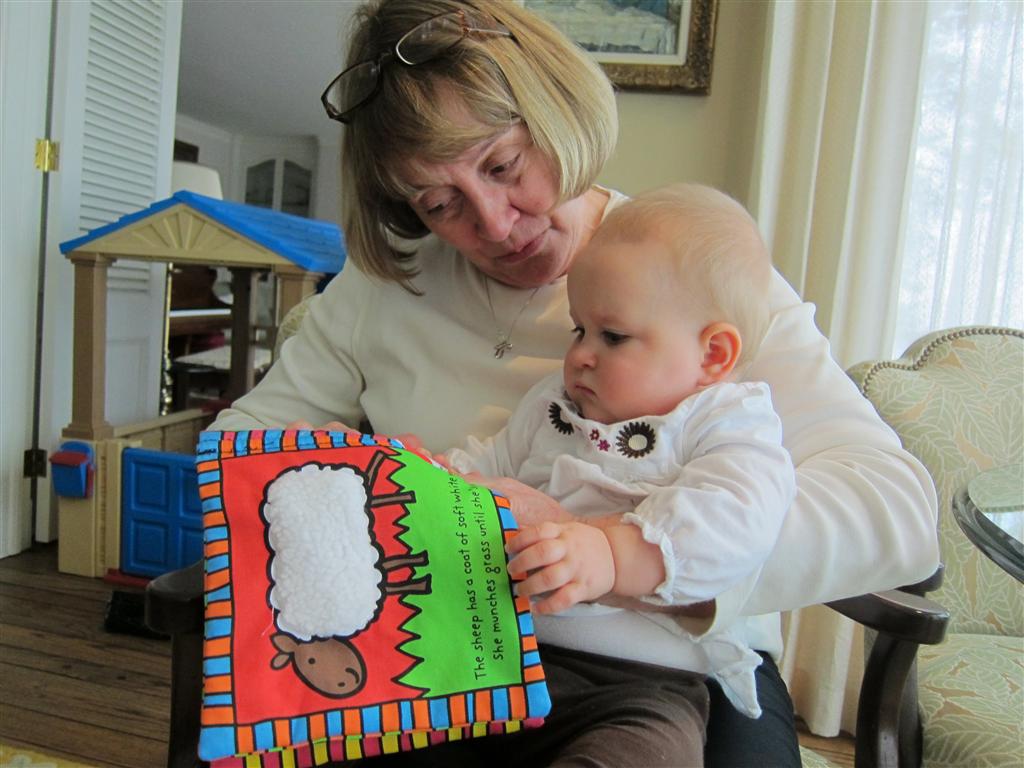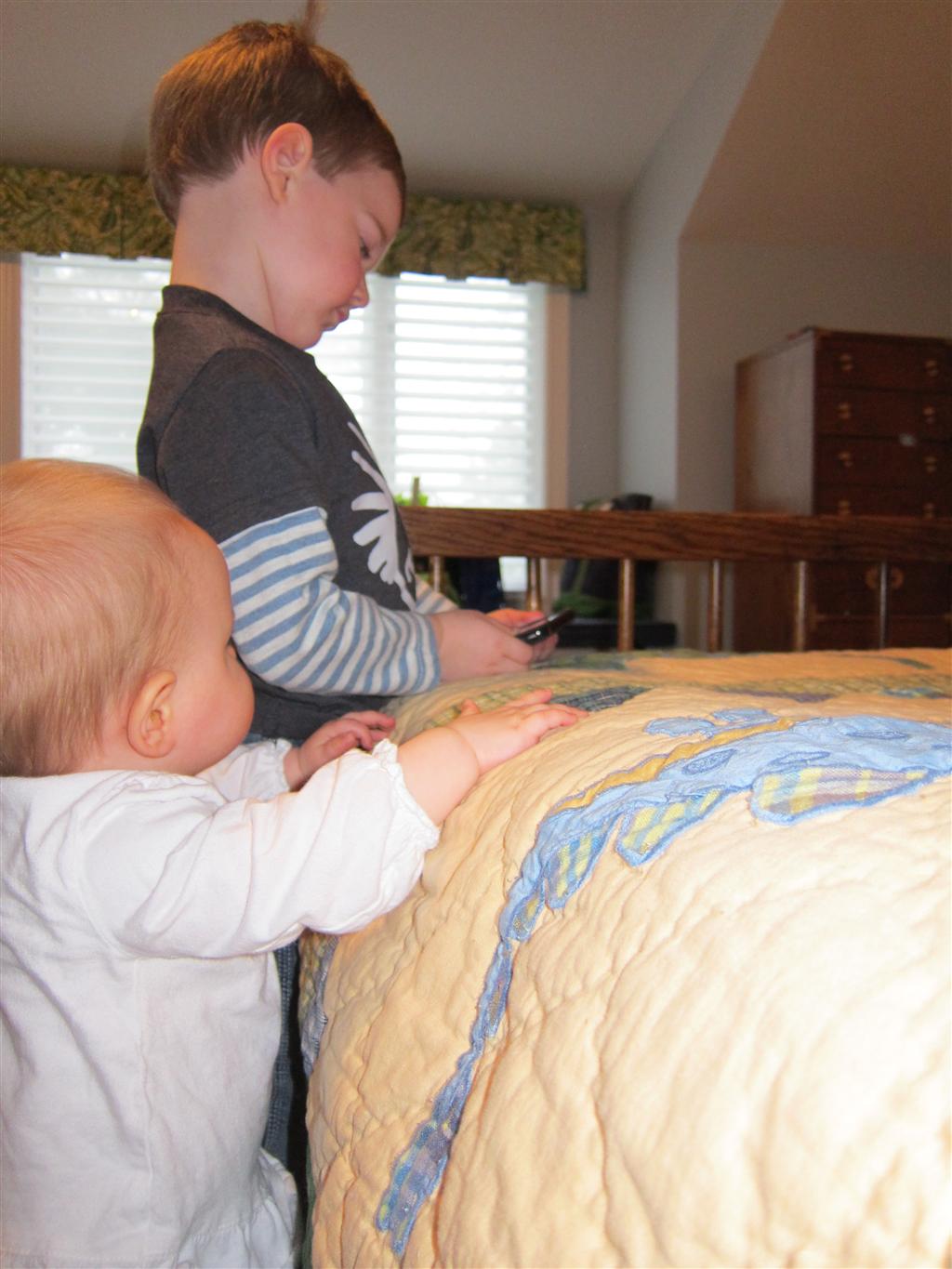 Eleanor spent her first Easter at Grandma and Grandpa’s house – and what a full house it was! Mackenzie, Jack, Ben, Mahlia and Brooke were all there too! She was super excited to meet Mahlia and Brooke for the first time – and Aunt Kristen and Uncle Michael too! Grandma and Grandpa had a standing table that was the perfect height for Eleanor – and she got lots of practice standing and even trying to pull herself up from sitting. She also got to try a ride-on toy for the first time, with mixed results. We need to work on the balance a bit more :) Eleanor did well with her first picture with the Easter Bunny – no crying but also no smiles. She also adjusted well to being one of six kids in the house – quite a change (and quite a lot more head rubbing) from the only child quiet of home. Oh yeah, and on Monday night Eleanor sat up all by herself in her crib! Time to lower the mattress again :)