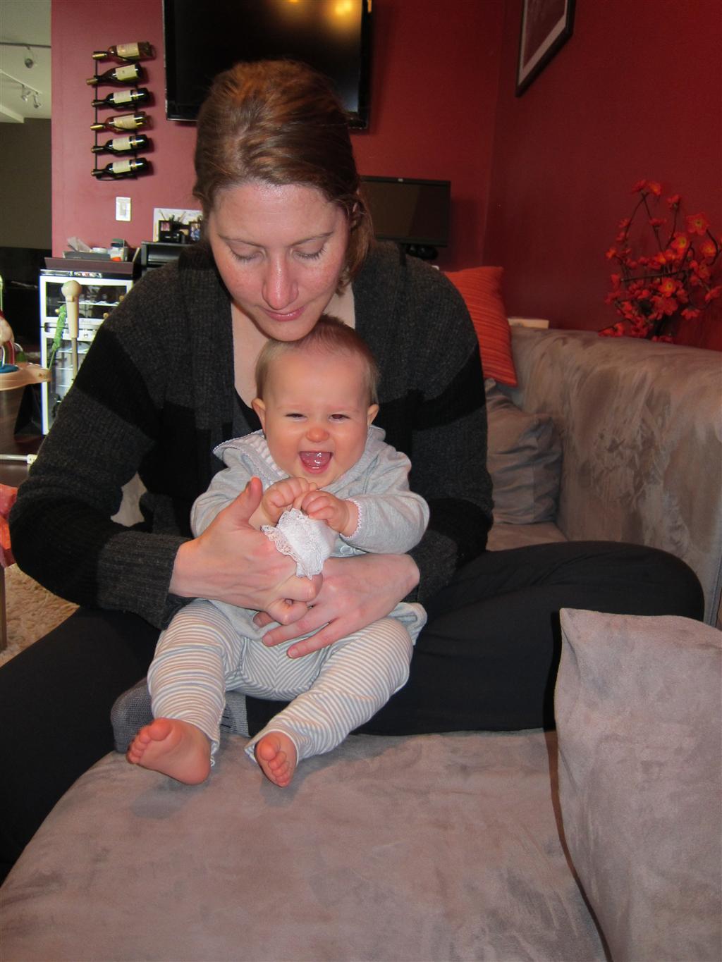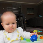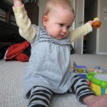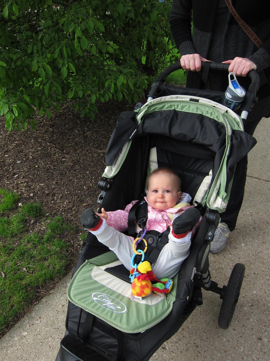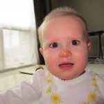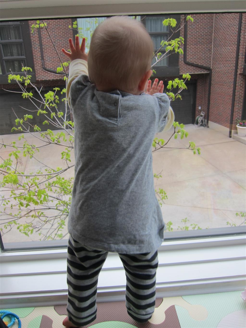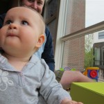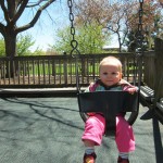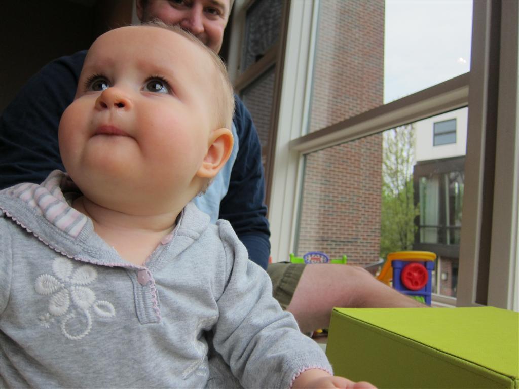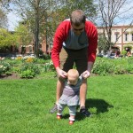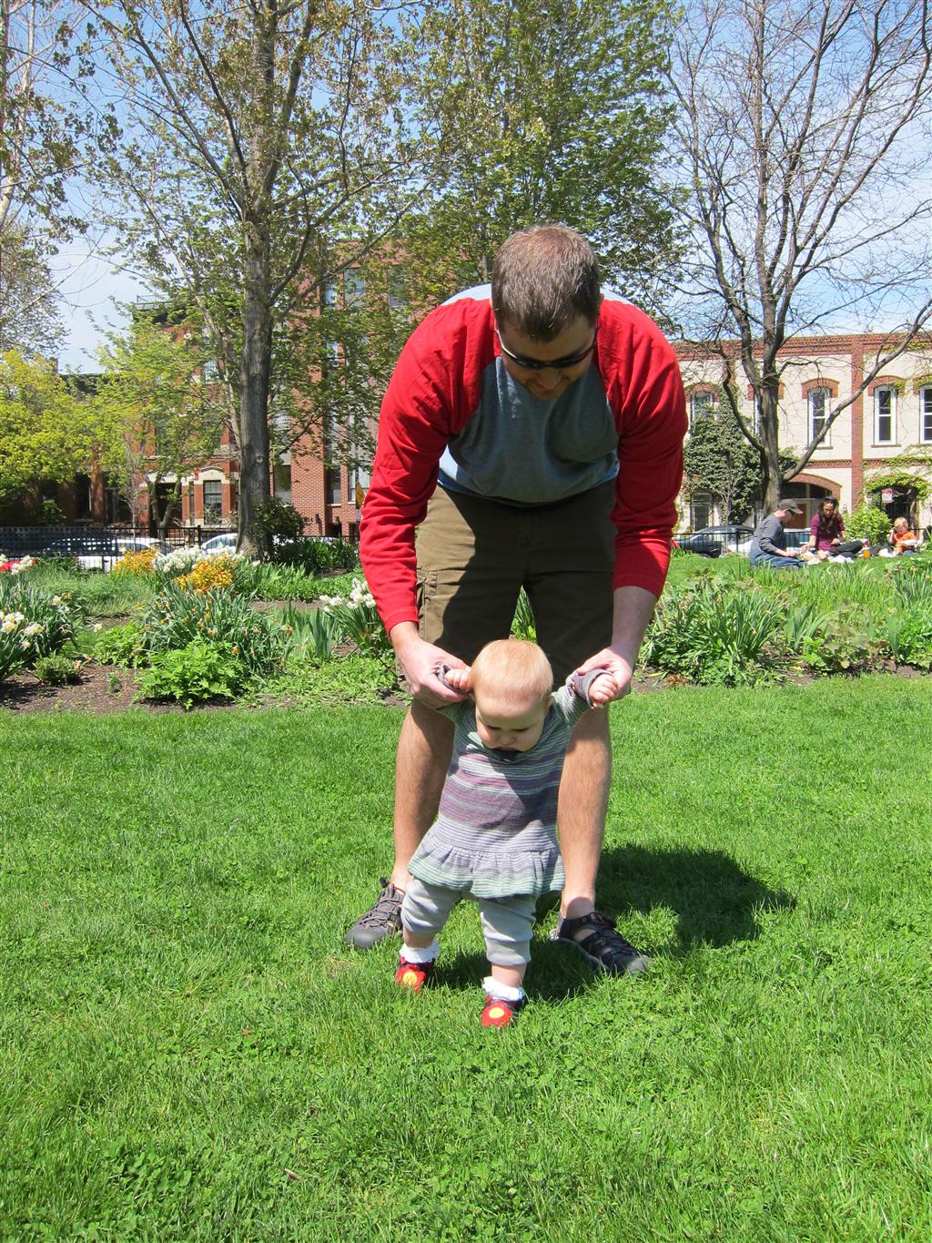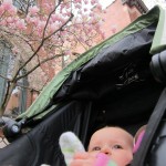 Eleanor turned 9 months this week – and got her first tastes of spring. With the weather finally turning warm, she was out on the town, visiting some local parks, trying out the swings, and taking in the neighborhood flowers. She discovered grass for the first time – and it received only a passing interest. Eleanor also celebrated her first Cinco de Mayo with lunch at a local Mexican restaurant (unfortunately they didn’t have pureed spinach, pears and peas in taco form on the menu). Eleanor’s main focus during the week was working on perfecting her standing up – along with developing a surprising loud raspberry bubble that I’m pretty sure Aunt Lary taught her. On saturday she was tormented by a tasty looking carrot cupcake just out of reach, and on Sunday she celebrated Mother’s Day with some flowers and quality mommy time.
