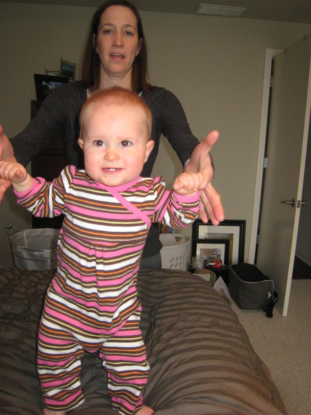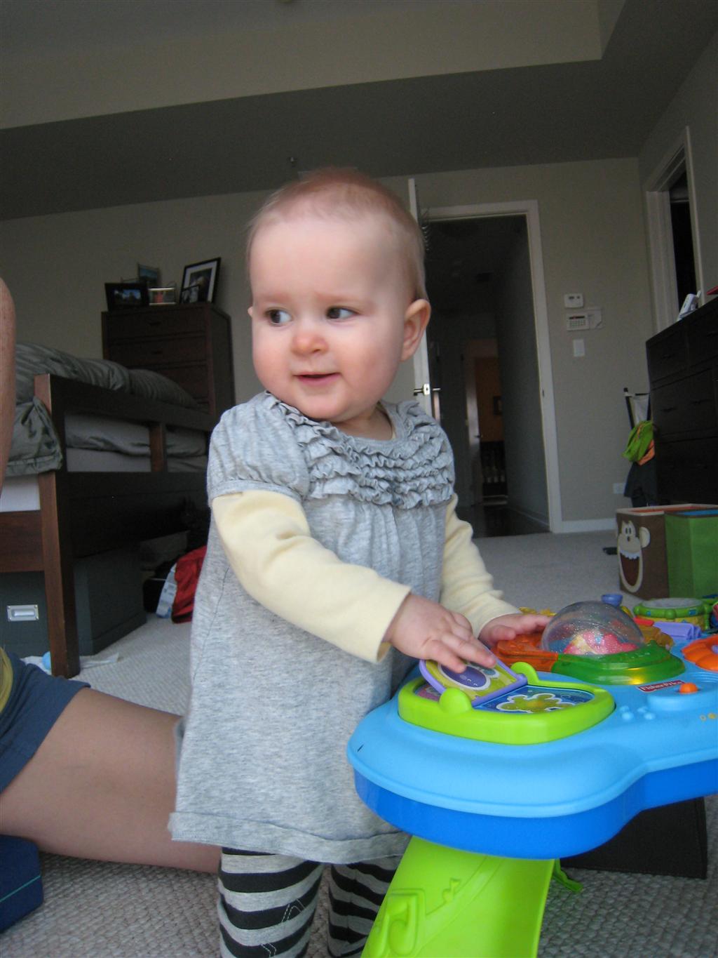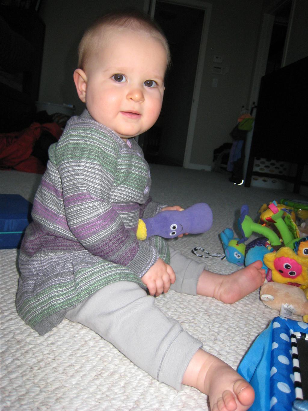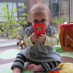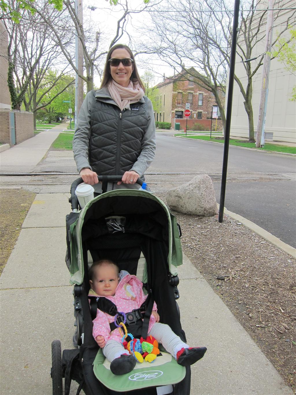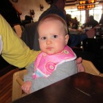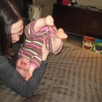 Eleanor turned 9 months this week – and got her first tastes of spring. With the weather finally turning warm, she was out on the town, visiting some local parks, trying out the swings, and taking in the neighborhood flowers. She discovered grass for the first time – and it received only a passing interest. Eleanor also celebrated her first Cinco de Mayo with lunch at a local Mexican restaurant (unfortunately they didn’t have pureed spinach, pears and peas in taco form on the menu). Eleanor’s main focus during the week was working on perfecting her standing up – along with developing a surprising loud raspberry bubble that I’m pretty sure Aunt Lary taught her. On saturday she was tormented by a tasty looking carrot cupcake just out of reach, and on Sunday she celebrated Mother’s Day with some flowers and quality mommy time.
