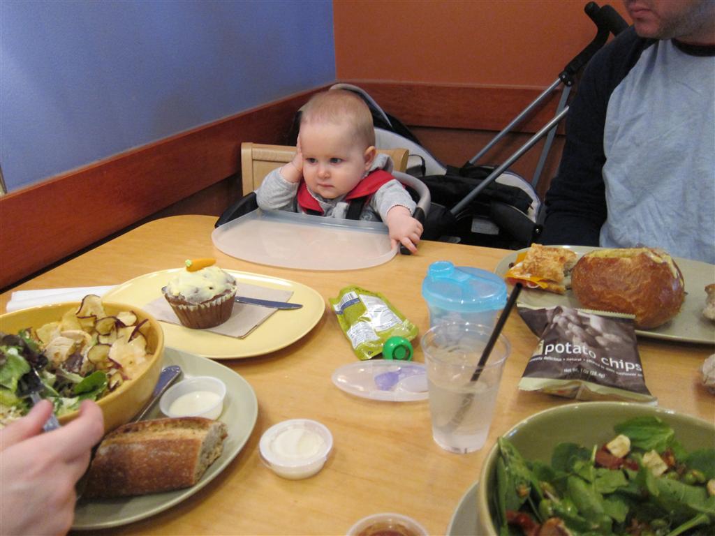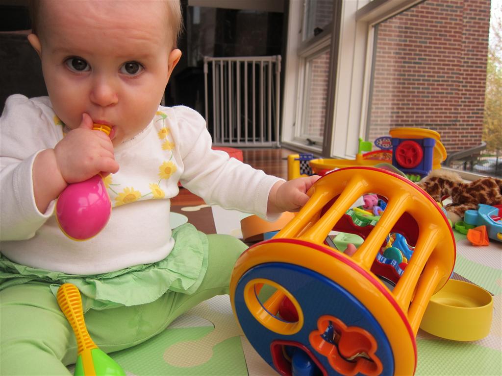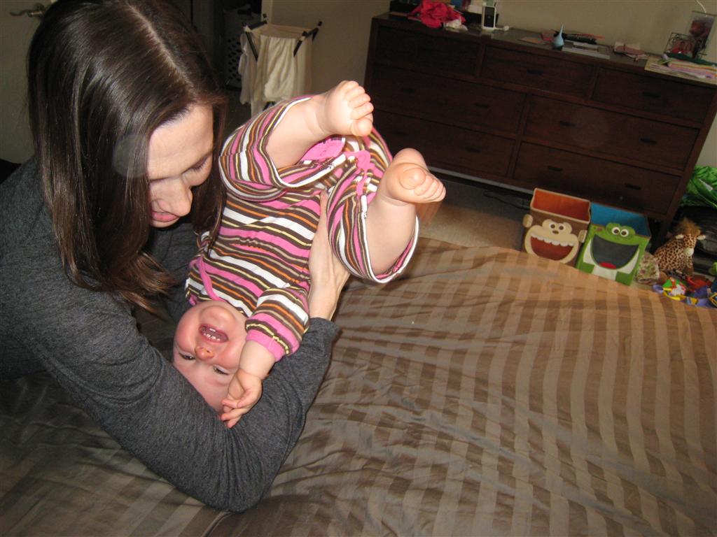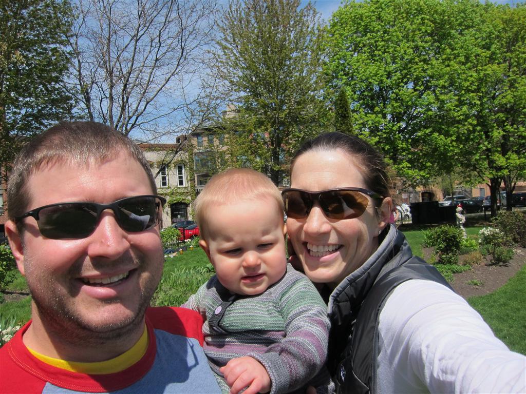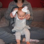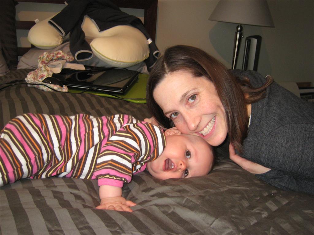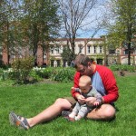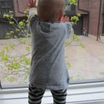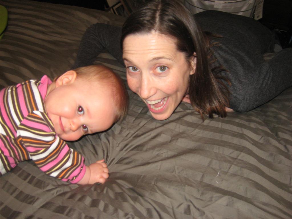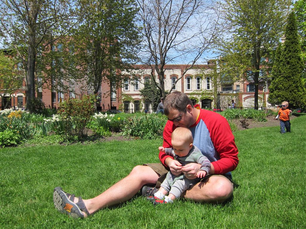 Eleanor turned 9 months this week – and got her first tastes of spring. With the weather finally turning warm, she was out on the town, visiting some local parks, trying out the swings, and taking in the neighborhood flowers. She discovered grass for the first time – and it received only a passing interest. Eleanor also celebrated her first Cinco de Mayo with lunch at a local Mexican restaurant (unfortunately they didn’t have pureed spinach, pears and peas in taco form on the menu). Eleanor’s main focus during the week was working on perfecting her standing up – along with developing a surprising loud raspberry bubble that I’m pretty sure Aunt Lary taught her. On saturday she was tormented by a tasty looking carrot cupcake just out of reach, and on Sunday she celebrated Mother’s Day with some flowers and quality mommy time.