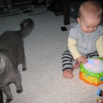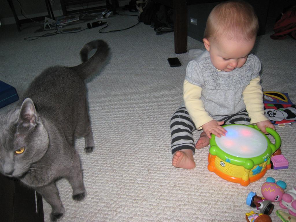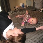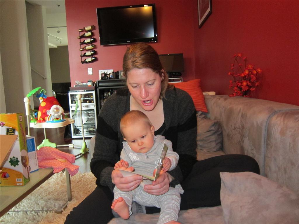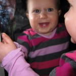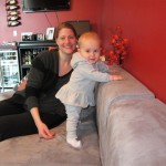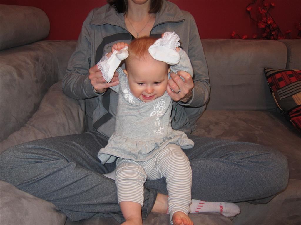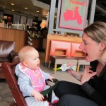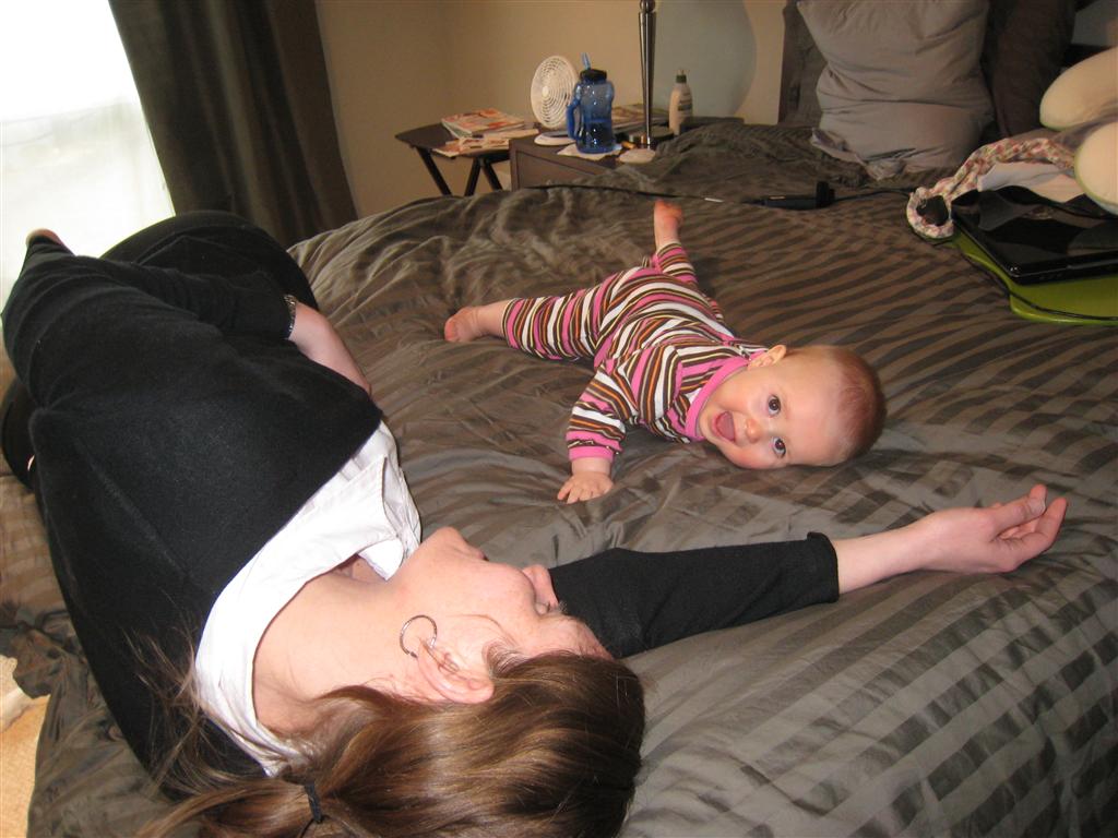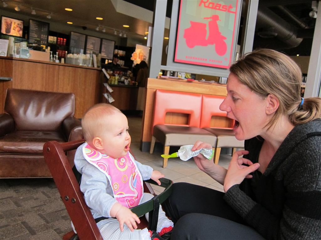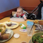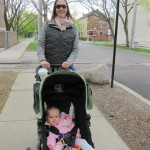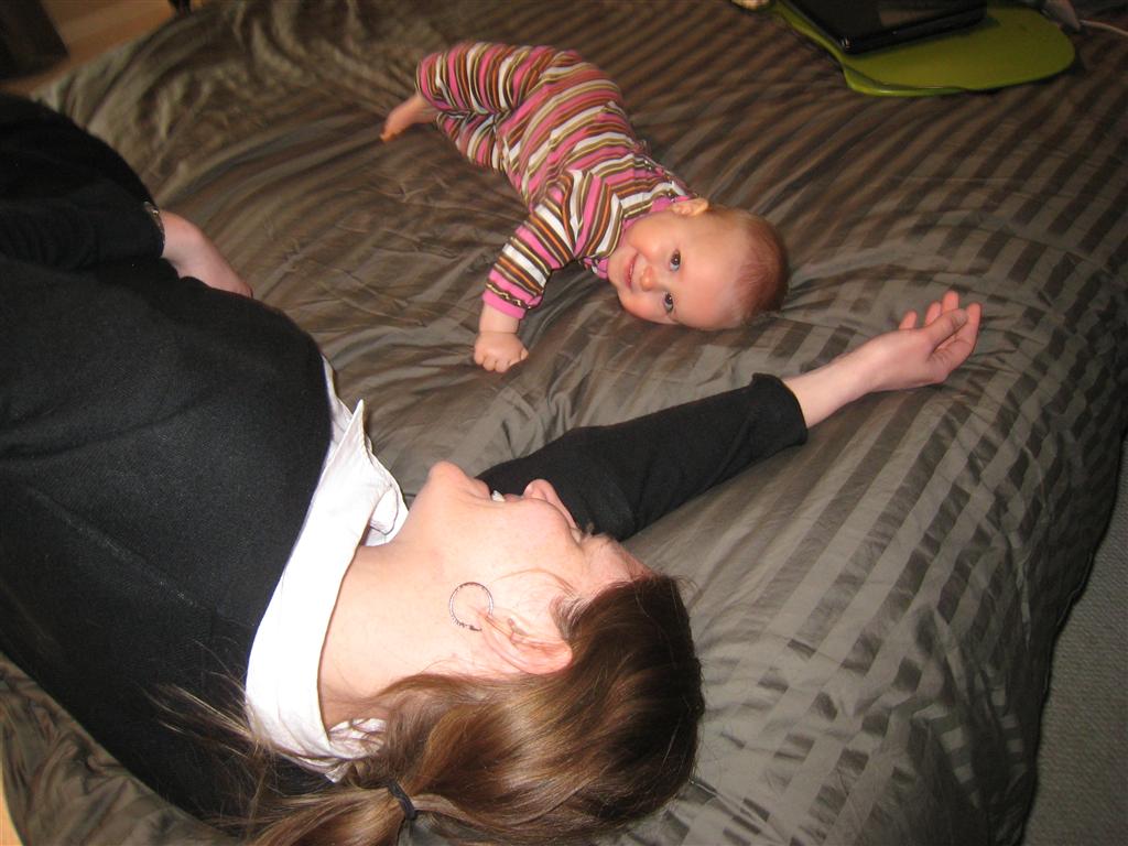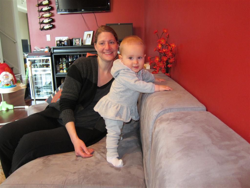 Eleanor turned 9 months this week – and got her first tastes of spring. With the weather finally turning warm, she was out on the town, visiting some local parks, trying out the swings, and taking in the neighborhood flowers. She discovered grass for the first time – and it received only a passing interest. Eleanor also celebrated her first Cinco de Mayo with lunch at a local Mexican restaurant (unfortunately they didn’t have pureed spinach, pears and peas in taco form on the menu). Eleanor’s main focus during the week was working on perfecting her standing up – along with developing a surprising loud raspberry bubble that I’m pretty sure Aunt Lary taught her. On saturday she was tormented by a tasty looking carrot cupcake just out of reach, and on Sunday she celebrated Mother’s Day with some flowers and quality mommy time.