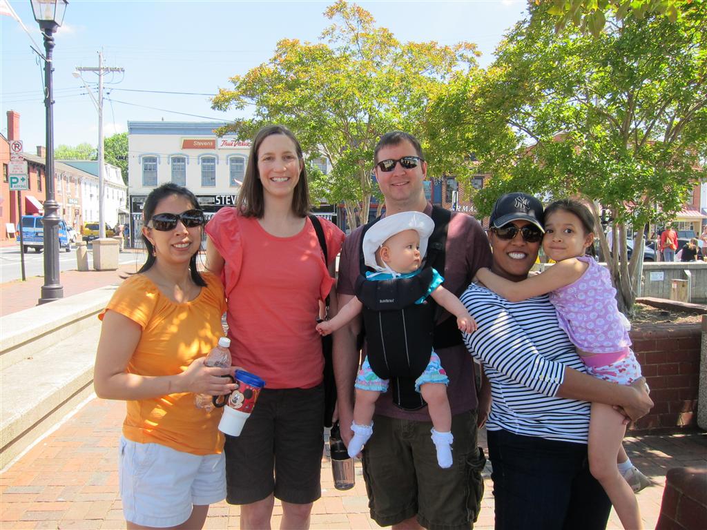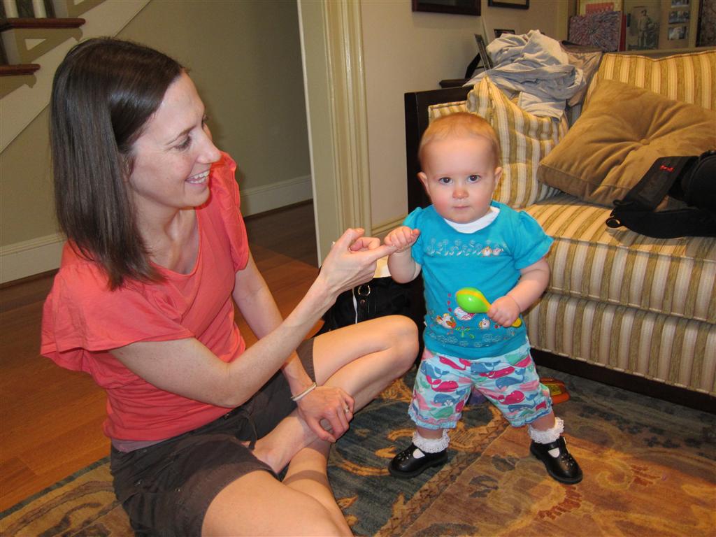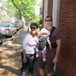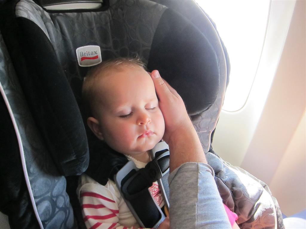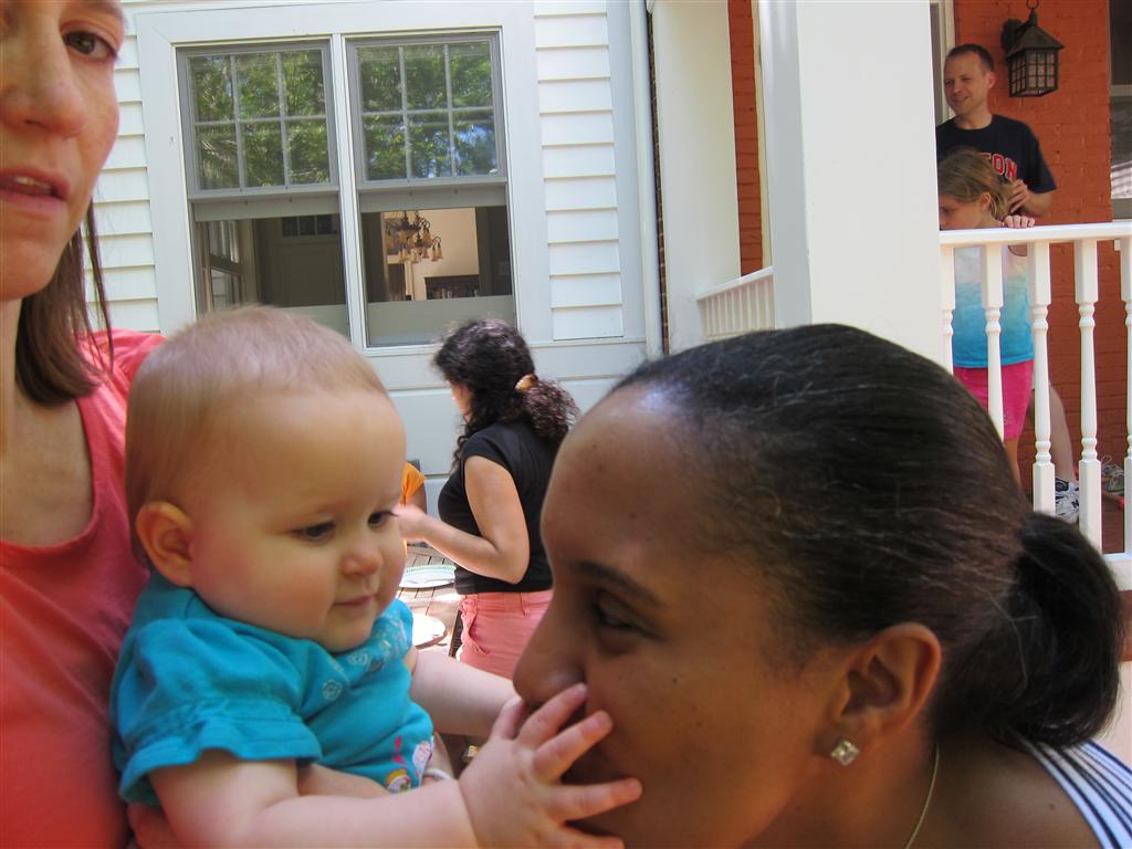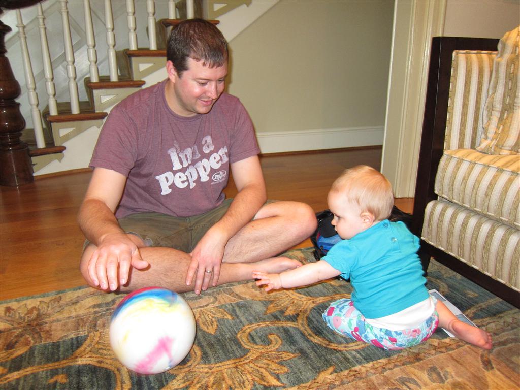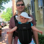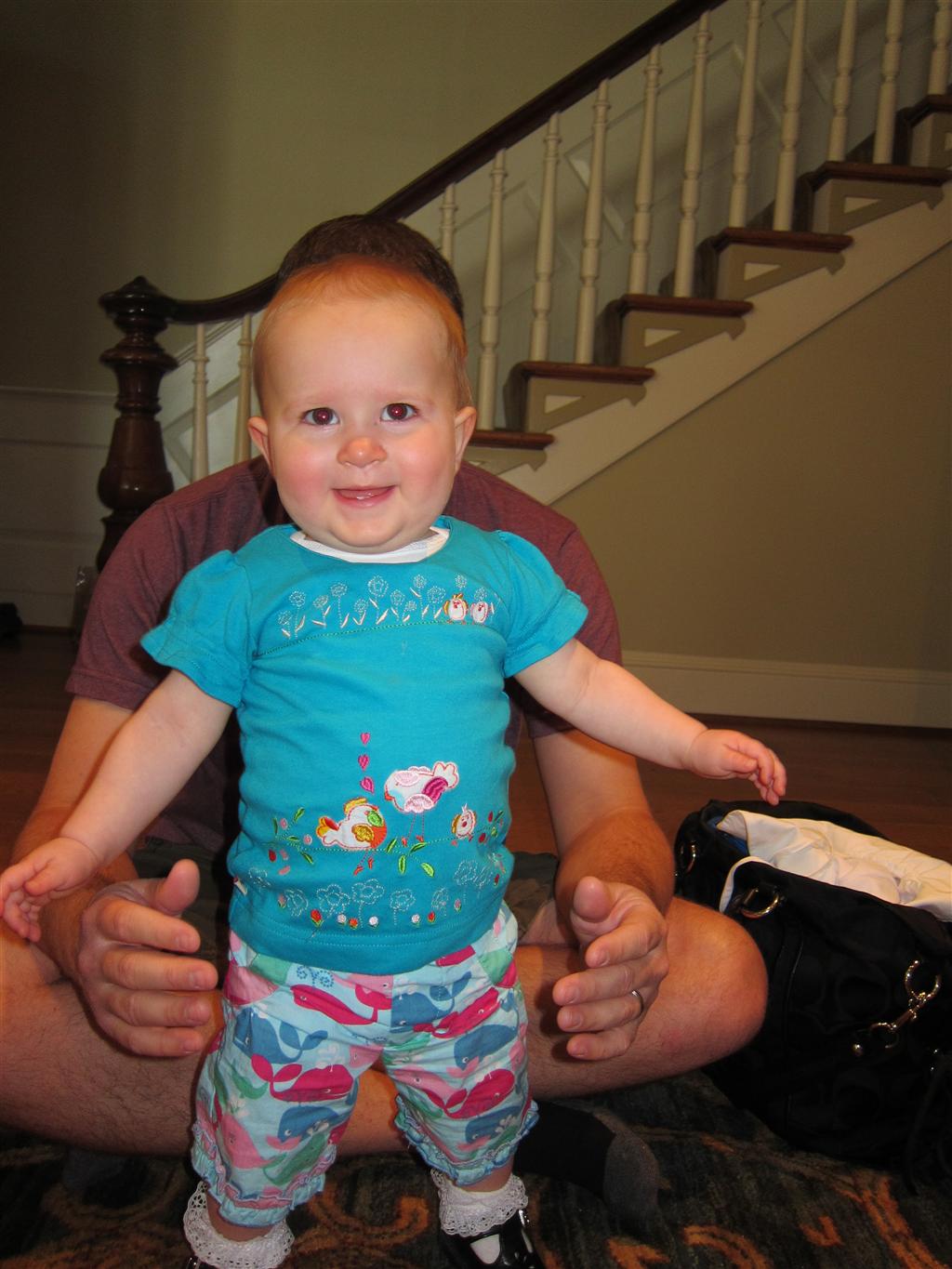 Eleanor took a trip to D.C. this weekend to visit some old friends (well, Amy’s old friends, anyway. Ellie isn’t really old enough to have old friends yet). She did great on the airplane both ways – and it was her first time travelling with her new (larger) car seat. It leaves less room for Dad in the seat next to her, but it keeps her snug and comfy. She even zoomed through the airport with the attachable wheels (unfortunately not pictured). Along with meeting her D.C. “cousins”, Eleanor had a number of firsts this week: