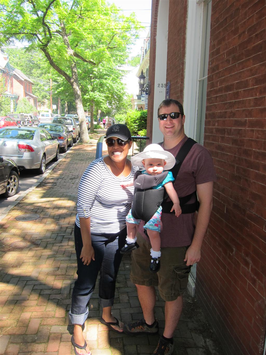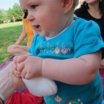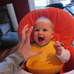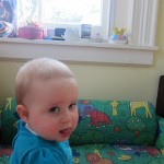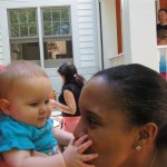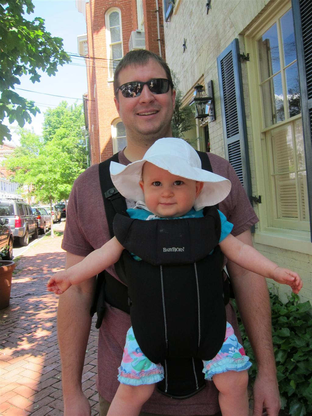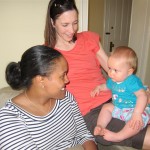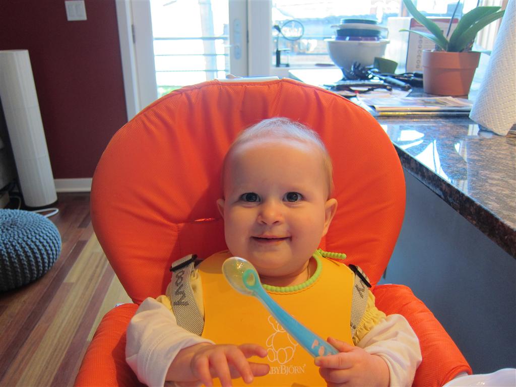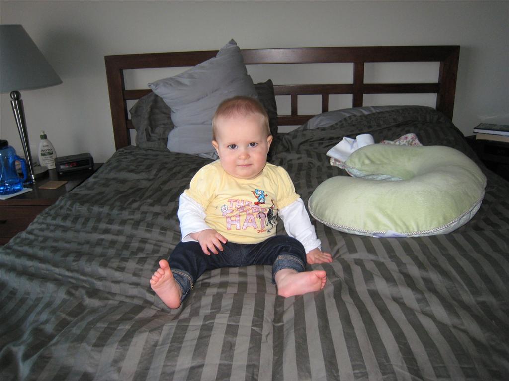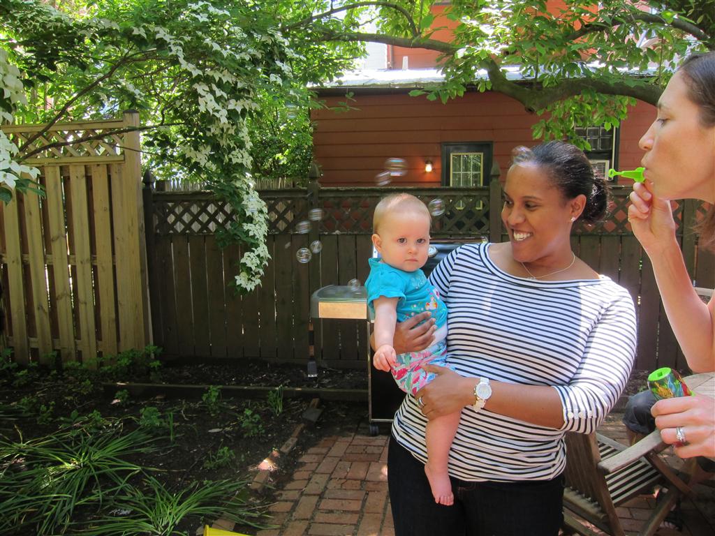 Eleanor took a trip to D.C. this weekend to visit some old friends (well, Amy’s old friends, anyway. Ellie isn’t really old enough to have old friends yet). She did great on the airplane both ways – and it was her first time travelling with her new (larger) car seat. It leaves less room for Dad in the seat next to her, but it keeps her snug and comfy. She even zoomed through the airport with the attachable wheels (unfortunately not pictured). Along with meeting her D.C. “cousins”, Eleanor had a number of firsts this week: