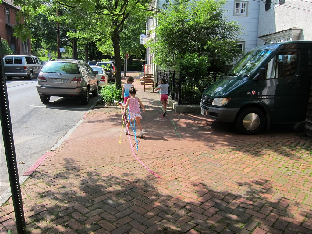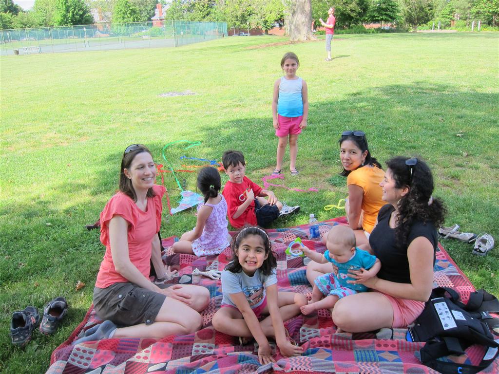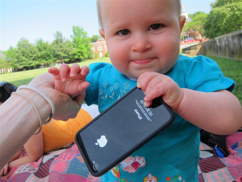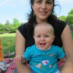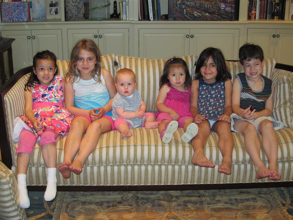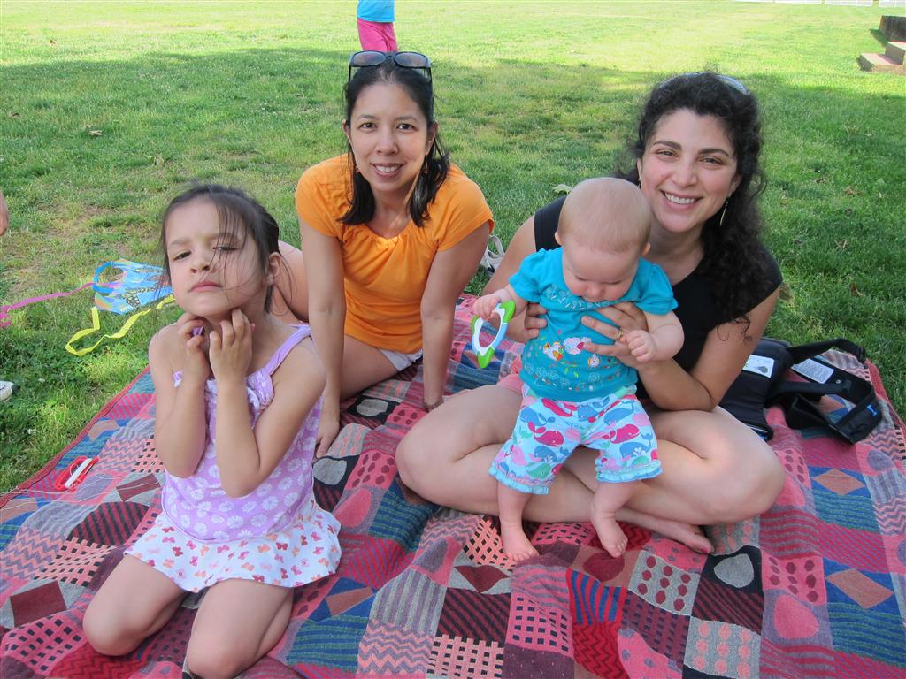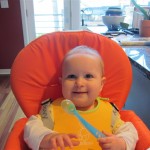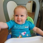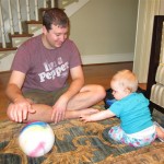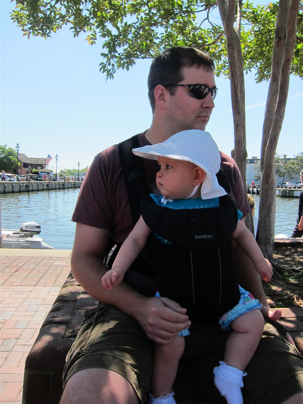 Eleanor took a trip to D.C. this weekend to visit some old friends (well, Amy’s old friends, anyway. Ellie isn’t really old enough to have old friends yet). She did great on the airplane both ways – and it was her first time travelling with her new (larger) car seat. It leaves less room for Dad in the seat next to her, but it keeps her snug and comfy. She even zoomed through the airport with the attachable wheels (unfortunately not pictured). Along with meeting her D.C. “cousins”, Eleanor had a number of firsts this week: