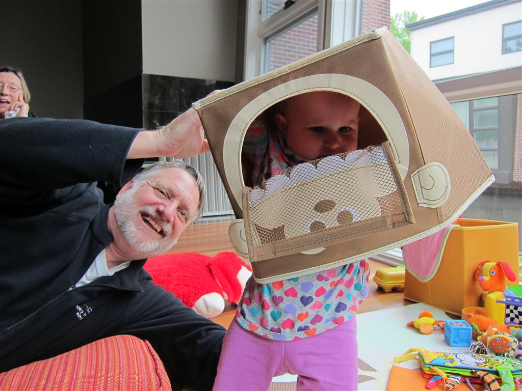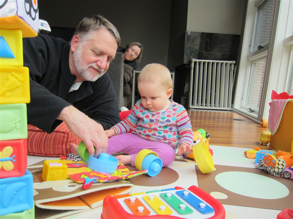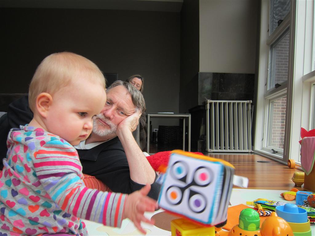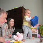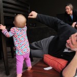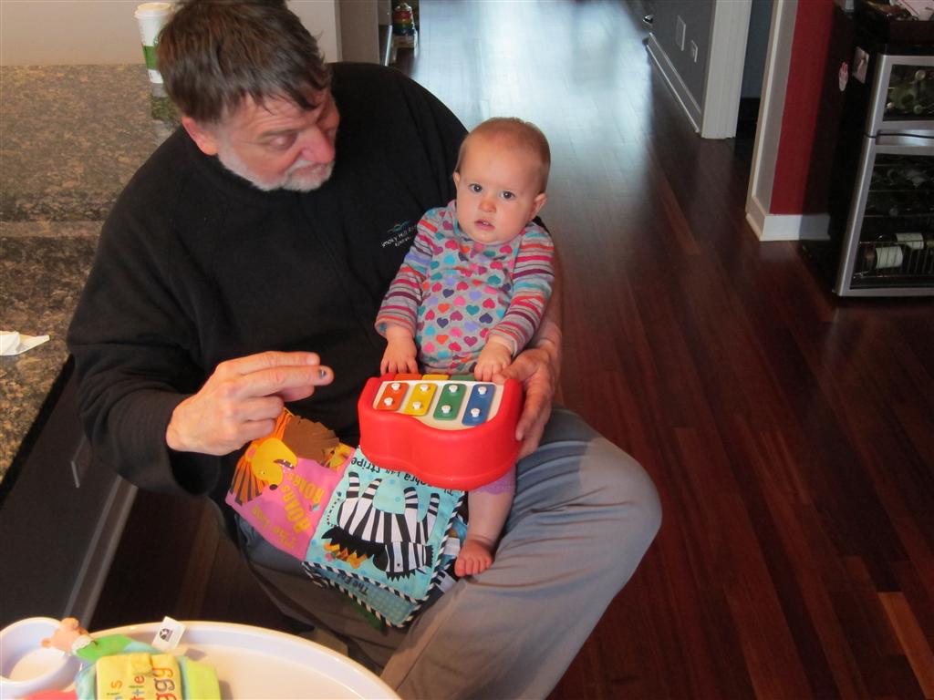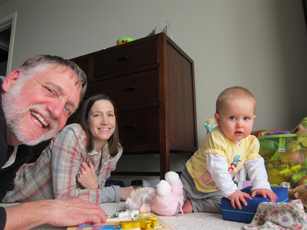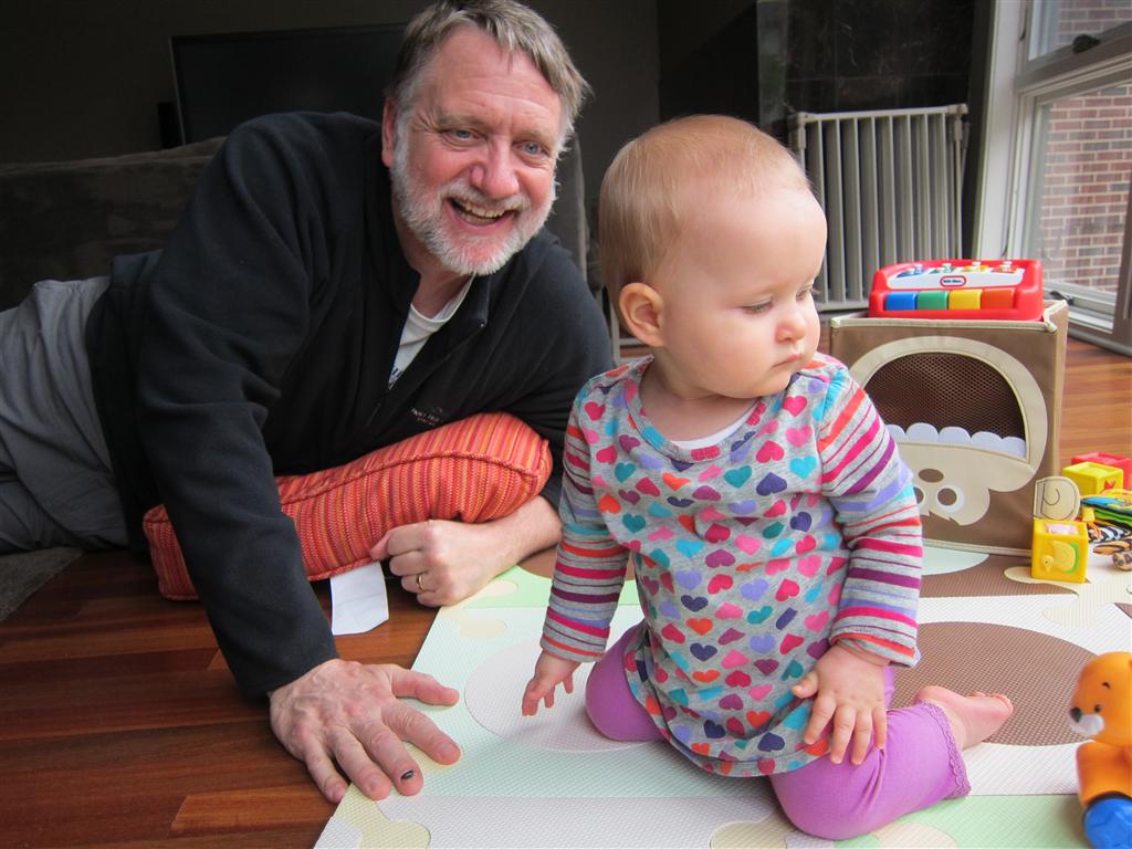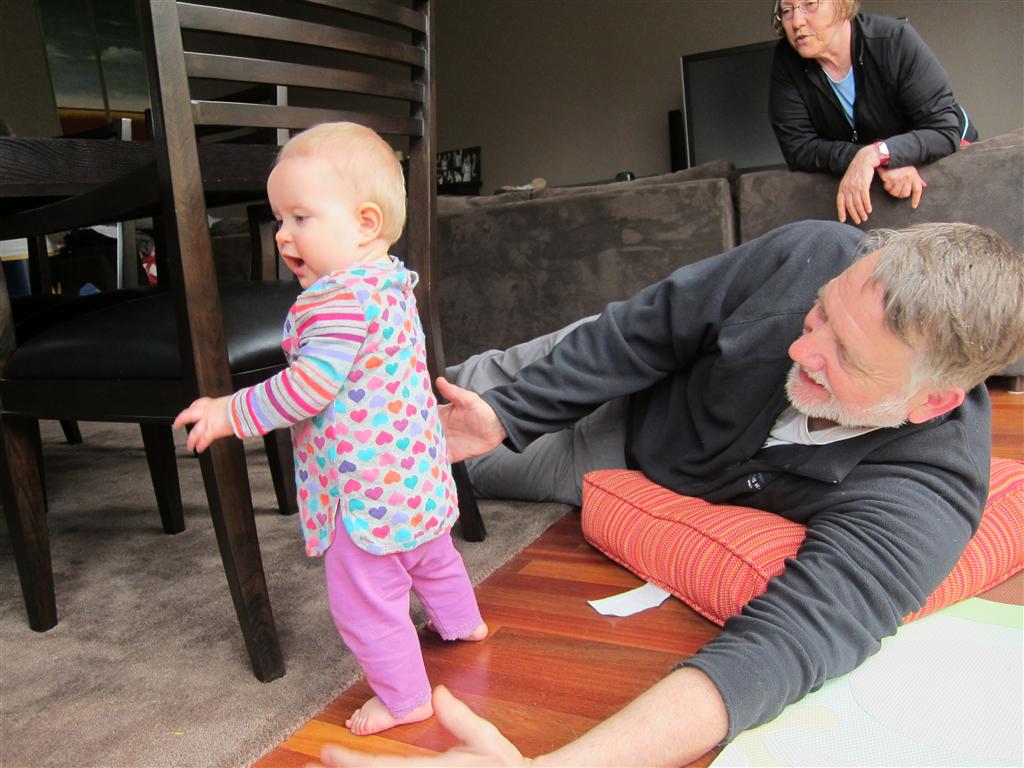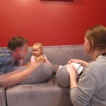 2. I love the one of baby crawling away while mommy and gramps are laying on the floor!
