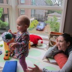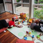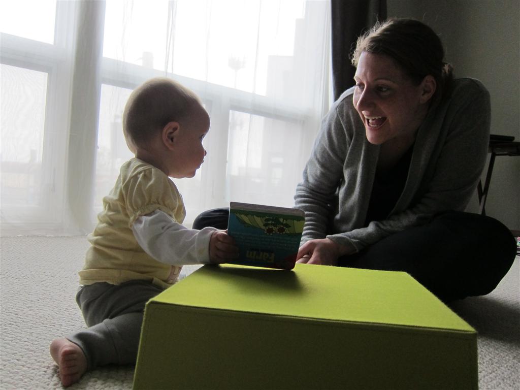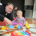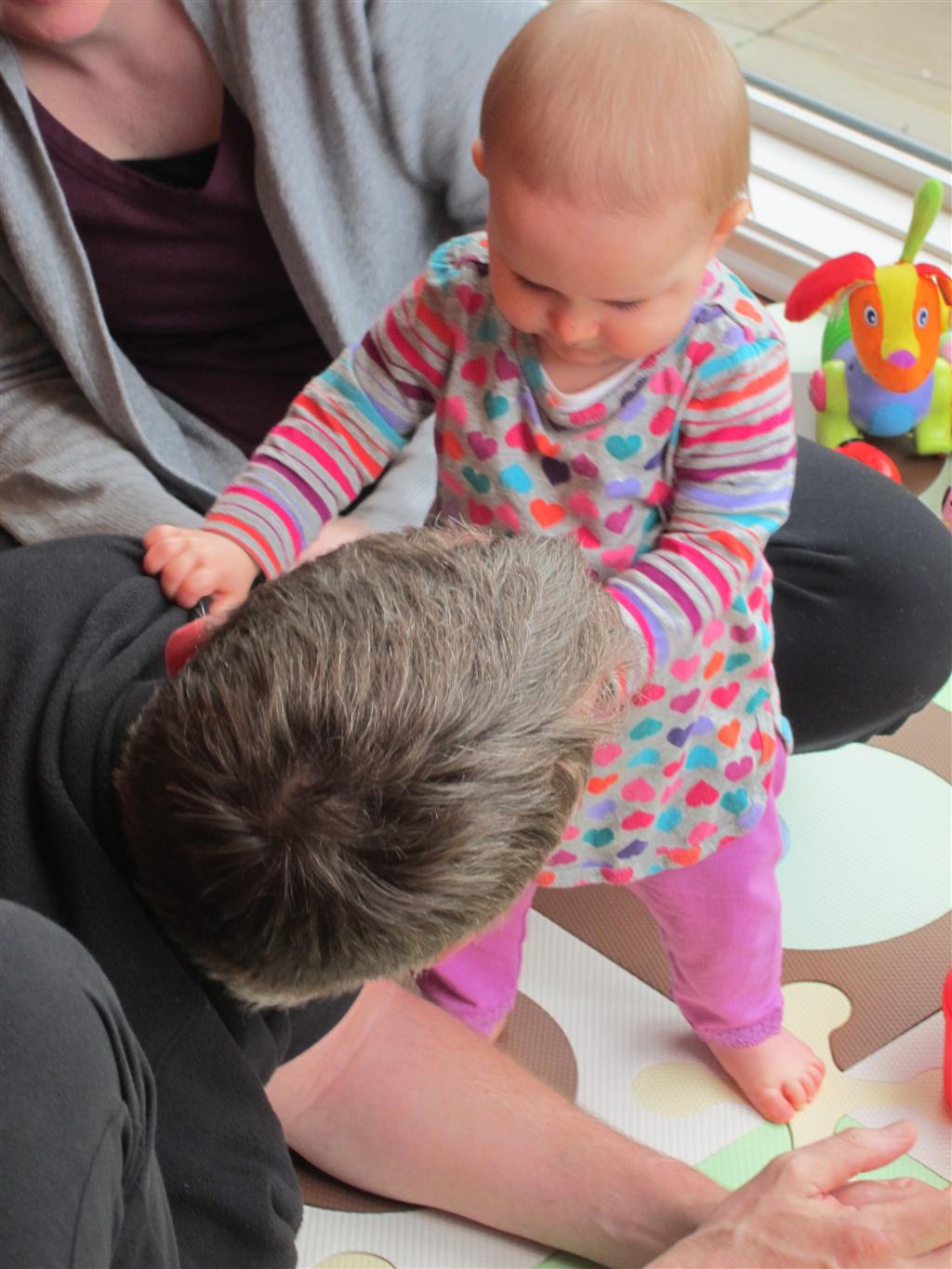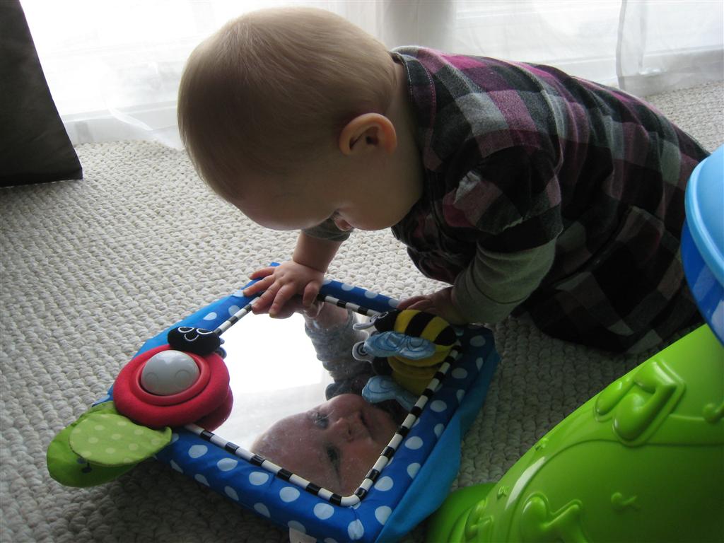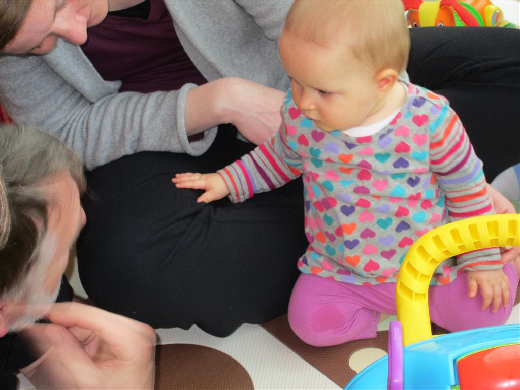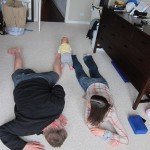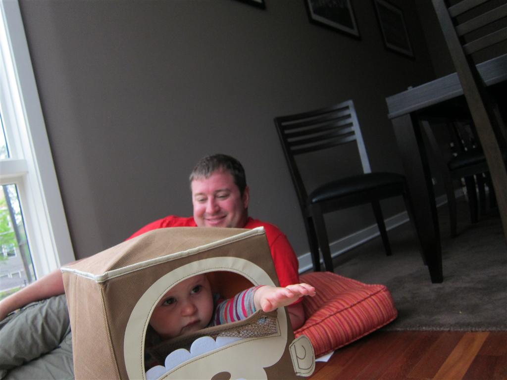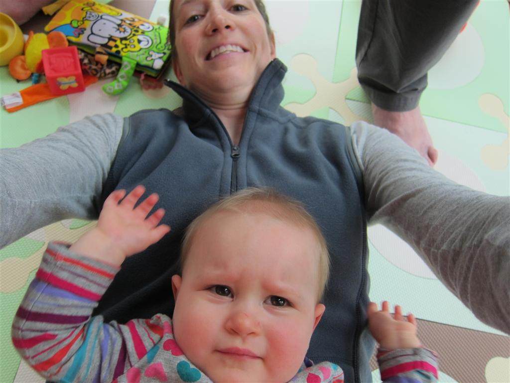 2. I love the one of baby crawling away while mommy and gramps are laying on the floor!