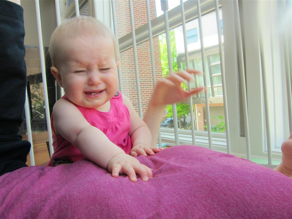 - wiggled out of belt on changing pad when momma wasn’t looking