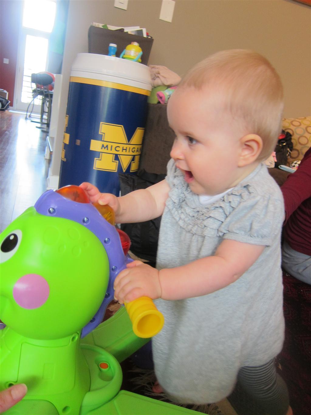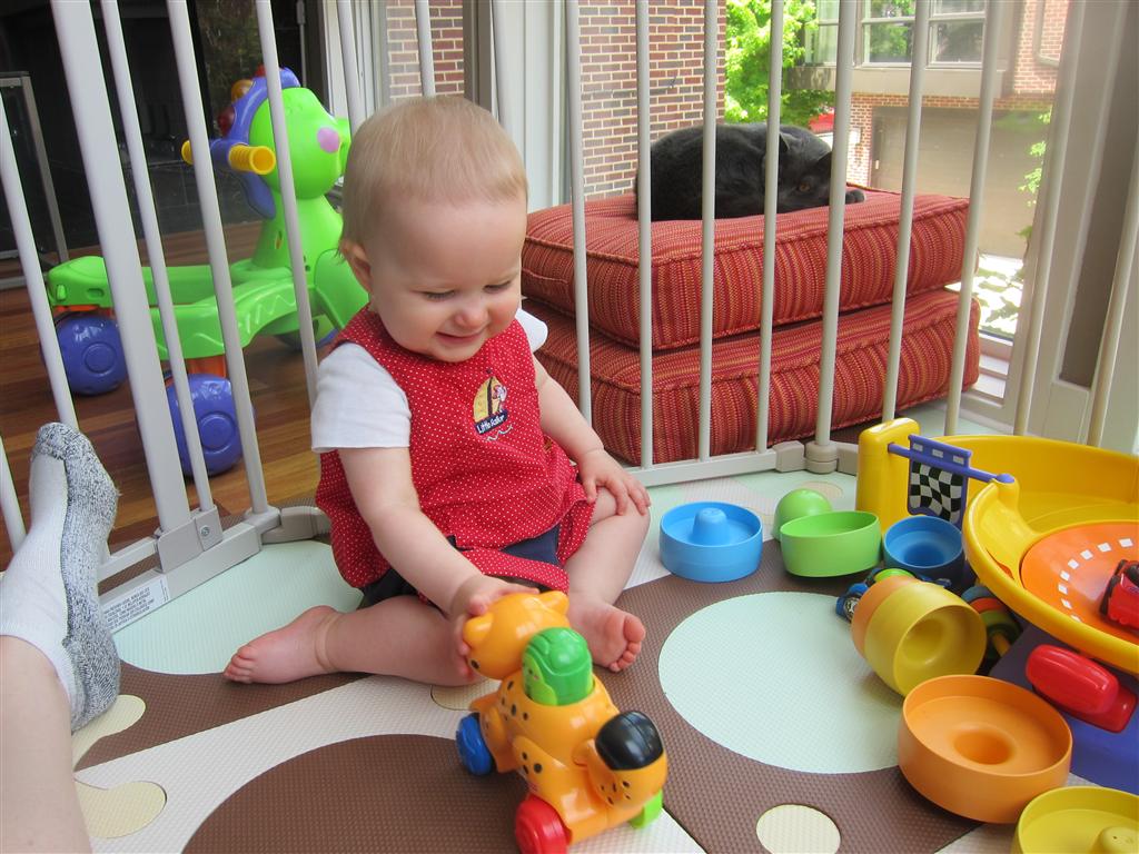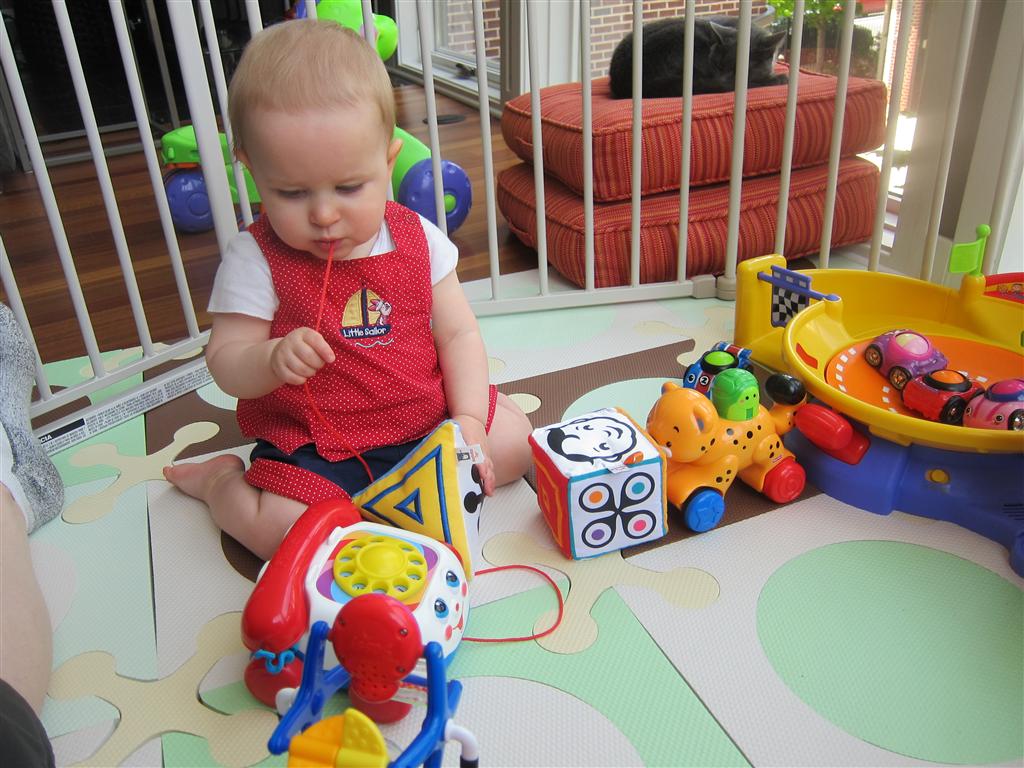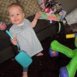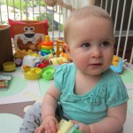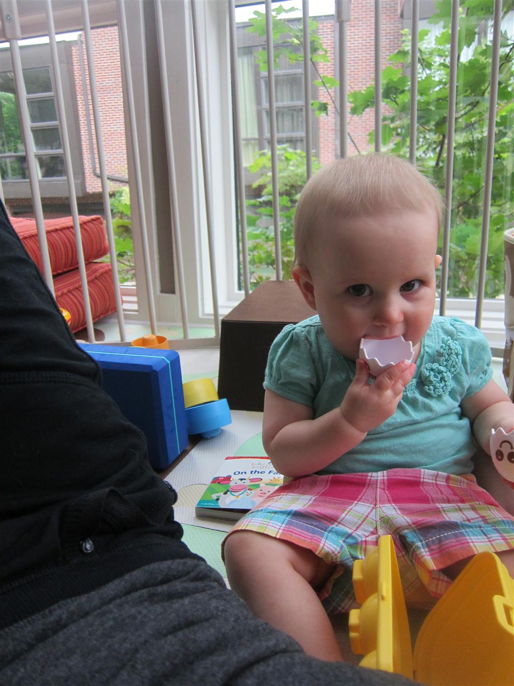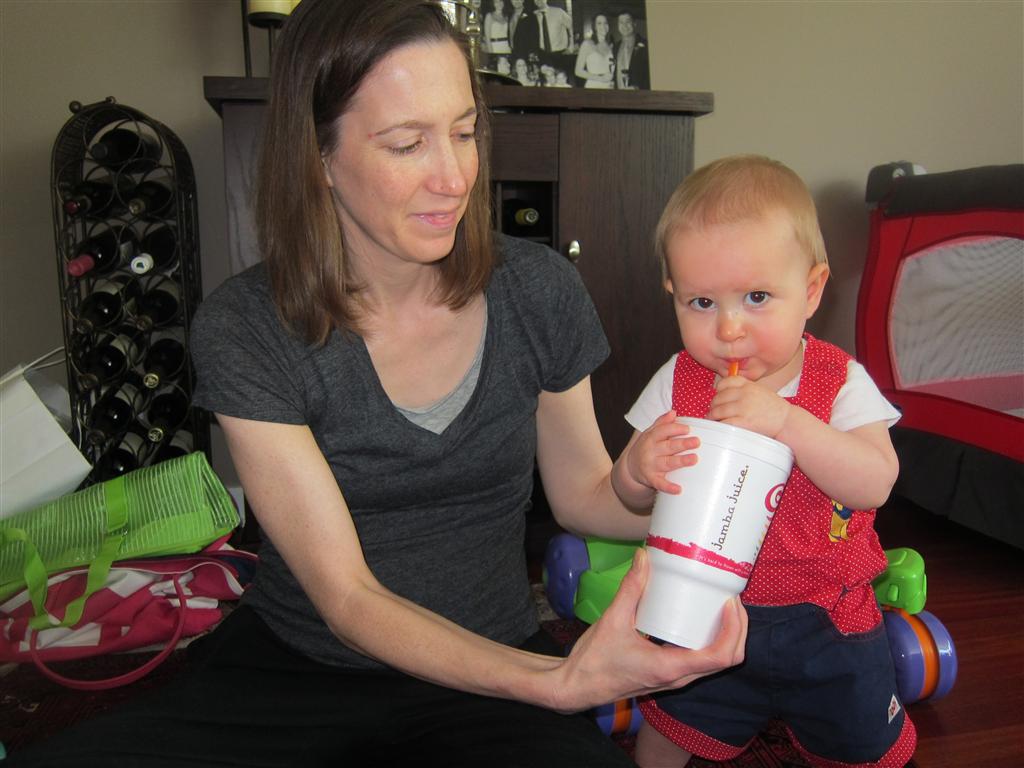 Eleanor celebrated her first Father’s day this weekend with lots of fun Dada time. Earlier in the week she had fun visiting the park and hanging out with Mimi Sheri, and had her first sip of Jamba Juice! She is making great strides in improving her walking – pretty soon I think she will be off and running! I also think we are working on tooth number 8, as she has been doing a whole lot of chewing and drooling lately. No sign yet of where that tooth might pop in, but my guess is the lower right.