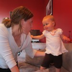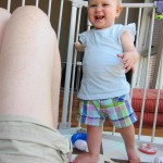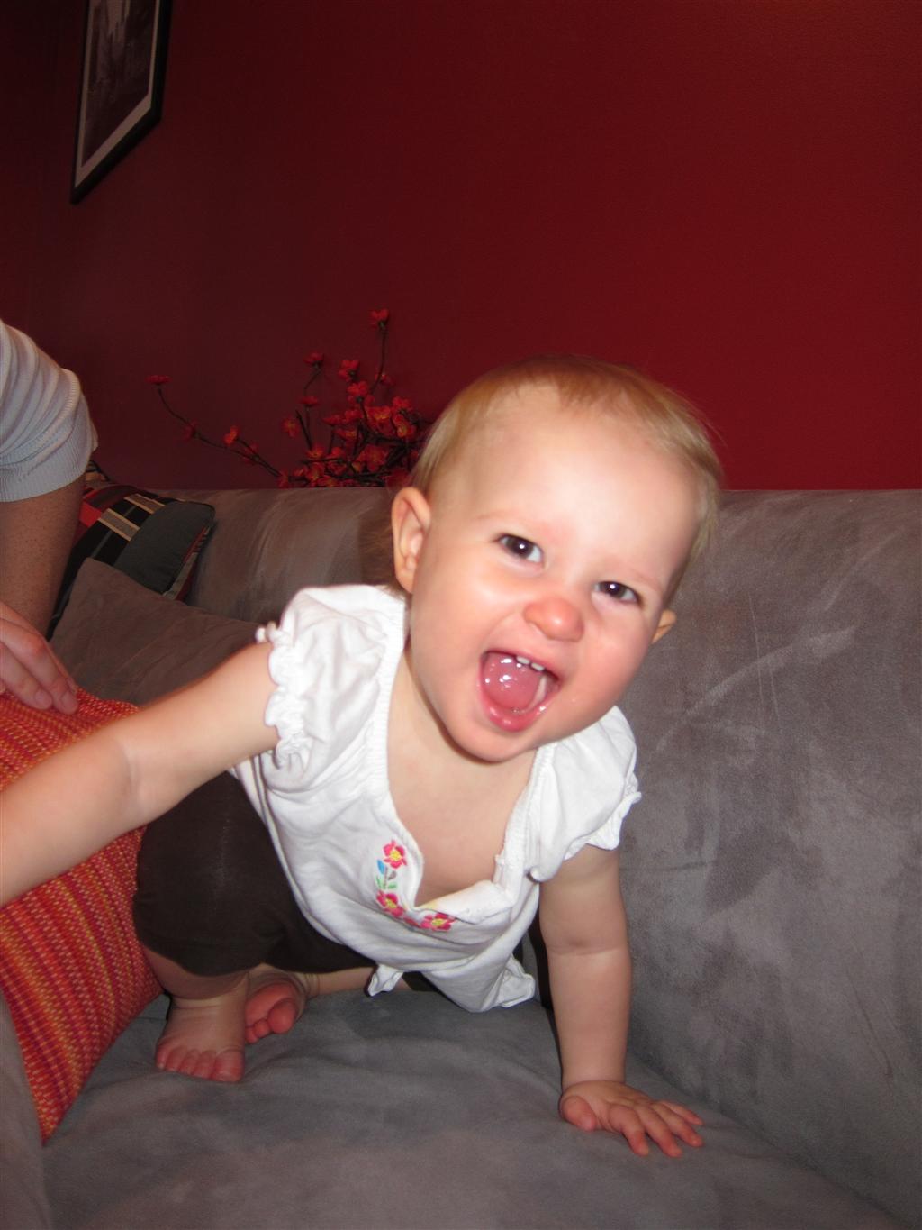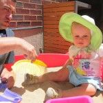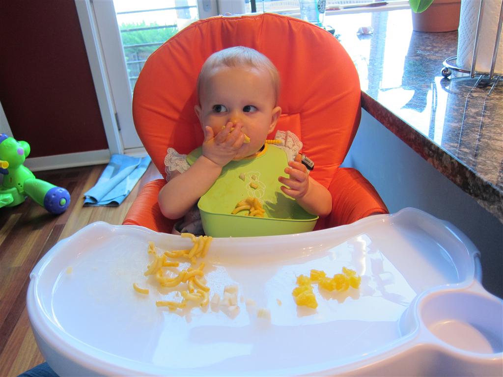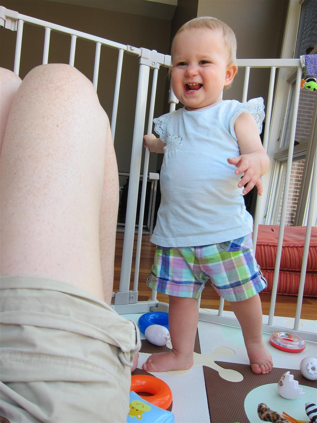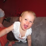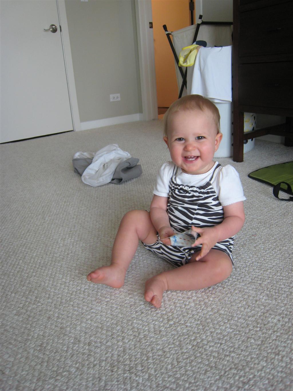 Eleanor had a slow, relaxing week this week, sandwiched between her flurry of visitors this past month, and her big birthday celebration next week. She ate a lot of mac and cheese, did a bunch of swinging, played in the sand box, and watched bubbles. I tried all weekend to get a video of her doing her bleeble-bleeble with her fingers and lips, but ended up just videoing a bunch of adults doing it :) She has perfected a new noise-object association, this time with a stuffed monkey. She does a fairly good impression of the “Ahh-ahh” part of Amy’s “Oohh-oohh ahhh-ahhh” monkey noise when she sees it. A few firsts this week: