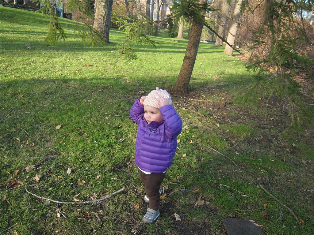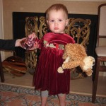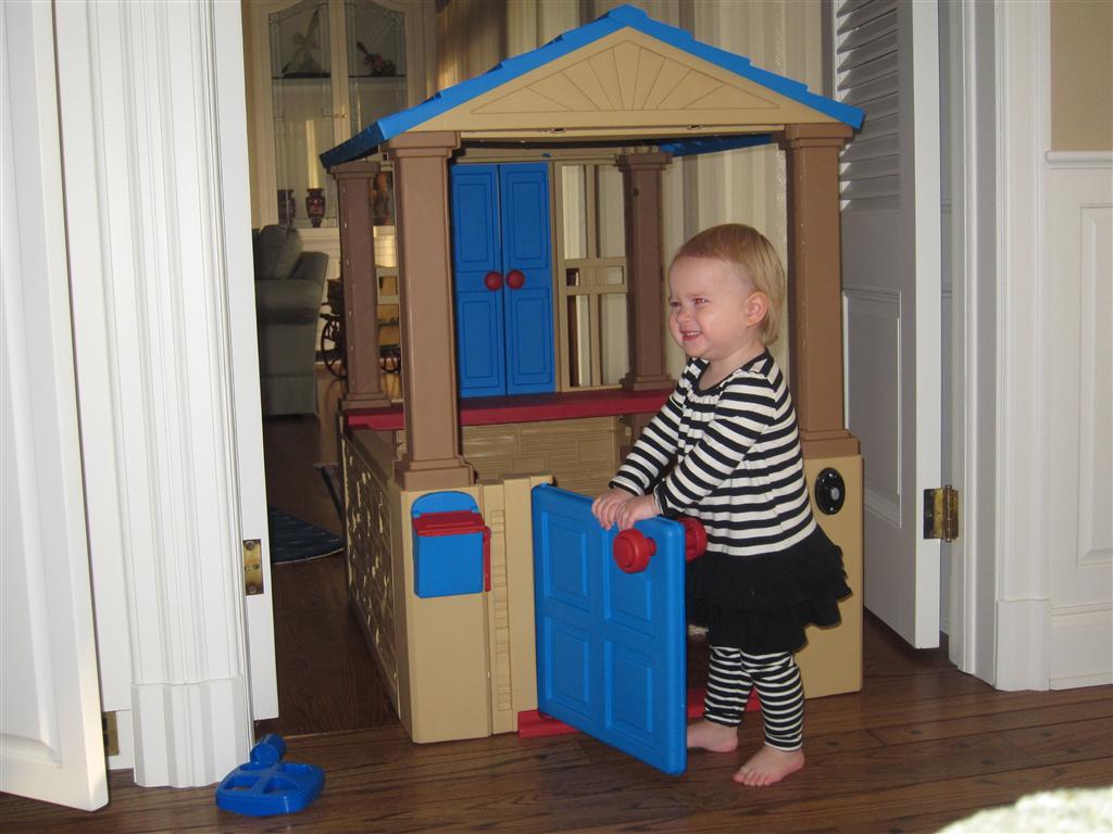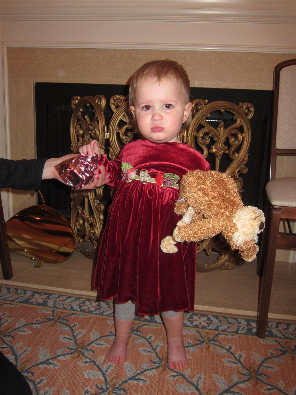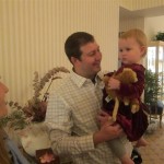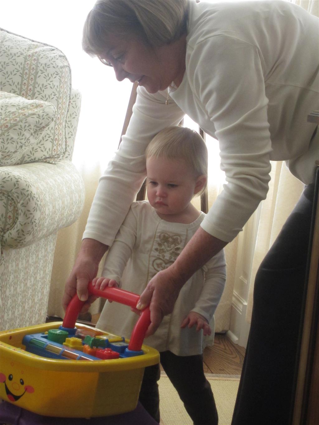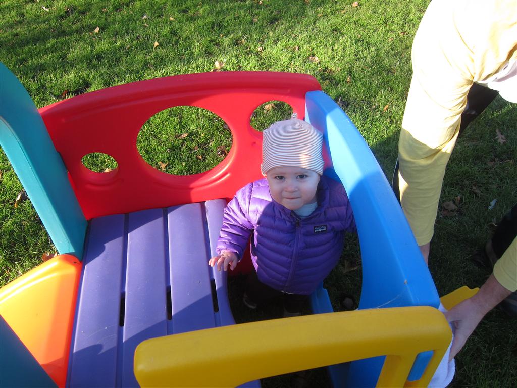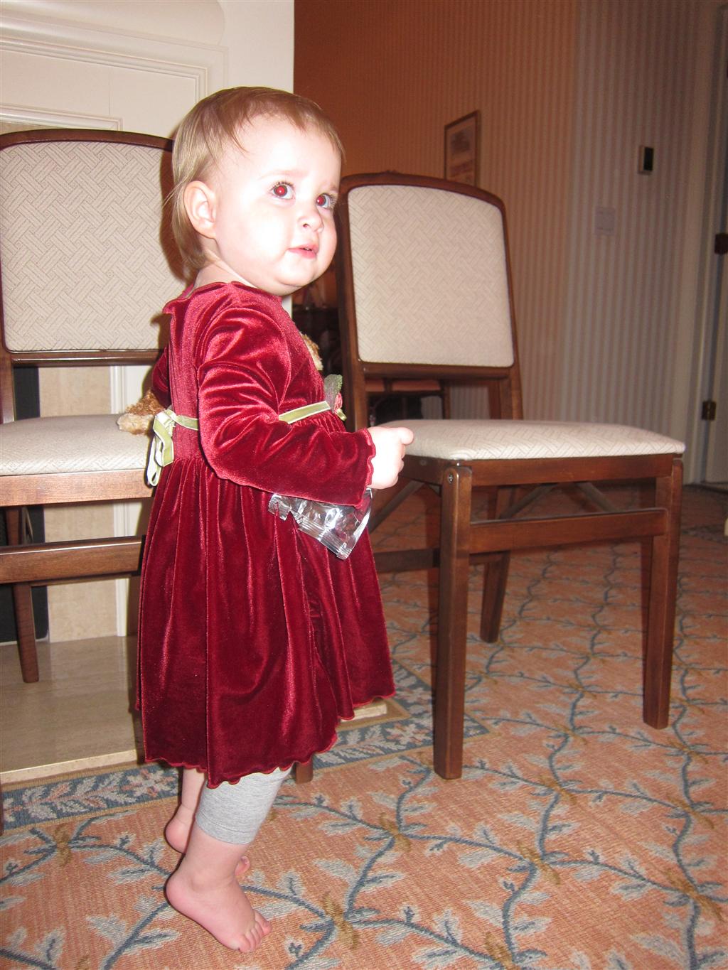 Eleanor celebrated Thanksgiving at Great Grandma’s house, and had fun hanging out with all of her Cousins, Aunts, Uncles, and Grandparents. She was able to participate in Thanksgiving dinner for the first time, but didn’t love any of the items that she tried – not even the mac and cheese. I think she was just confused at the whole thing. She did, however, like the red velvet cake that she ate off of Mama’s plate when she wasn’t looking. She sang her “Duet” just before grace at Thanksgiving dinner, and everyone was very impressed. The Thanksgiving fun was bookended with Papa and Mimi before, and Grandma and Grandpa after. Grandma and Grandpa’s house had lots of new fun things to do, with her favorite being turning lights on and off, followed by playing in the play house, and then playing trains.