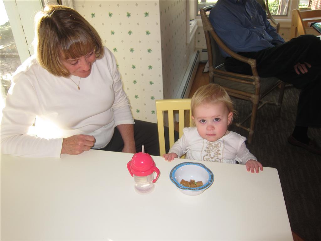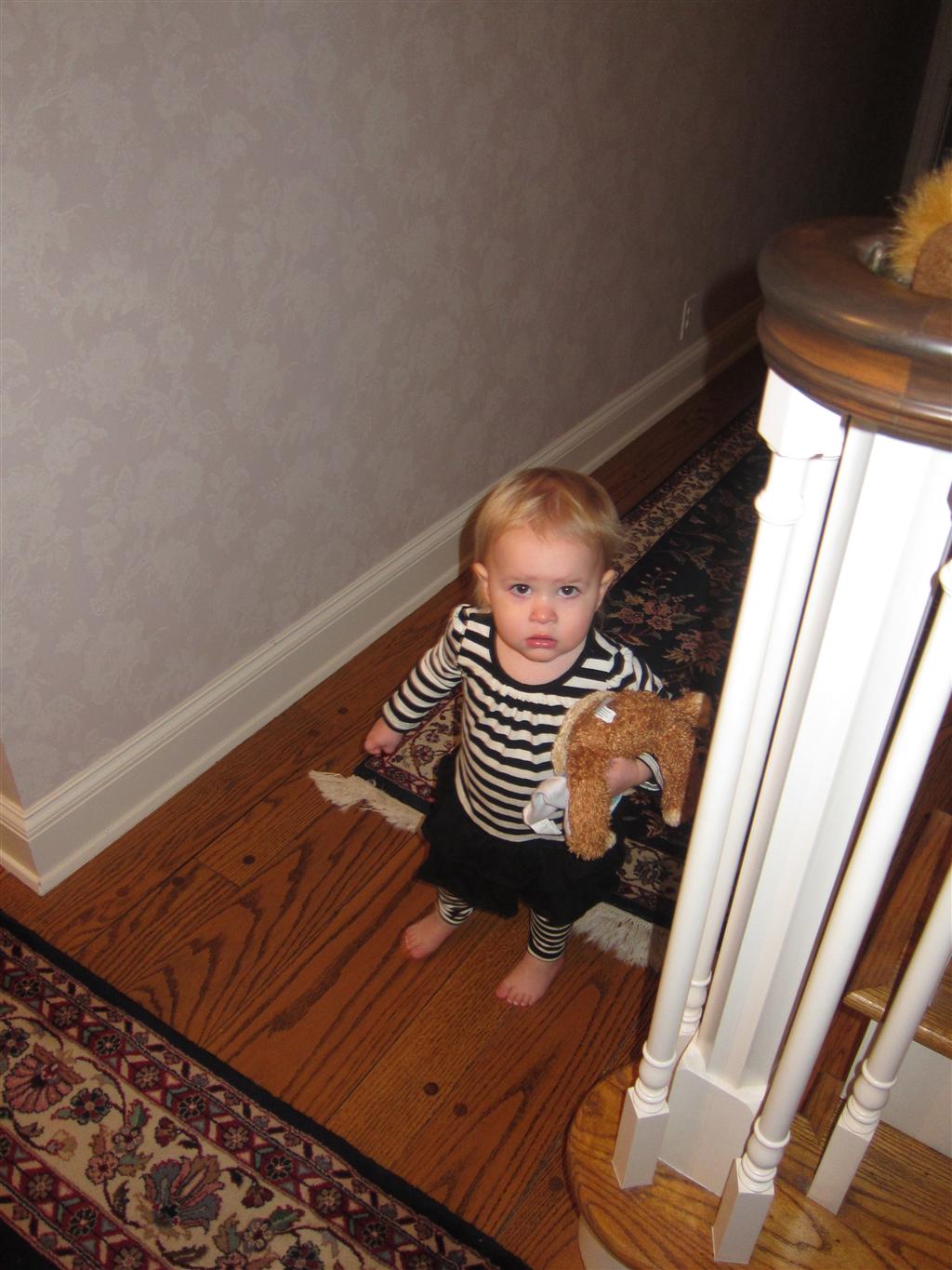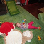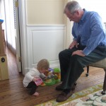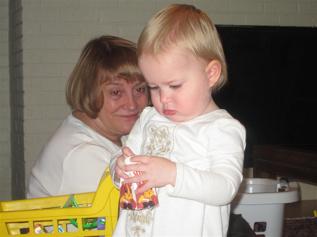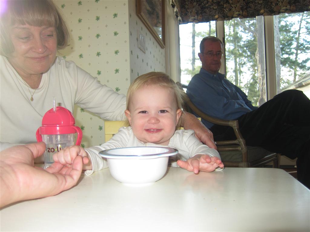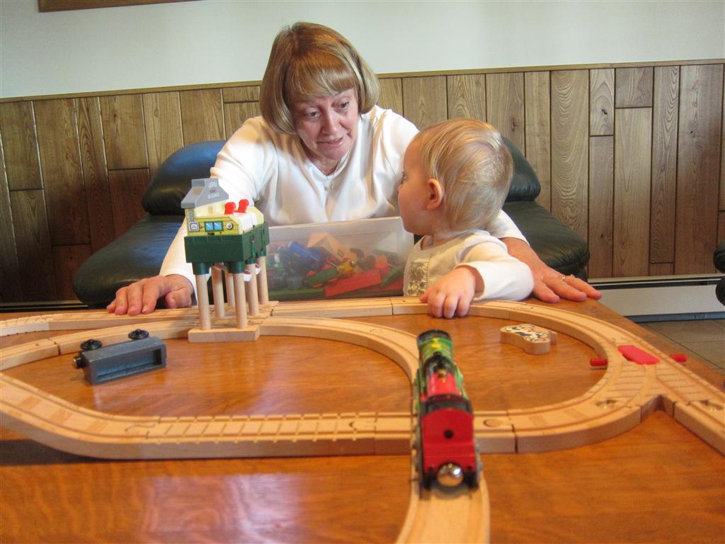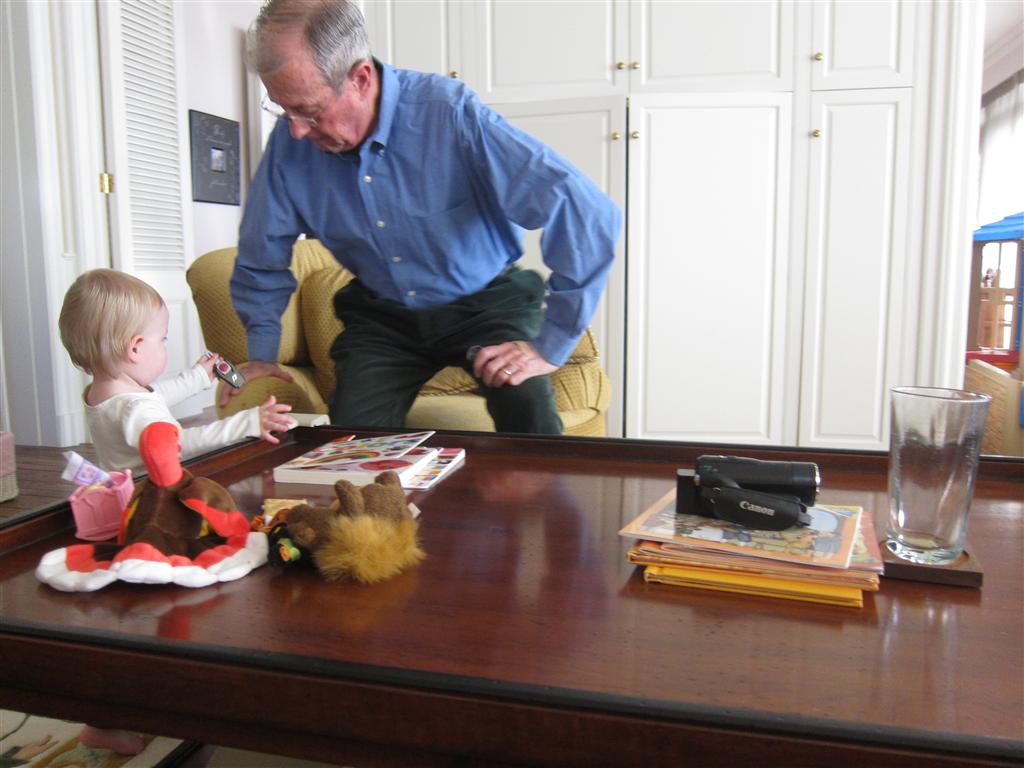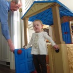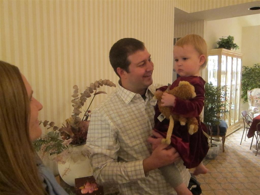 Eleanor celebrated Thanksgiving at Great Grandma’s house, and had fun hanging out with all of her Cousins, Aunts, Uncles, and Grandparents. She was able to participate in Thanksgiving dinner for the first time, but didn’t love any of the items that she tried – not even the mac and cheese. I think she was just confused at the whole thing. She did, however, like the red velvet cake that she ate off of Mama’s plate when she wasn’t looking. She sang her “Duet” just before grace at Thanksgiving dinner, and everyone was very impressed. The Thanksgiving fun was bookended with Papa and Mimi before, and Grandma and Grandpa after. Grandma and Grandpa’s house had lots of new fun things to do, with her favorite being turning lights on and off, followed by playing in the play house, and then playing trains.