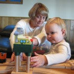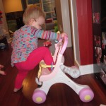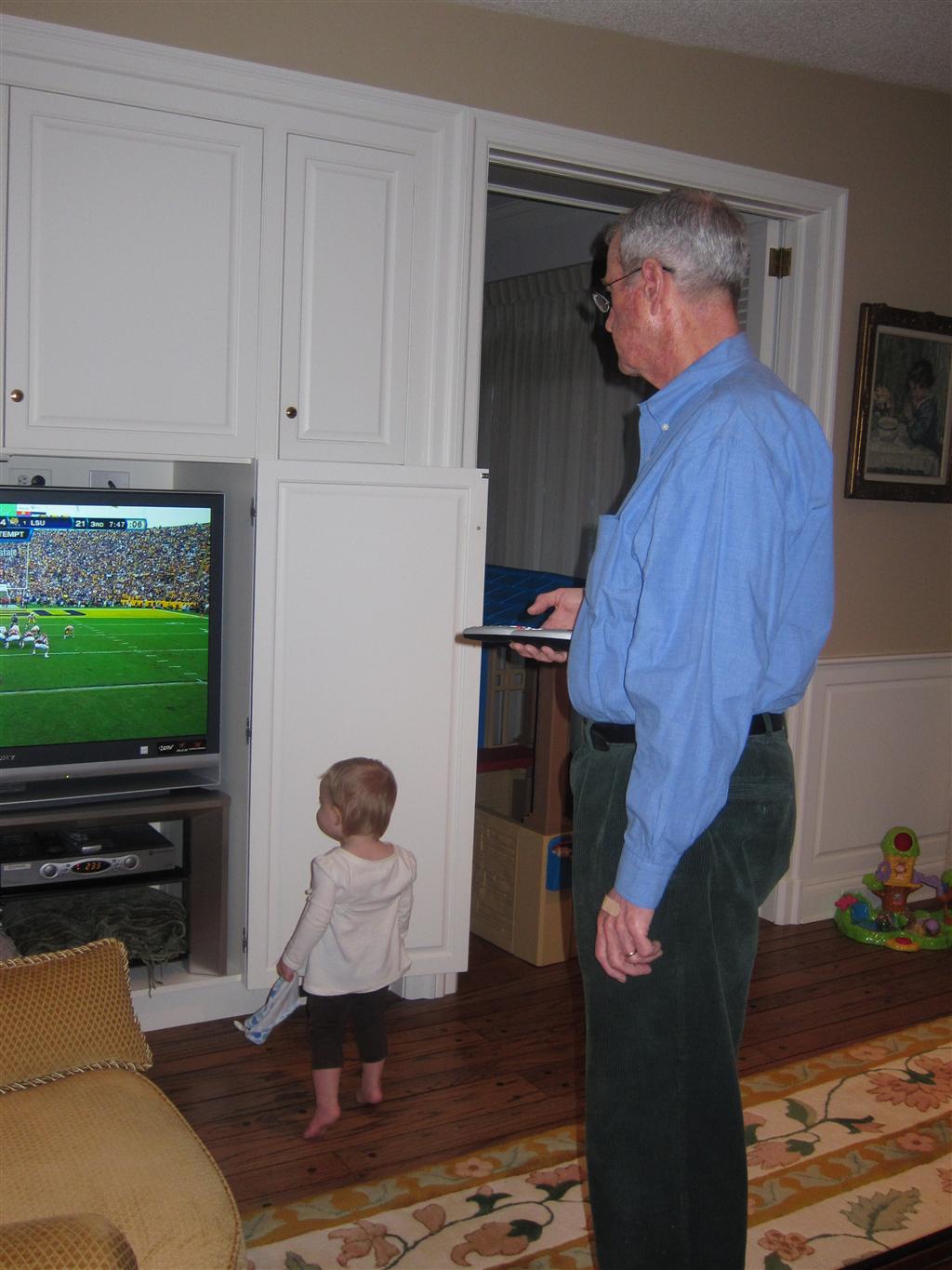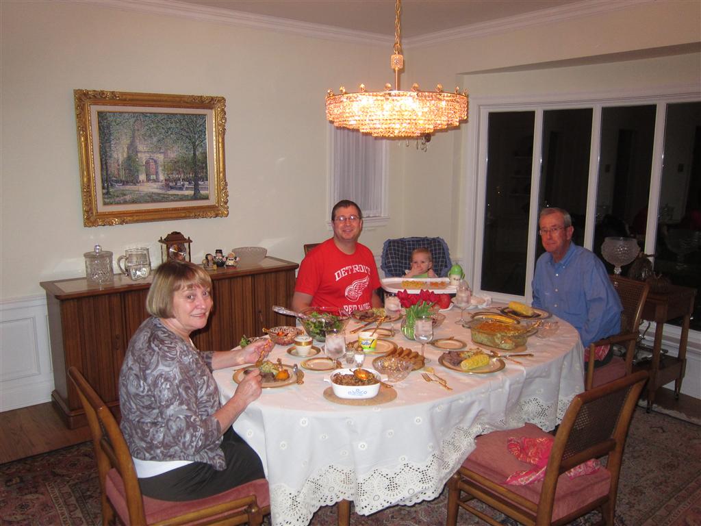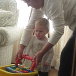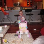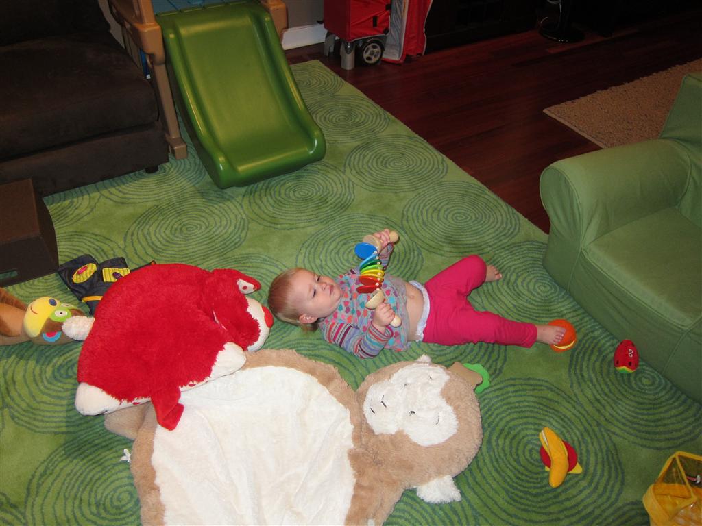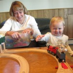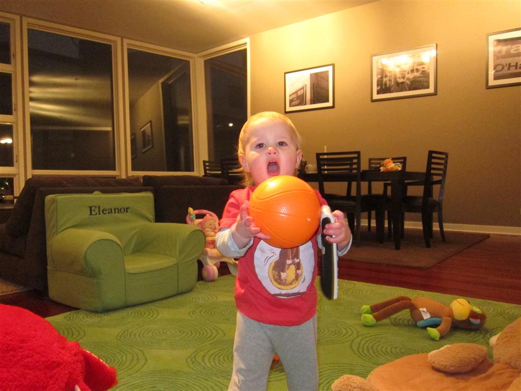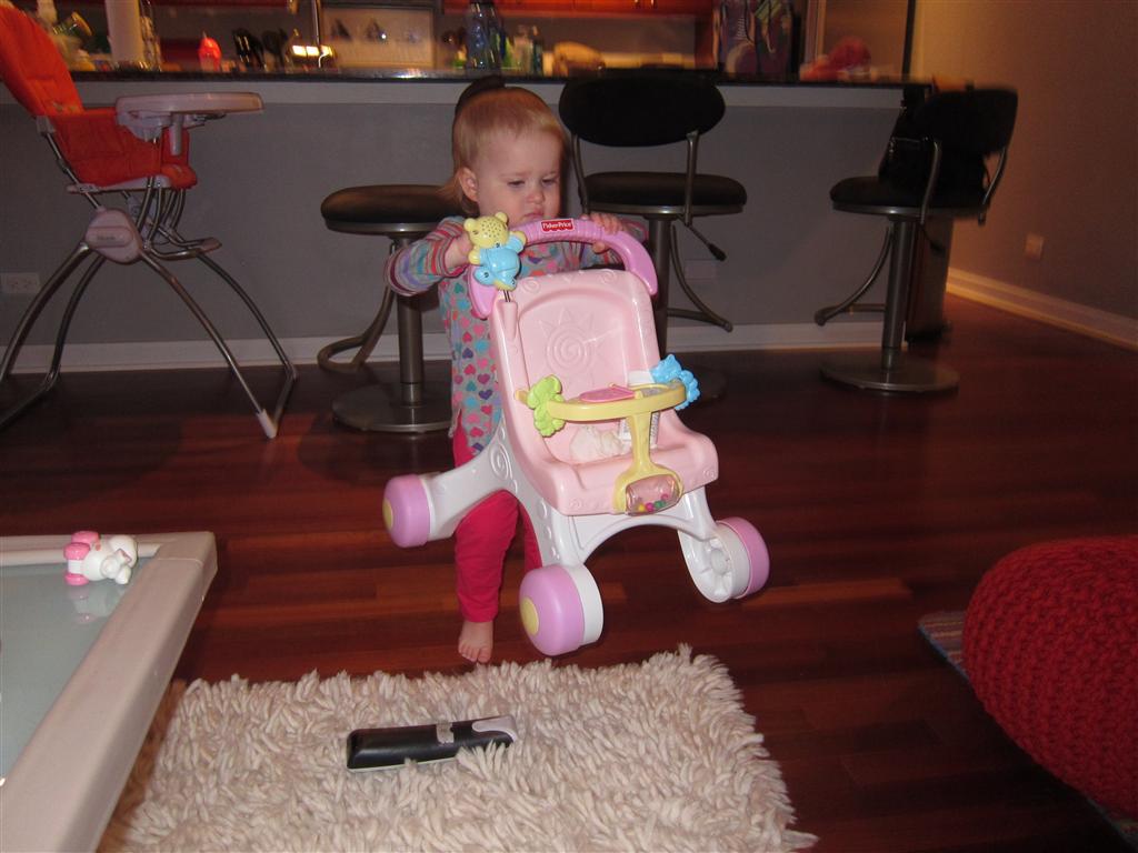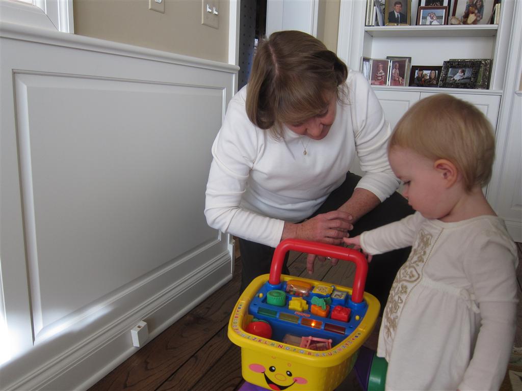 Eleanor celebrated Thanksgiving at Great Grandma’s house, and had fun hanging out with all of her Cousins, Aunts, Uncles, and Grandparents. She was able to participate in Thanksgiving dinner for the first time, but didn’t love any of the items that she tried – not even the mac and cheese. I think she was just confused at the whole thing. She did, however, like the red velvet cake that she ate off of Mama’s plate when she wasn’t looking. She sang her “Duet” just before grace at Thanksgiving dinner, and everyone was very impressed. The Thanksgiving fun was bookended with Papa and Mimi before, and Grandma and Grandpa after. Grandma and Grandpa’s house had lots of new fun things to do, with her favorite being turning lights on and off, followed by playing in the play house, and then playing trains.