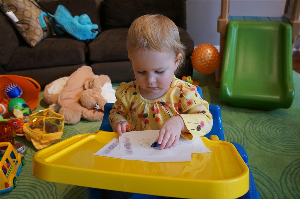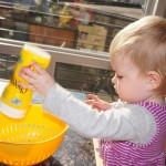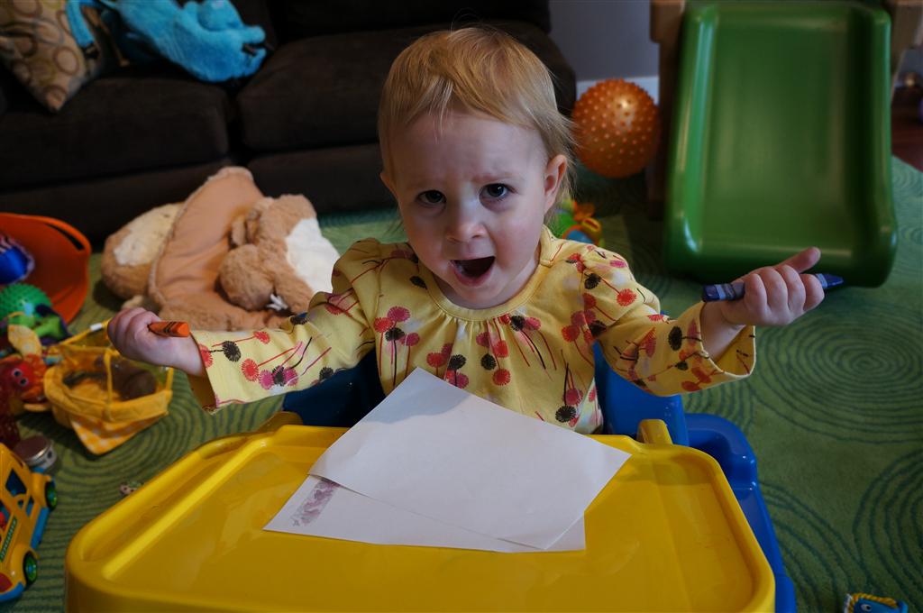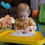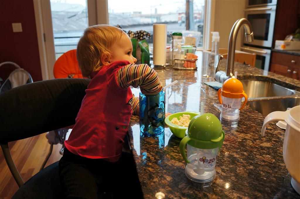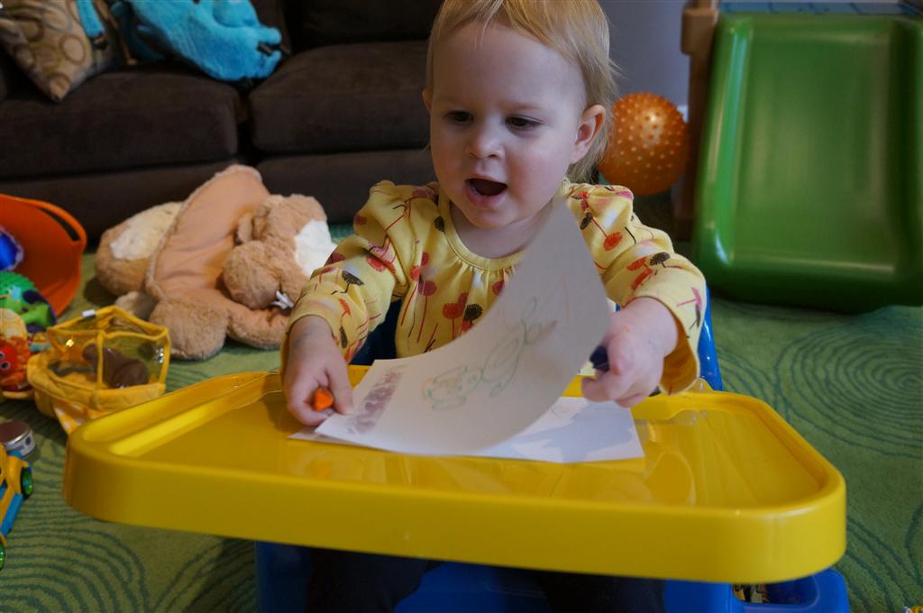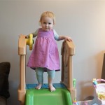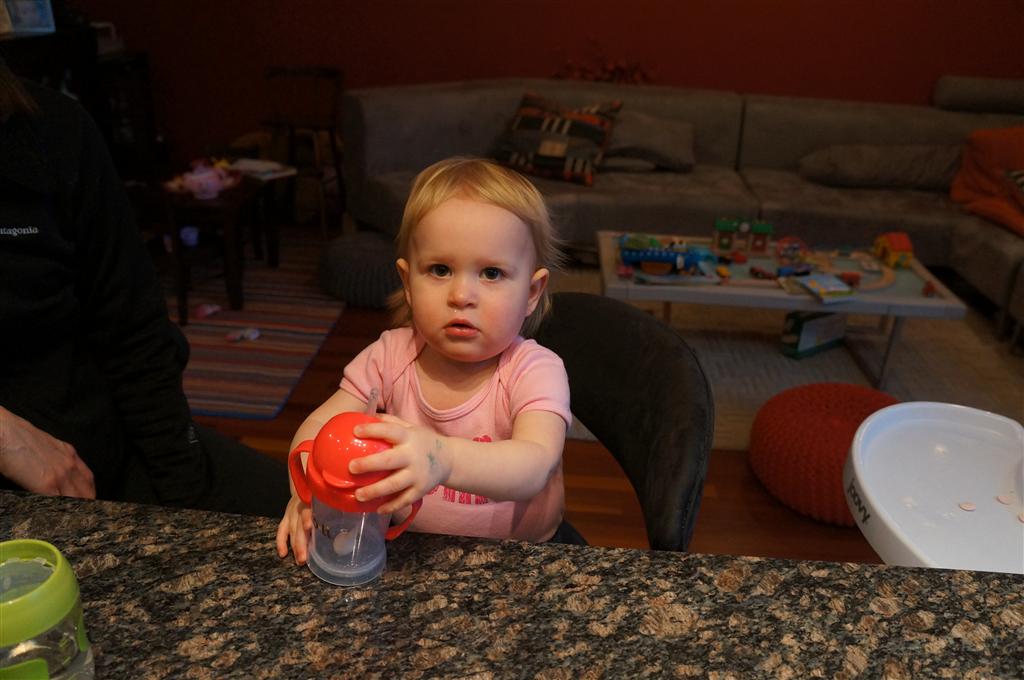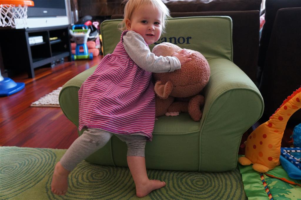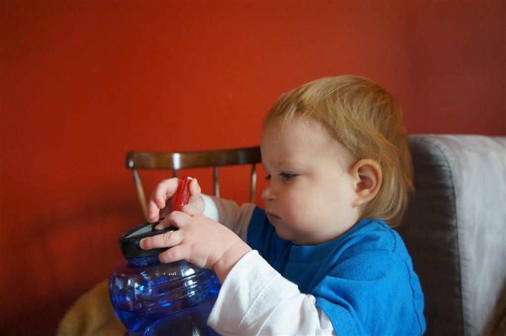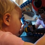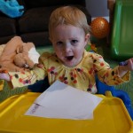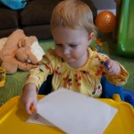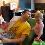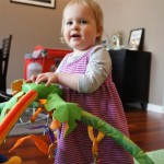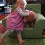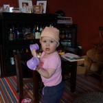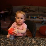 Eleanor added the word “More” to her growing repertoire this week, and has also been making lots of progress with her hands – working with crayons and spoons. It won’t be long and she will be coloring her own pictures. She also has been fascinated by putting together and taking apart her water bottle – especially when there is water in the bottle! We need to find a good place to set up her water table indoors, because she is really fascinated by pouring it all over!