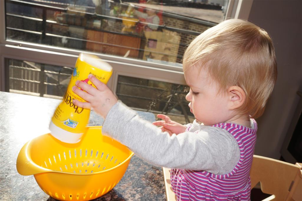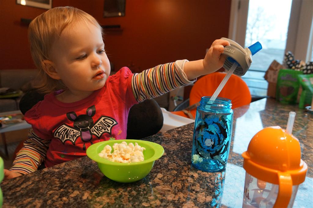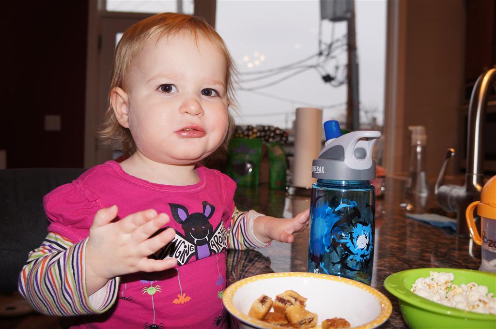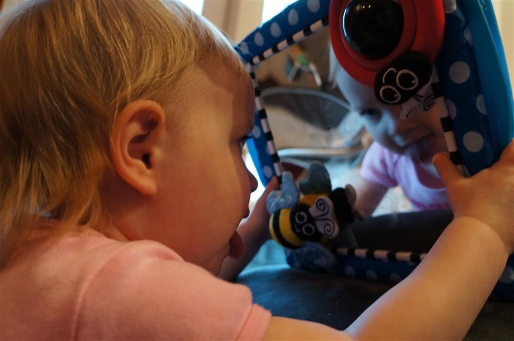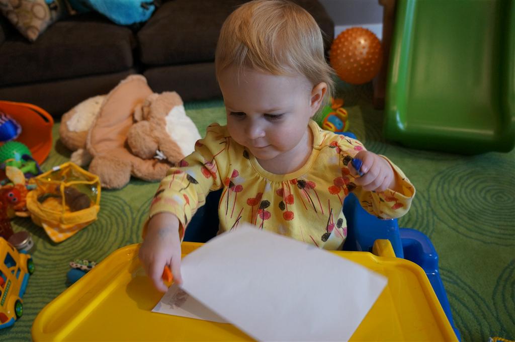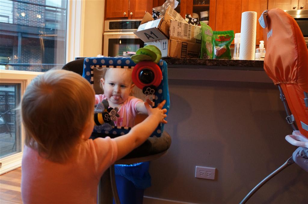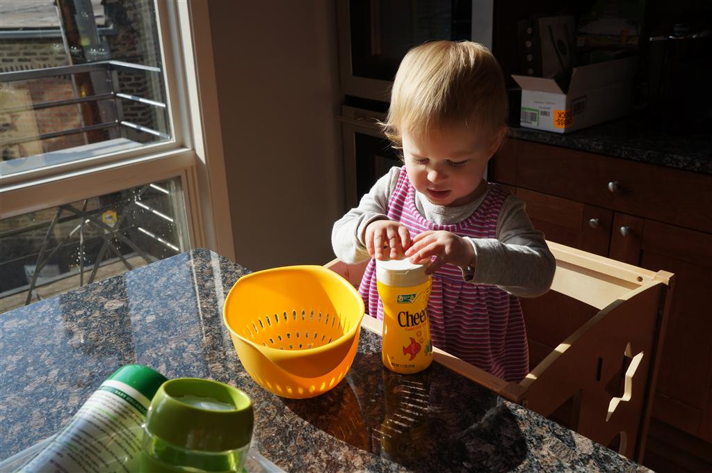 Eleanor added the word “More” to her growing repertoire this week, and has also been making lots of progress with her hands – working with crayons and spoons. It won’t be long and she will be coloring her own pictures. She also has been fascinated by putting together and taking apart her water bottle – especially when there is water in the bottle! We need to find a good place to set up her water table indoors, because she is really fascinated by pouring it all over!