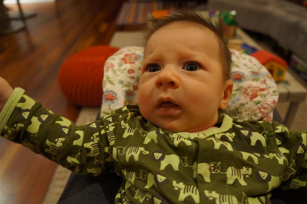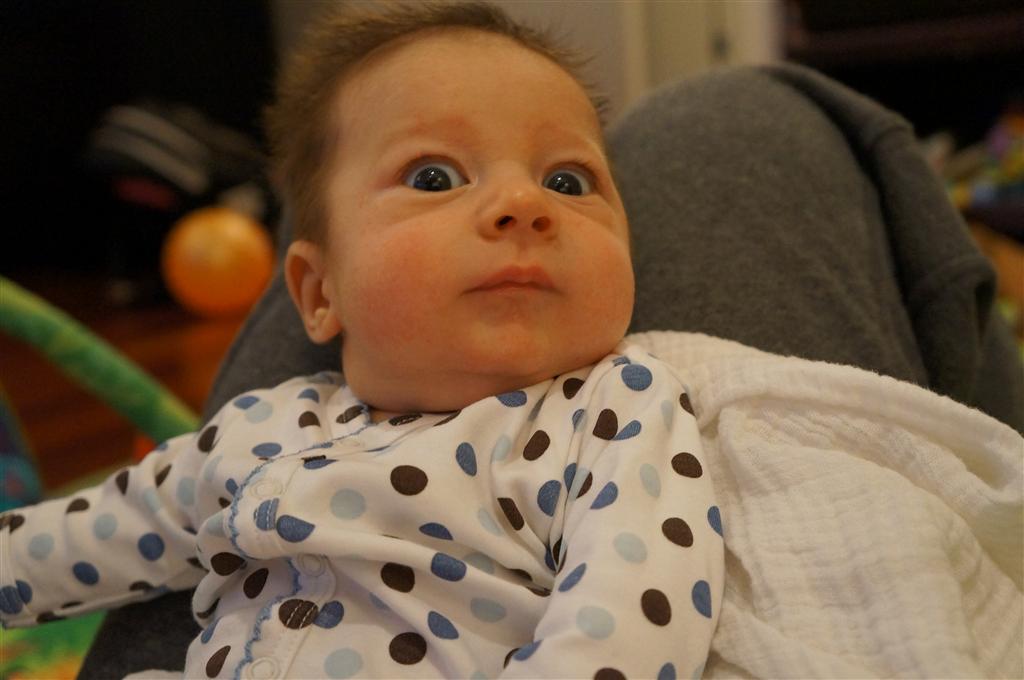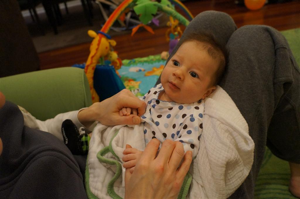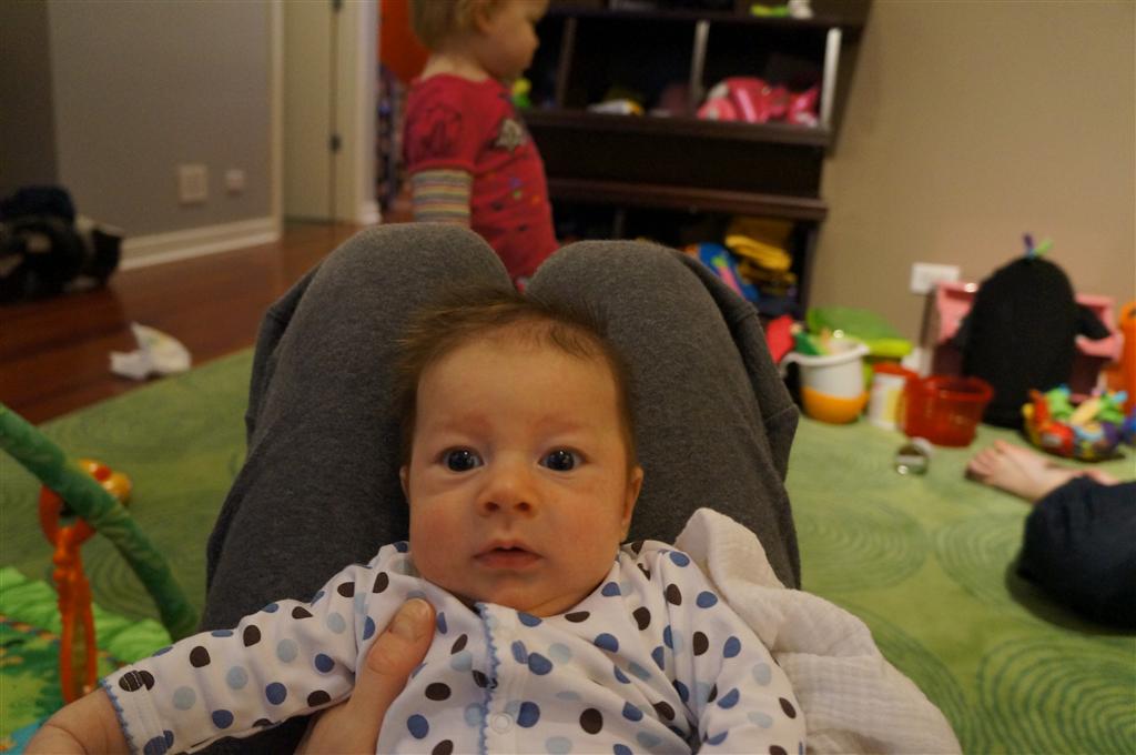 Two sick kiddos and one sick parent conspired against Henry attending his first Super Bowl party – there’s always next year! The good news is that Henry finally seems to be on the mend after almost two weeks of a cough/cold. He was definitely in better spirits today, and I’m pretty sure that I got a smile or two this afternoon – while he was refusing to nap :) Mom and Dad got used to the amount of nap time that Henry needed while he was sick – which means we have a bit of an adjustment to make now that he is feeling better! Hopefully next week we will have photographic evidence of that smile.