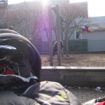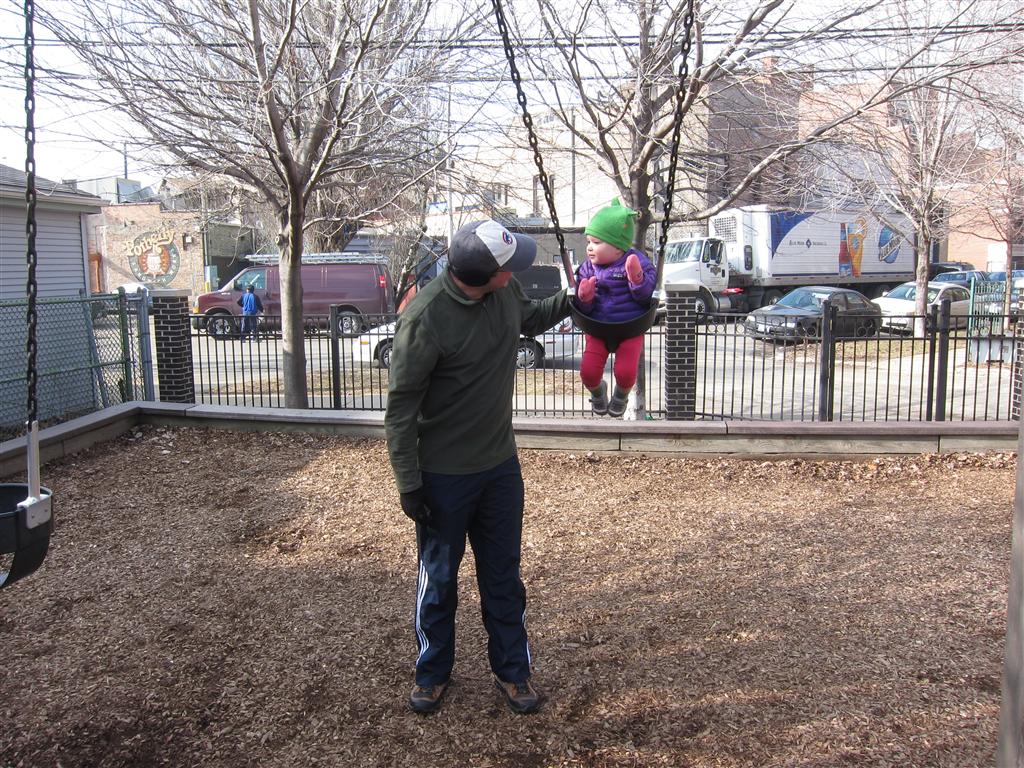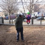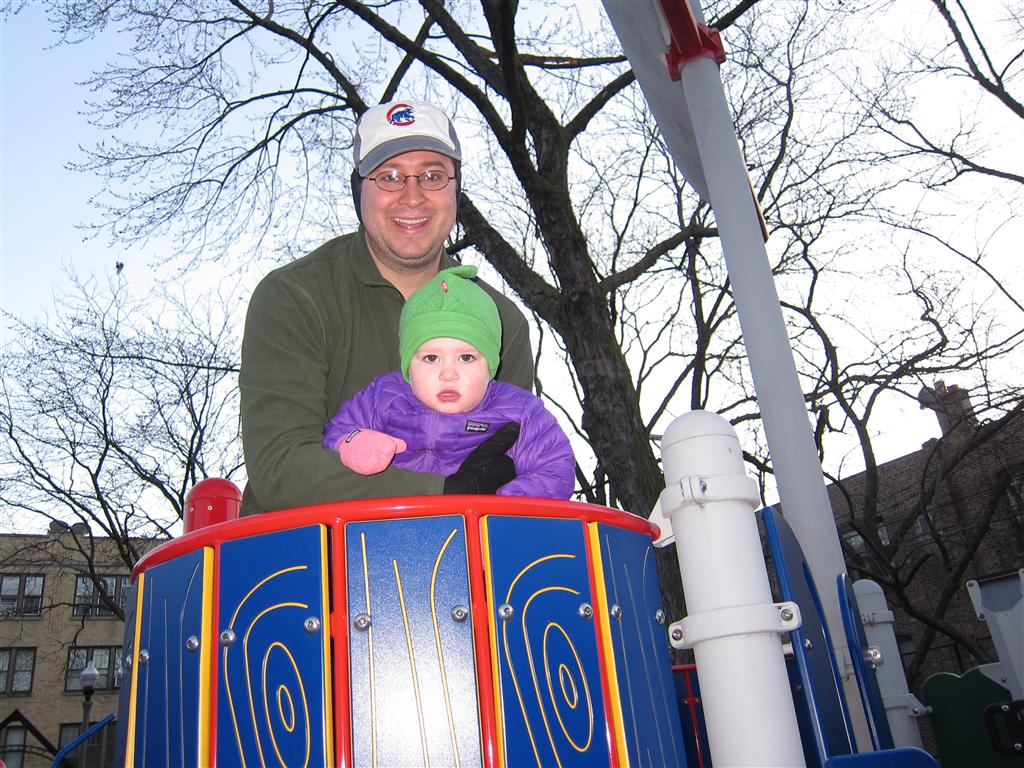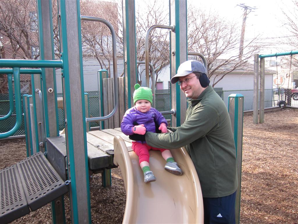 Must have been cold in the park, even Mike wore a coat, gloves and ear muffs:.