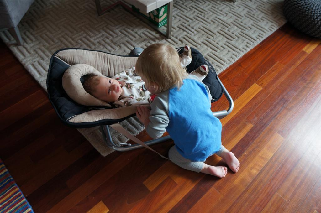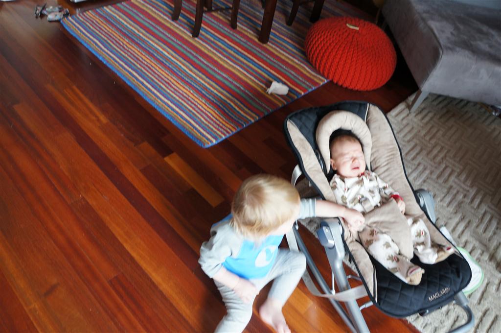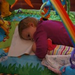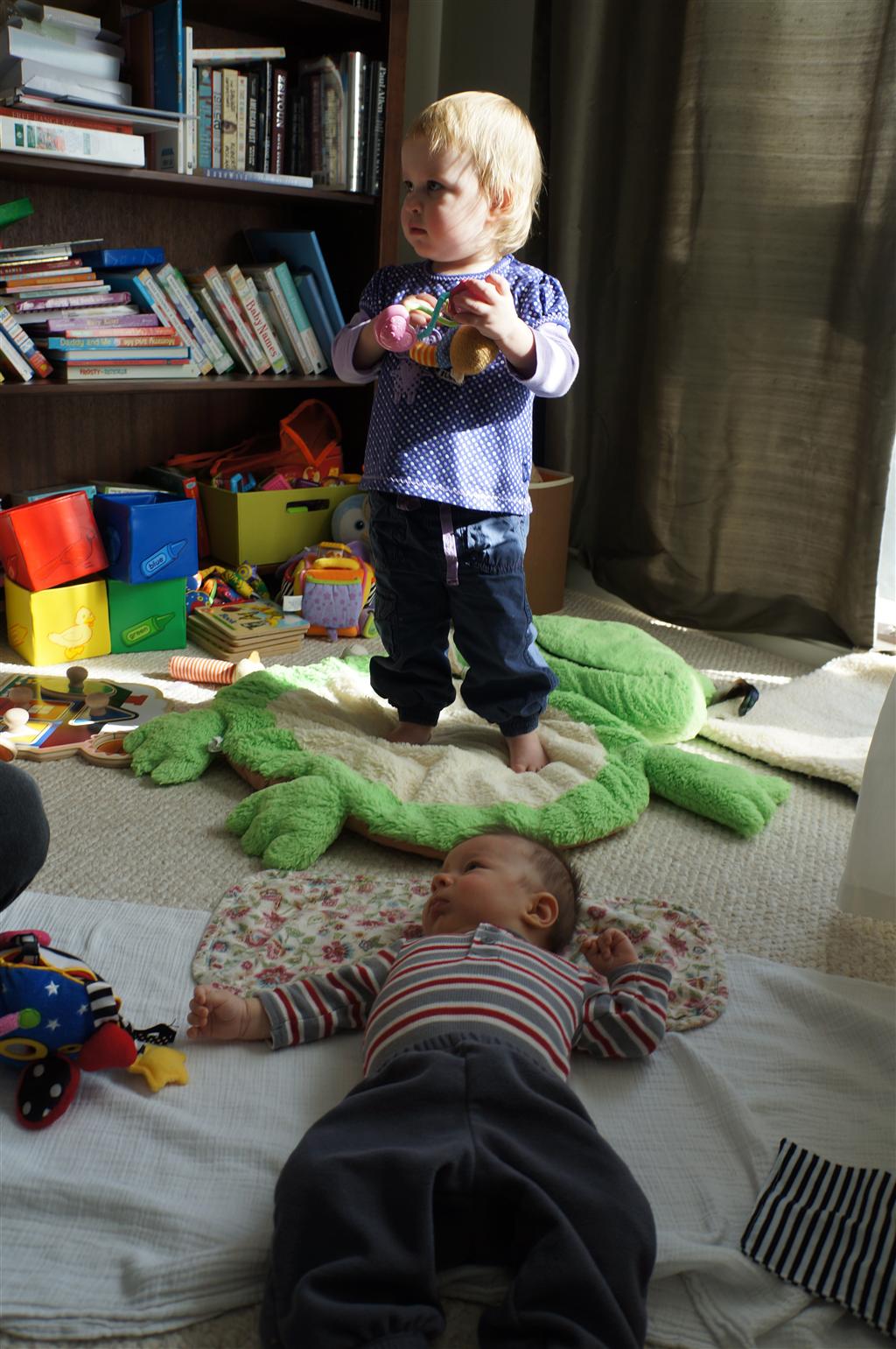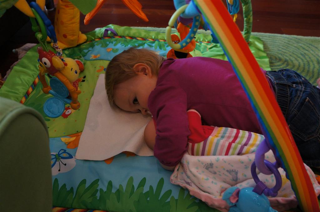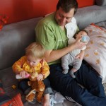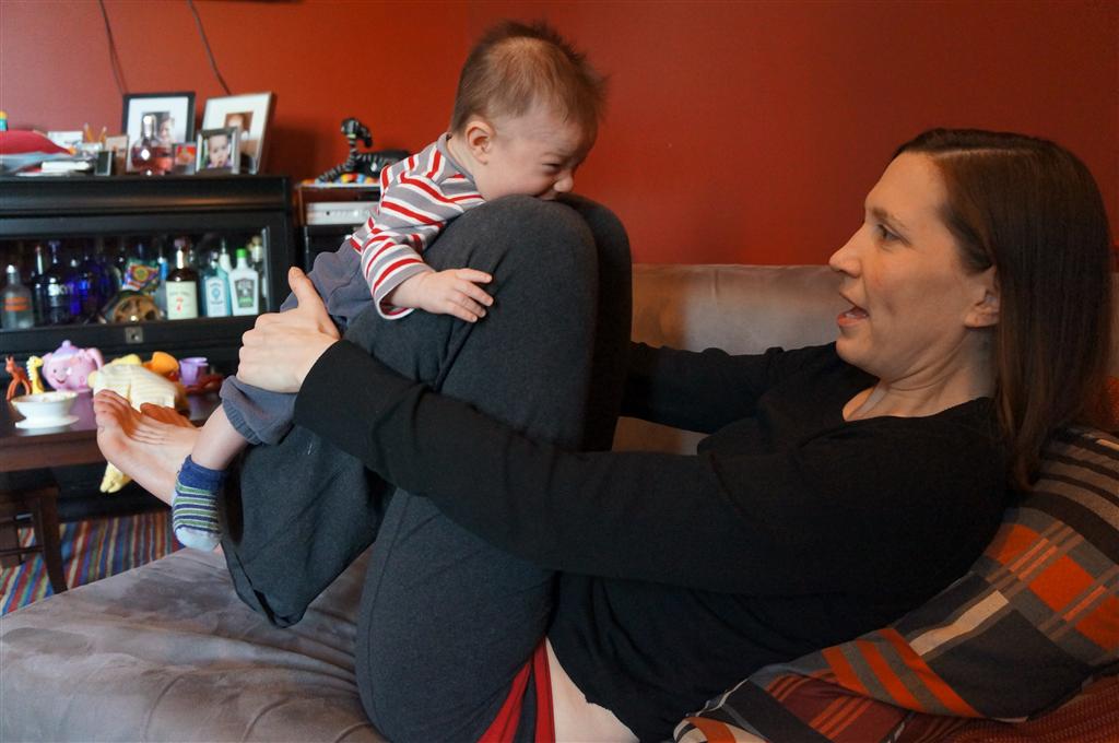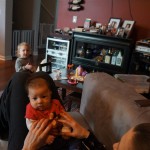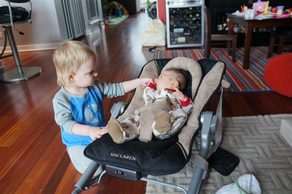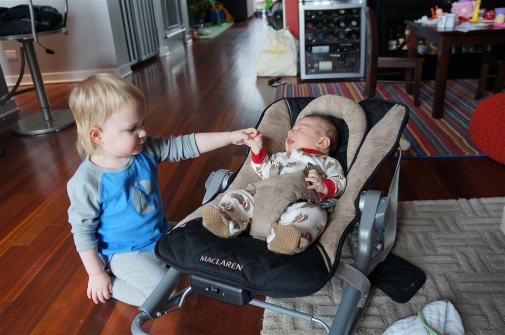 Not to be outdone, Henry is maturing before our eyes as well. Smiles are much more common now, and he has even started to make some happy noises – not quite giggles yet, but definitely the precursor to giggling. It won’t be long and we’ll have full out giggles – and probably some rolling over too. He had some good half rolls this week, as well as a couple times holding a toy in his hand. He hasn’t started reaching out for toys yet, but he is doing more grabbing with his fingers when you hold his hands.