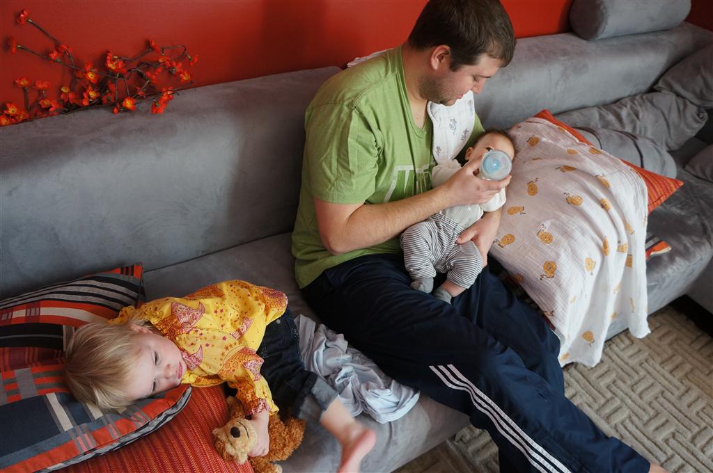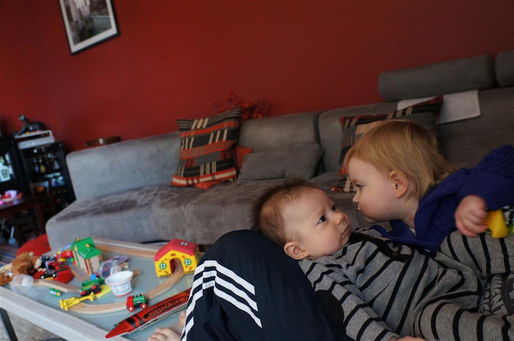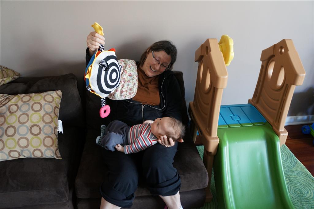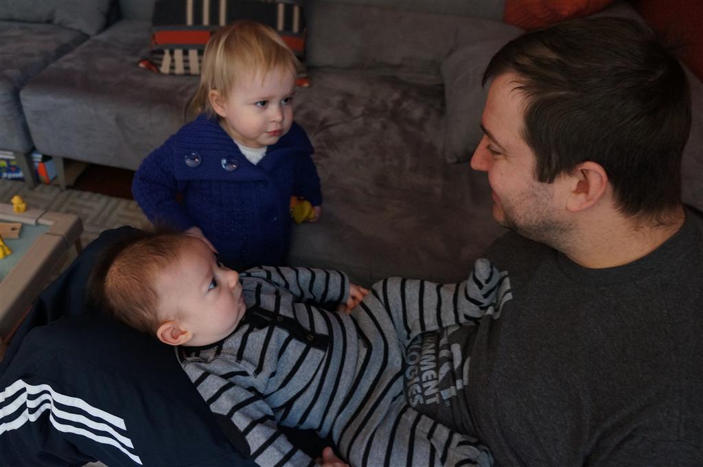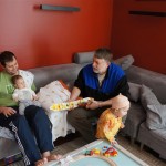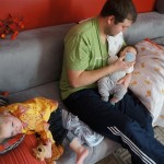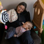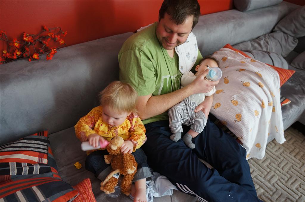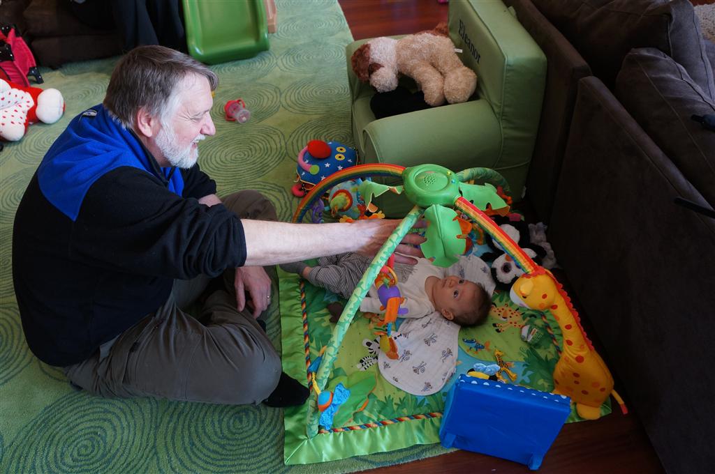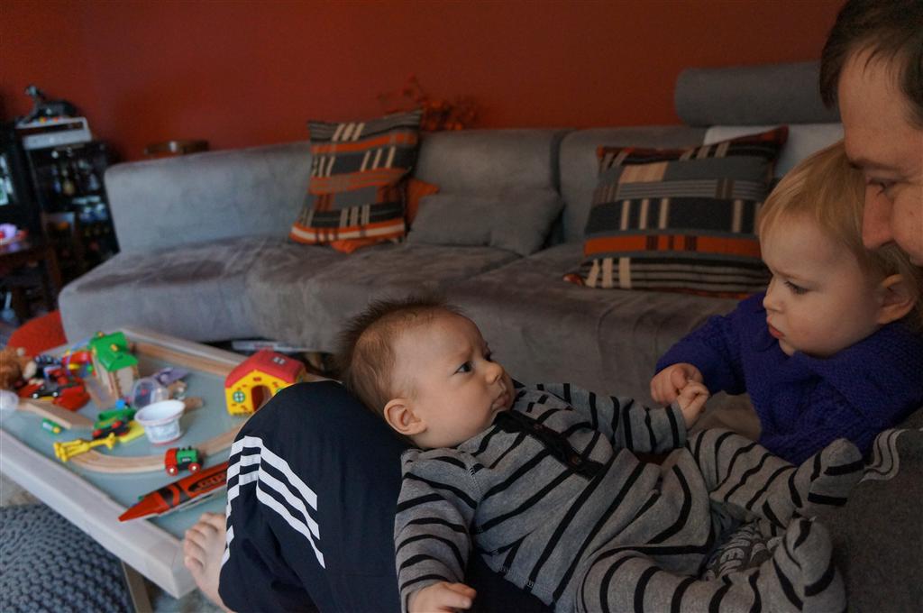 Not to be outdone, Henry is maturing before our eyes as well. Smiles are much more common now, and he has even started to make some happy noises – not quite giggles yet, but definitely the precursor to giggling. It won’t be long and we’ll have full out giggles – and probably some rolling over too. He had some good half rolls this week, as well as a couple times holding a toy in his hand. He hasn’t started reaching out for toys yet, but he is doing more grabbing with his fingers when you hold his hands.