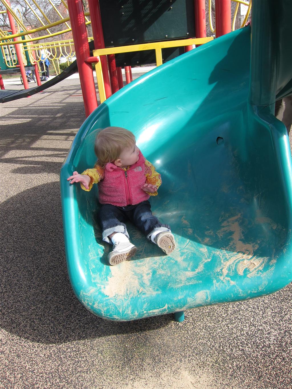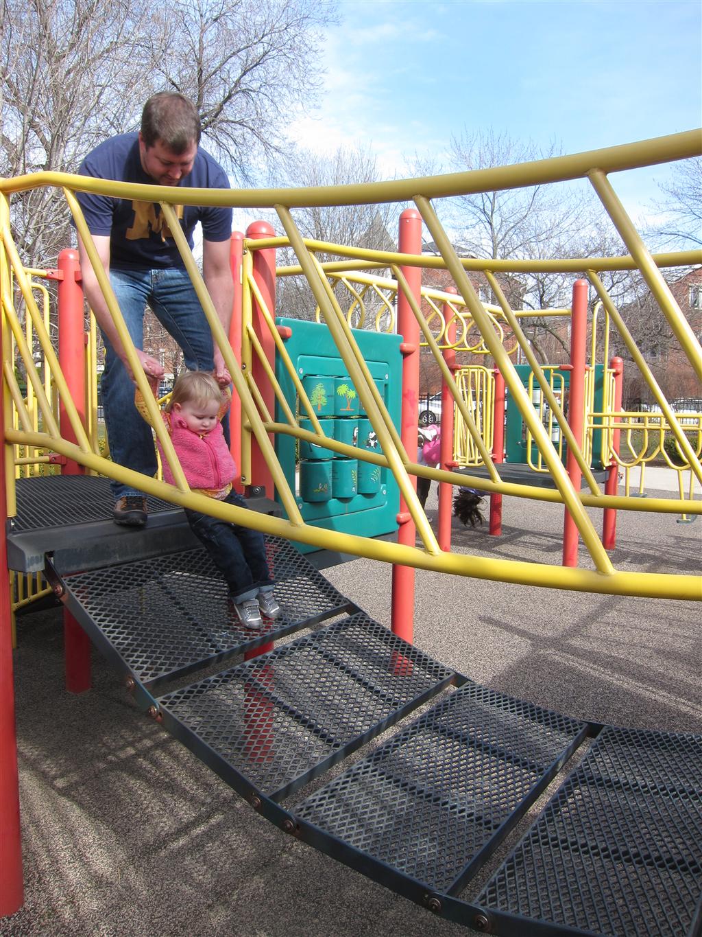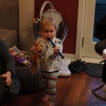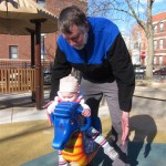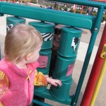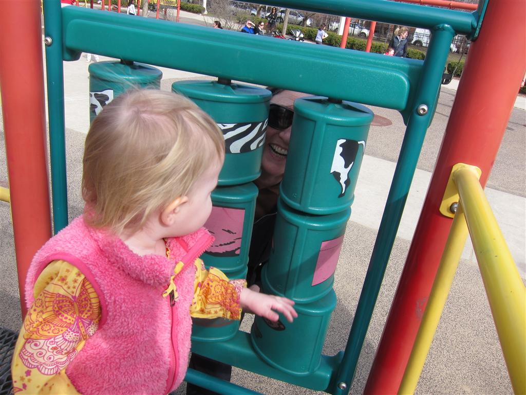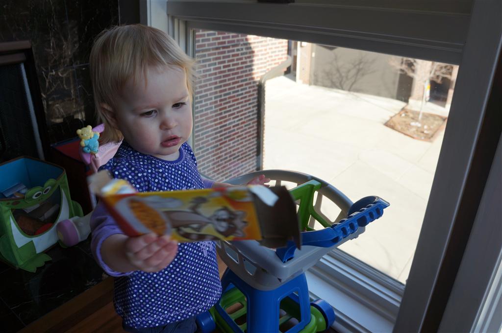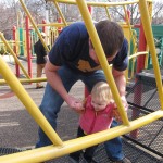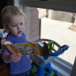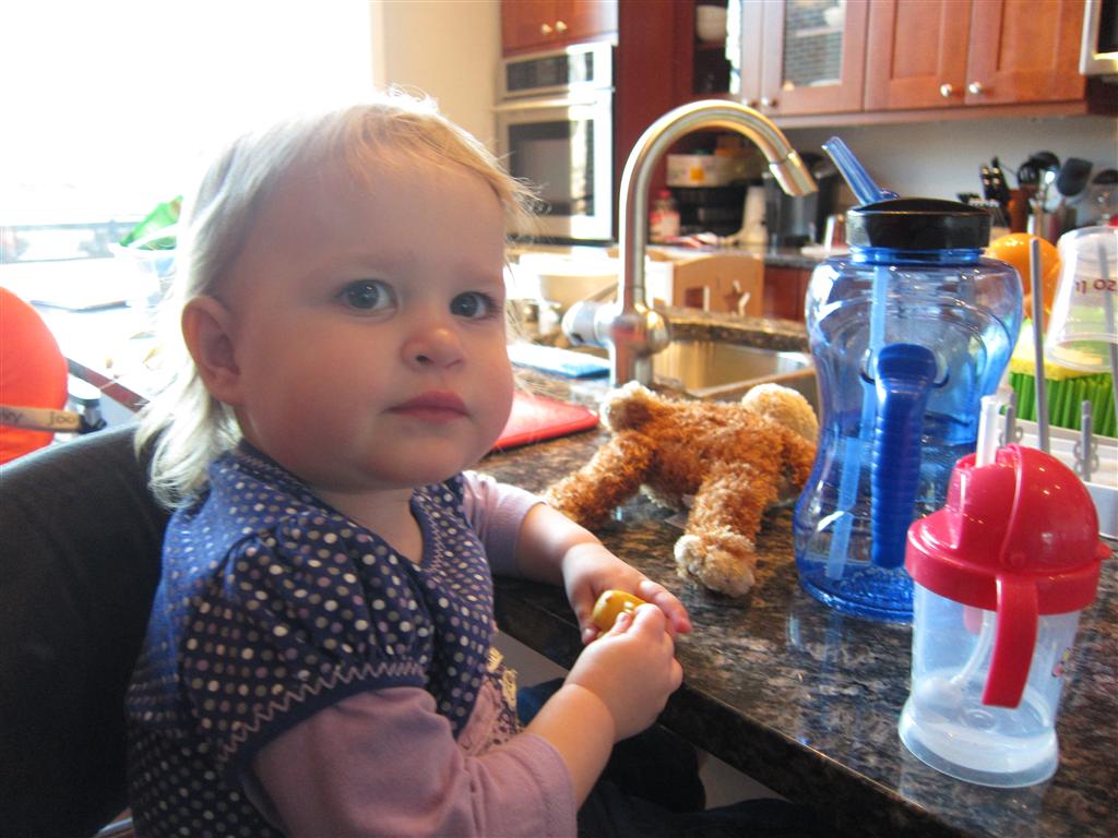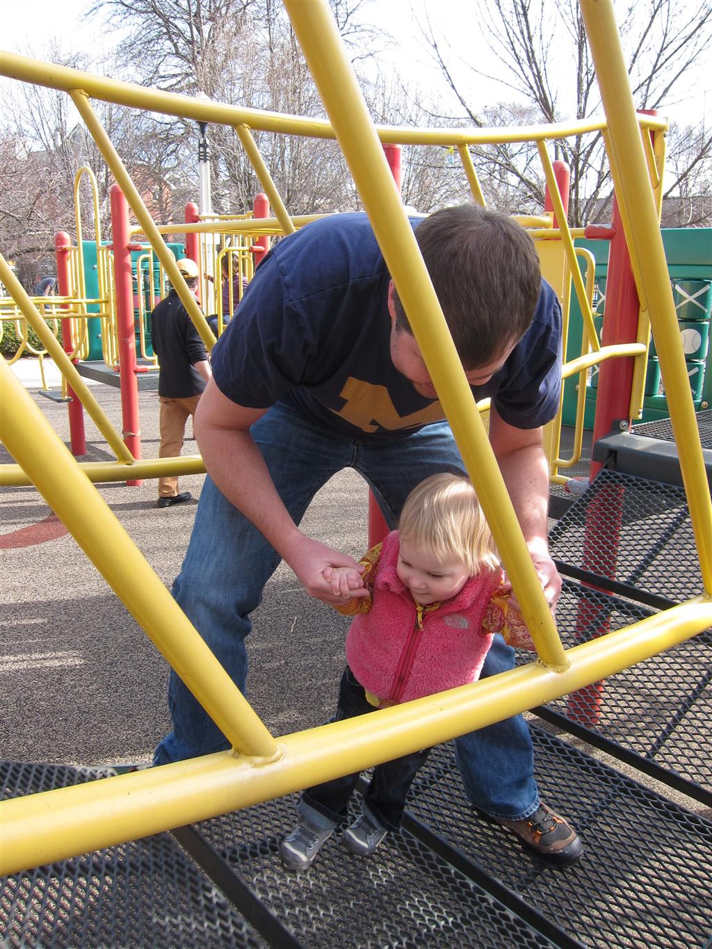 Papa and Mimi came into town for a quick weekend visit, and Eleanor and Henry both got some good grandparent time. Saturday and Sunday were super nice out, so we got to have some extended park time as well. Actually, there were a bunch of nice days this week, and Eleanor really enjoyed the opportunity to play longer outside. This week was really the first time that she spent an entire park session without wanting or needing parental assistance. She can climb up the steps, go down the slide, and repeat… all by herself. On Saturday she played in the sandbox at the park for a good 15 minutes with Lala, just scooping sand in and out of a bucket. I can’t wait to have fun with her in our sandbox all this summer. Eleanor also took her language explosion to a whole new level this week – she just starting saying all kinds of words while reading some picture books. One particular reading session with Mom produced probably 20 new words on its own. Oh yeah, and she can count. Up to eight. Up until this week I had only heard one and two – and then all the sudden while reading “8 Silly Monkey” (thanks Mimi!) Eleanor said “eight” while pointing to the last monkey on the page. So we pointed to the other monkeys in turn, and she rattled off one through eight. Crazy. Now she wants to do it every time we read that book.