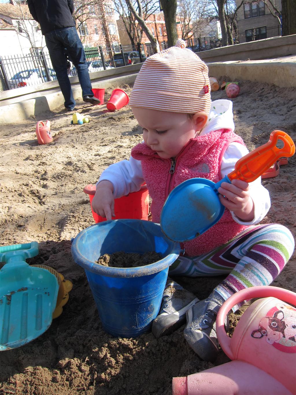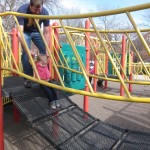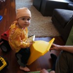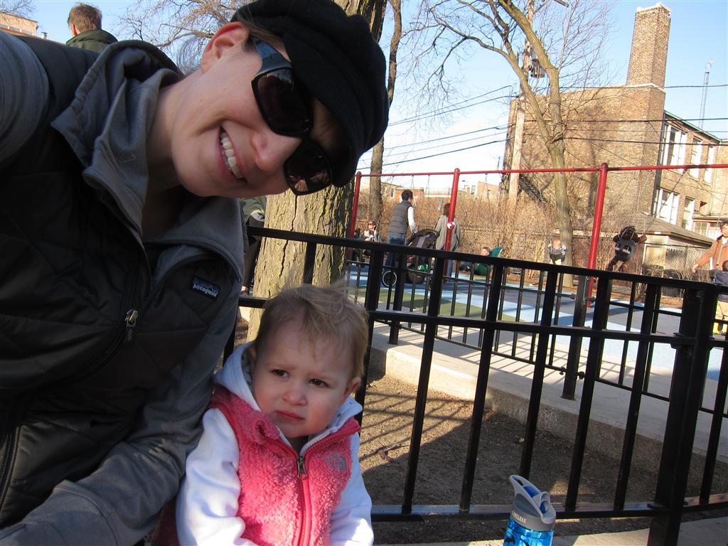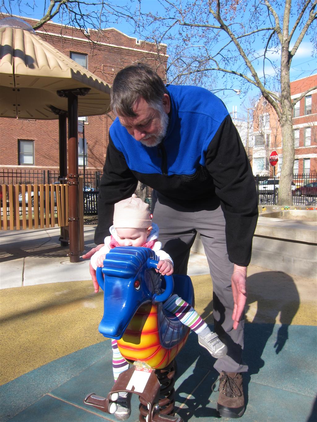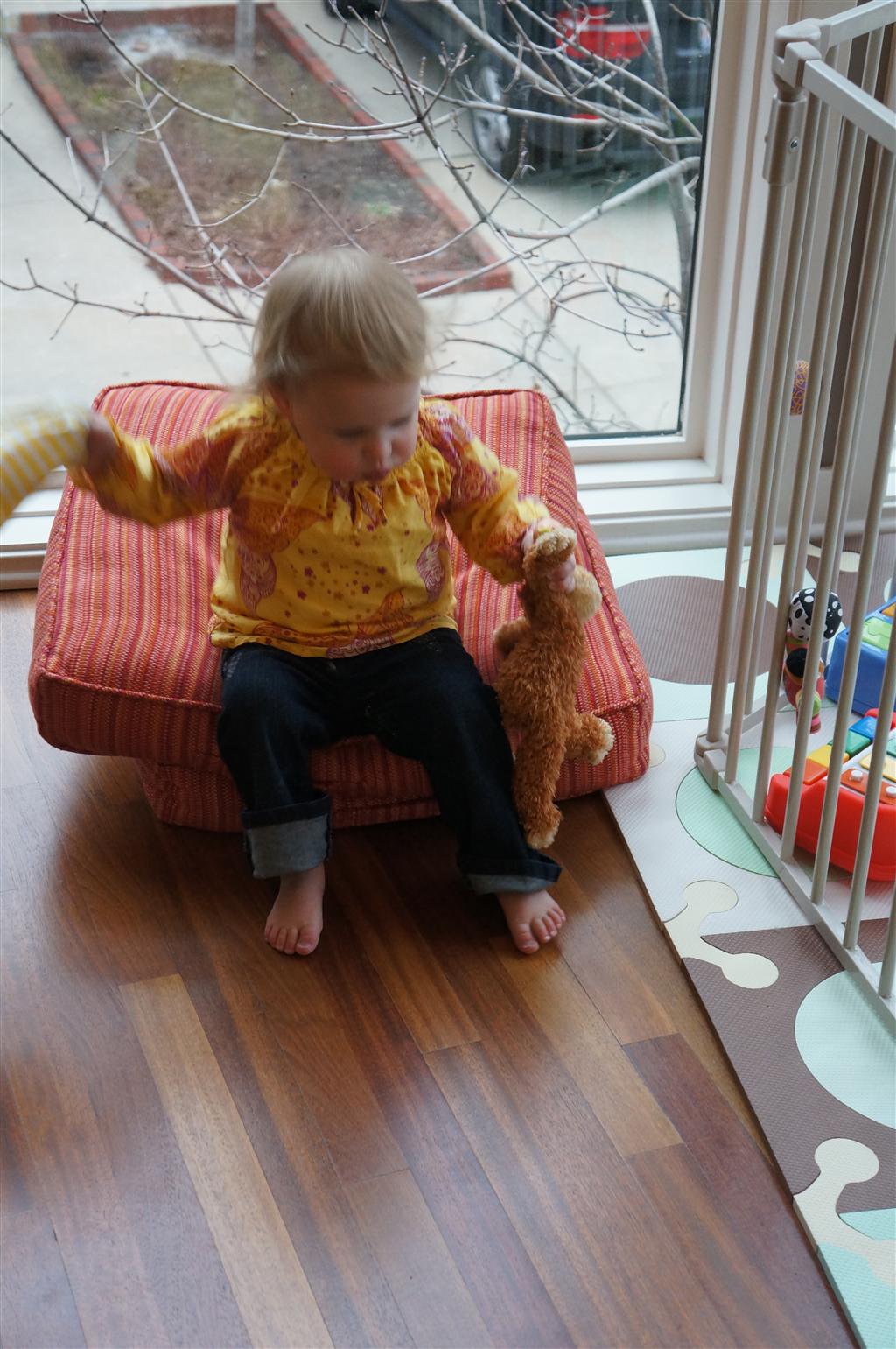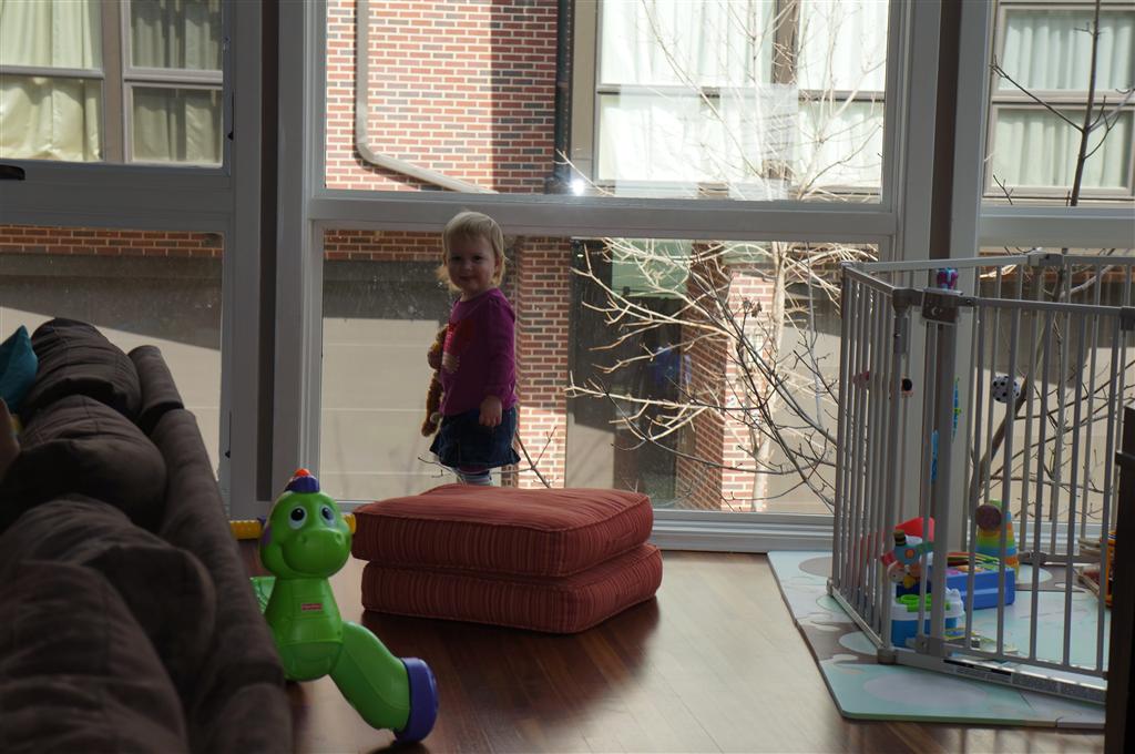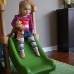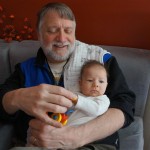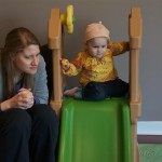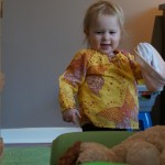Papa and Mimi came into town for a quick weekend visit, and Eleanor and Henry both got some good grandparent time. Saturday and Sunday were super nice out, so we got to have some extended park time as well. Actually, there were a bunch of nice days this week, and Eleanor really enjoyed the opportunity to play longer outside. This week was really the first time that she spent an entire park session without wanting or needing parental assistance. She can climb up the steps, go down the slide, and repeat… all by herself. On Saturday she played in the sandbox at the park for a good 15 minutes with Lala, just scooping sand in and out of a bucket. I can’t wait to have fun with her in our sandbox all this summer. Eleanor also took her language explosion to a whole new level this week – she just starting saying all kinds of words while reading some picture books. One particular reading session with Mom produced probably 20 new words on its own. Oh yeah, and she can count. Up to eight. Up until this week I had only heard one and two – and then all the sudden while reading “8 Silly Monkey” (thanks Mimi!) Eleanor said “eight” while pointing to the last monkey on the page. So we pointed to the other monkeys in turn, and she rattled off one through eight. Crazy. Now she wants to do it every time we read that book.