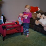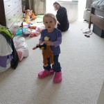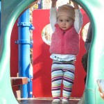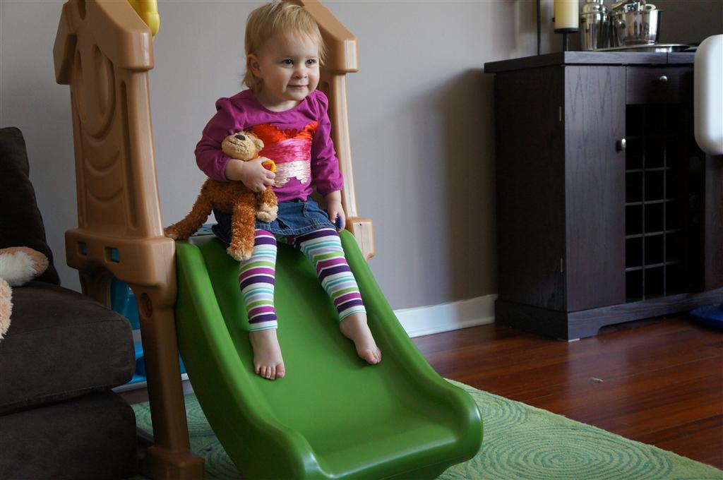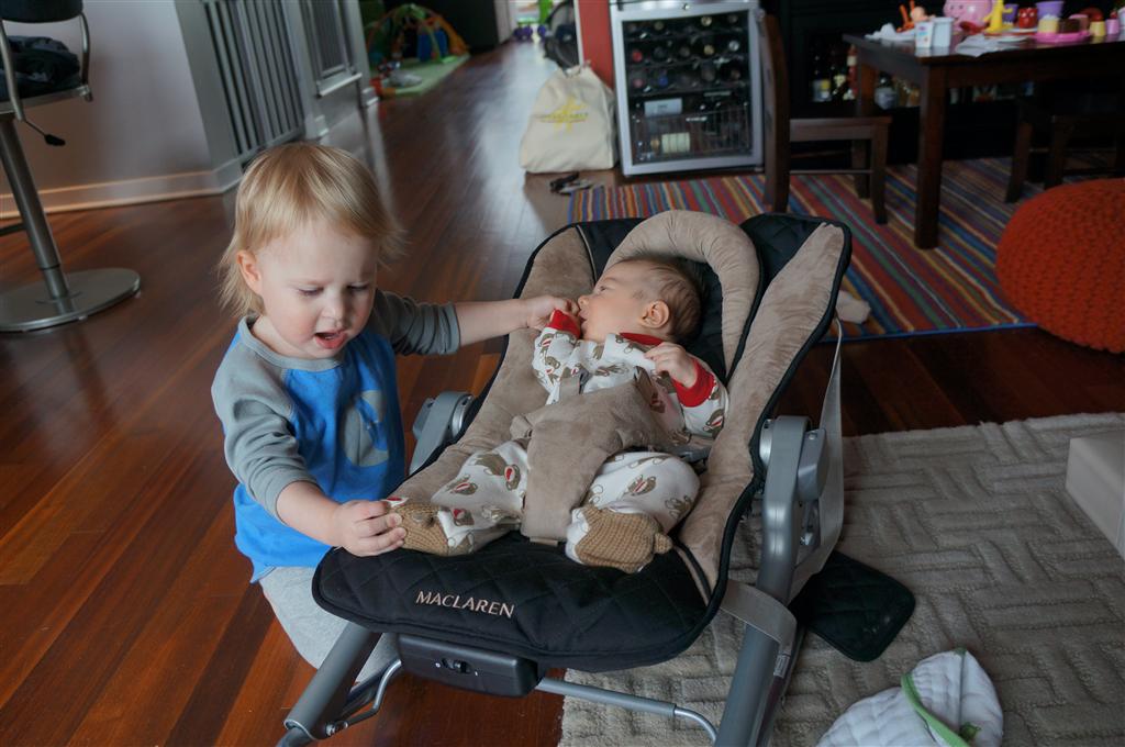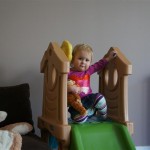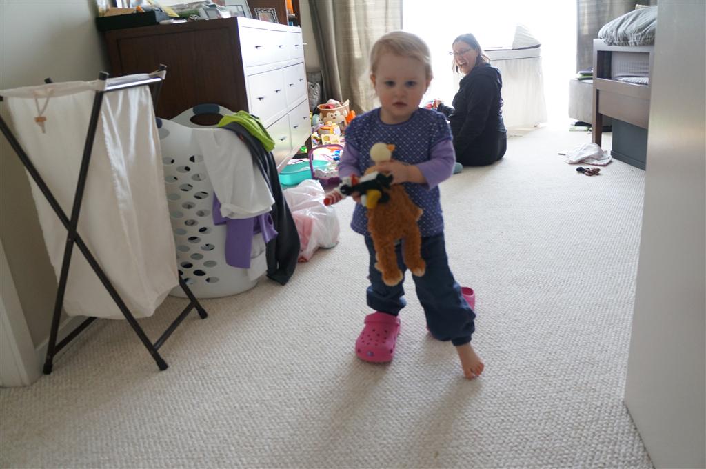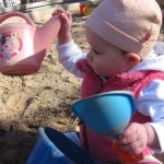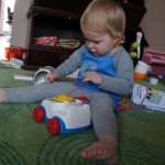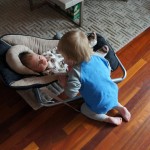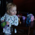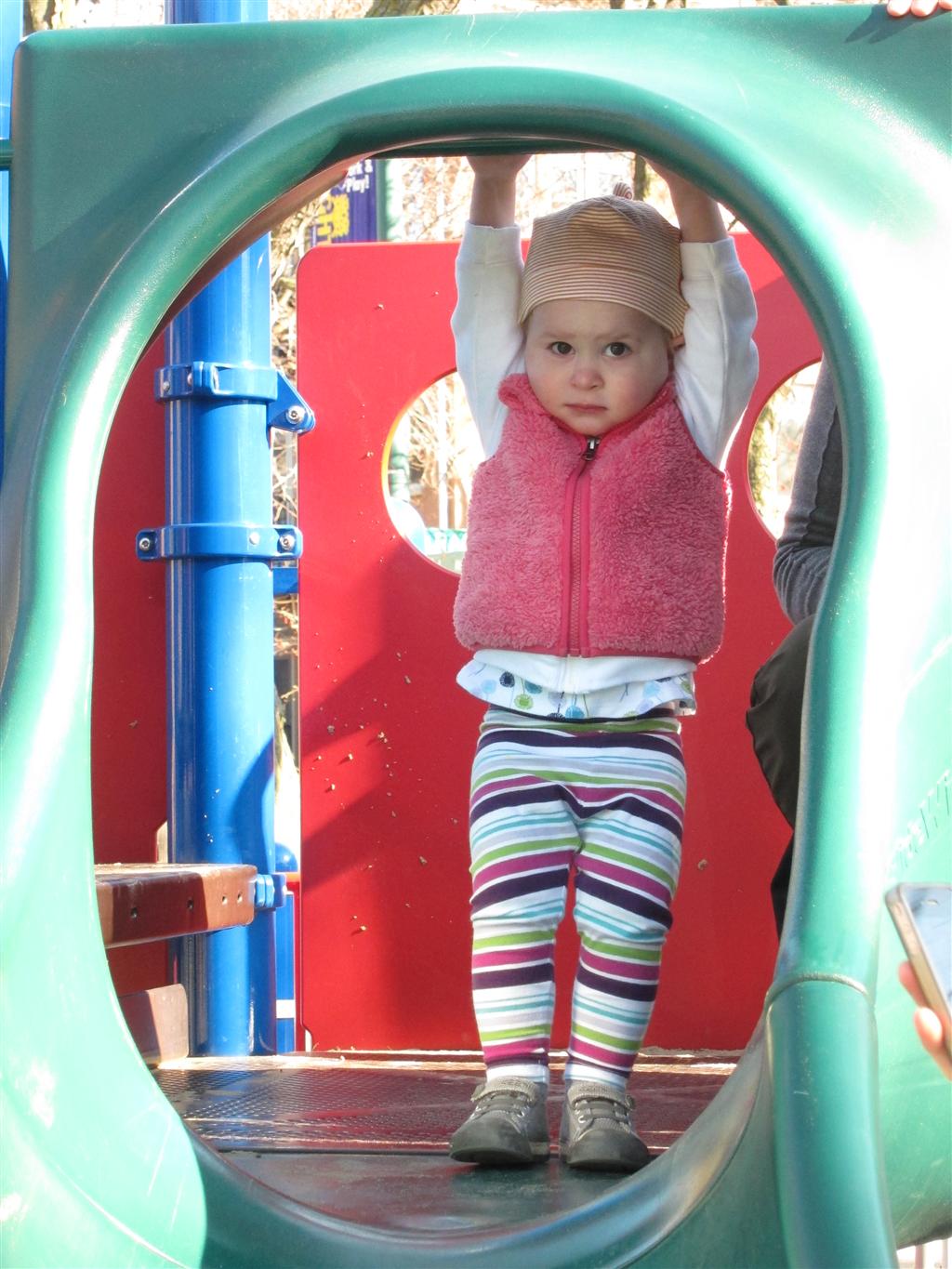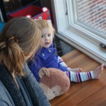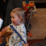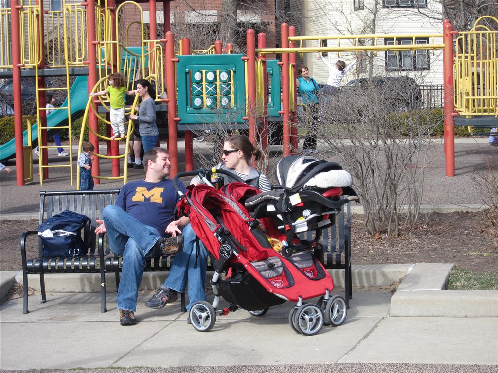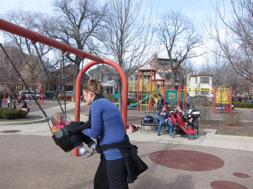 Papa and Mimi came into town for a quick weekend visit, and Eleanor and Henry both got some good grandparent time. Saturday and Sunday were super nice out, so we got to have some extended park time as well. Actually, there were a bunch of nice days this week, and Eleanor really enjoyed the opportunity to play longer outside. This week was really the first time that she spent an entire park session without wanting or needing parental assistance. She can climb up the steps, go down the slide, and repeat… all by herself. On Saturday she played in the sandbox at the park for a good 15 minutes with Lala, just scooping sand in and out of a bucket. I can’t wait to have fun with her in our sandbox all this summer. Eleanor also took her language explosion to a whole new level this week – she just starting saying all kinds of words while reading some picture books. One particular reading session with Mom produced probably 20 new words on its own. Oh yeah, and she can count. Up to eight. Up until this week I had only heard one and two – and then all the sudden while reading “8 Silly Monkey” (thanks Mimi!) Eleanor said “eight” while pointing to the last monkey on the page. So we pointed to the other monkeys in turn, and she rattled off one through eight. Crazy. Now she wants to do it every time we read that book.