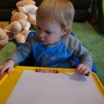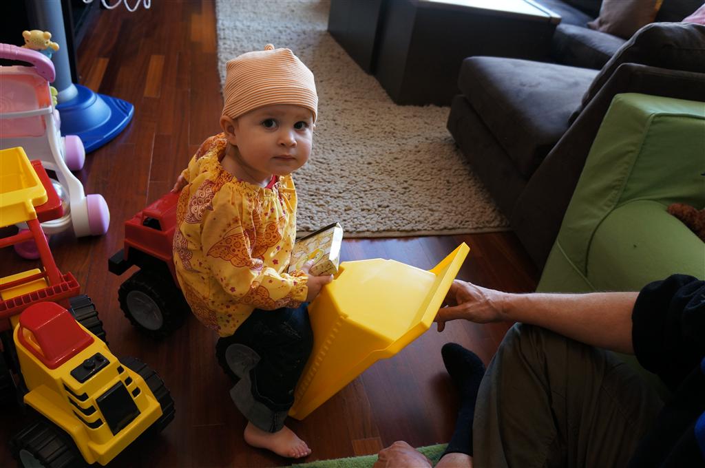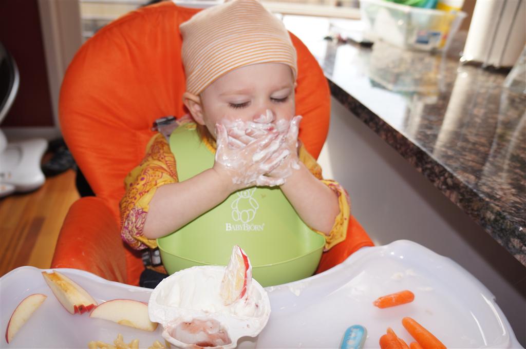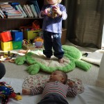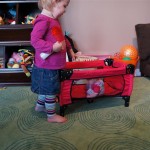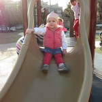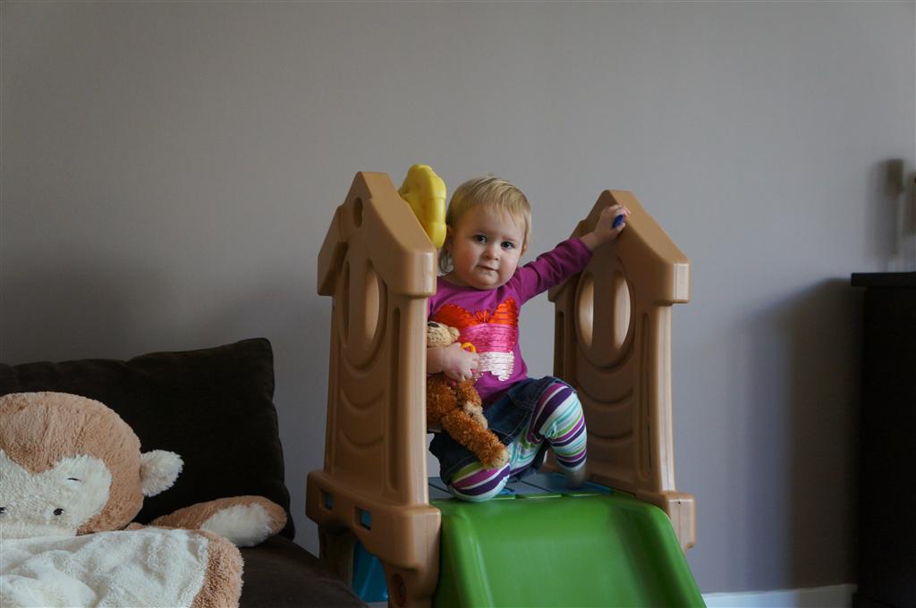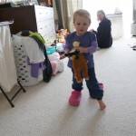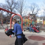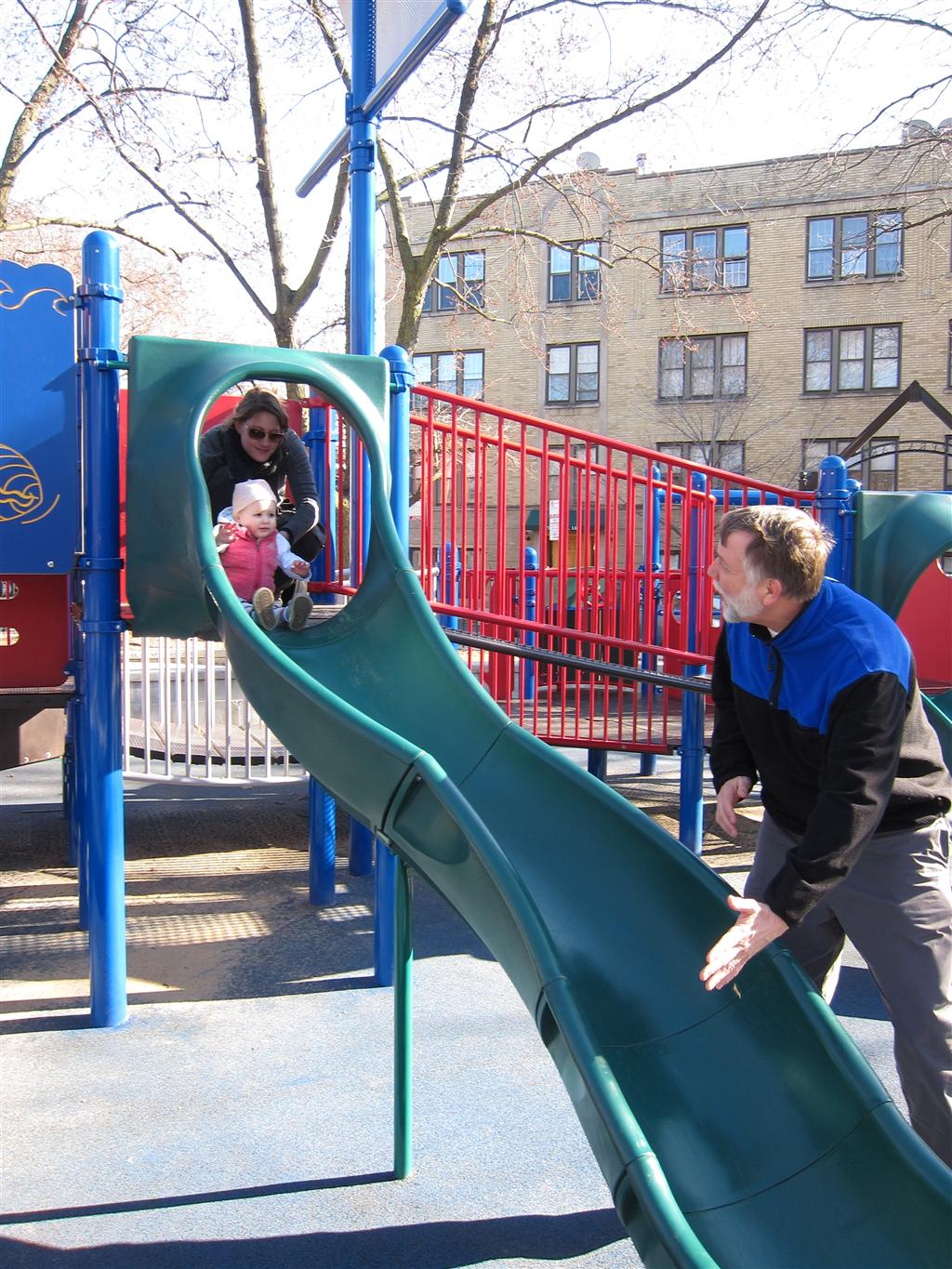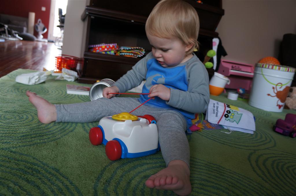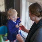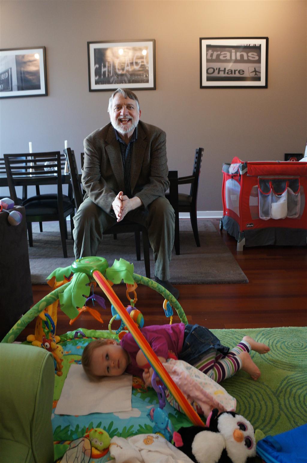 Papa and Mimi came into town for a quick weekend visit, and Eleanor and Henry both got some good grandparent time. Saturday and Sunday were super nice out, so we got to have some extended park time as well. Actually, there were a bunch of nice days this week, and Eleanor really enjoyed the opportunity to play longer outside. This week was really the first time that she spent an entire park session without wanting or needing parental assistance. She can climb up the steps, go down the slide, and repeat… all by herself. On Saturday she played in the sandbox at the park for a good 15 minutes with Lala, just scooping sand in and out of a bucket. I can’t wait to have fun with her in our sandbox all this summer. Eleanor also took her language explosion to a whole new level this week – she just starting saying all kinds of words while reading some picture books. One particular reading session with Mom produced probably 20 new words on its own. Oh yeah, and she can count. Up to eight. Up until this week I had only heard one and two – and then all the sudden while reading “8 Silly Monkey” (thanks Mimi!) Eleanor said “eight” while pointing to the last monkey on the page. So we pointed to the other monkeys in turn, and she rattled off one through eight. Crazy. Now she wants to do it every time we read that book.