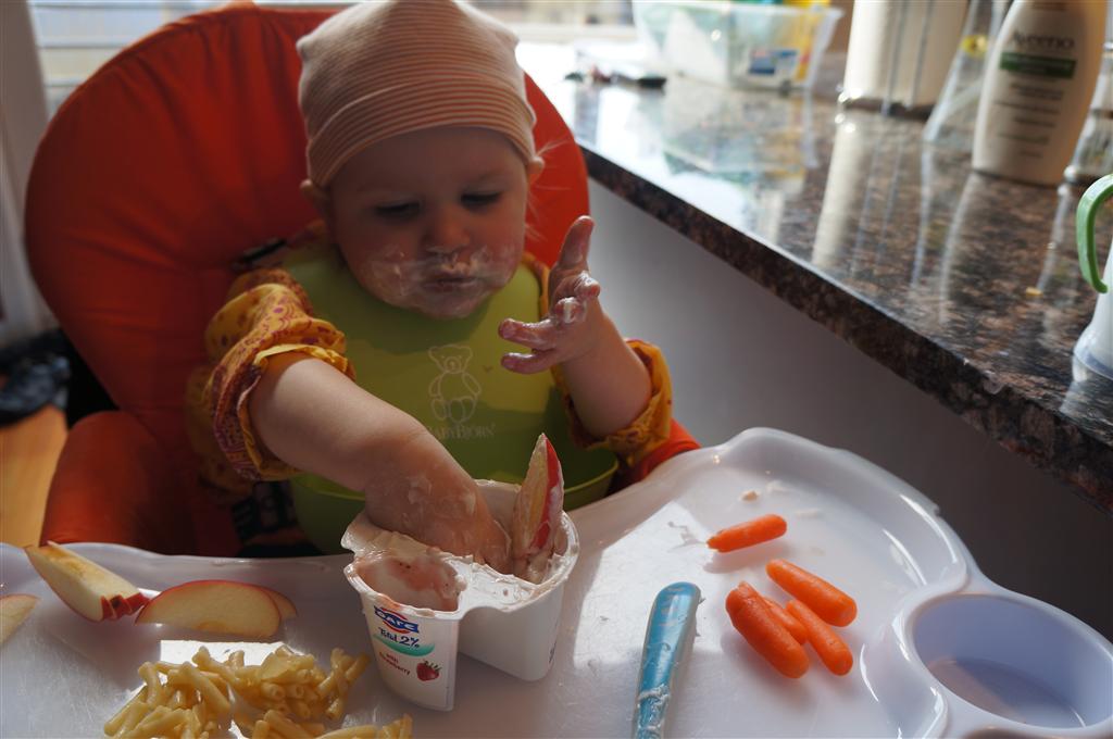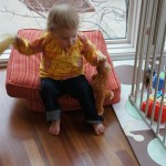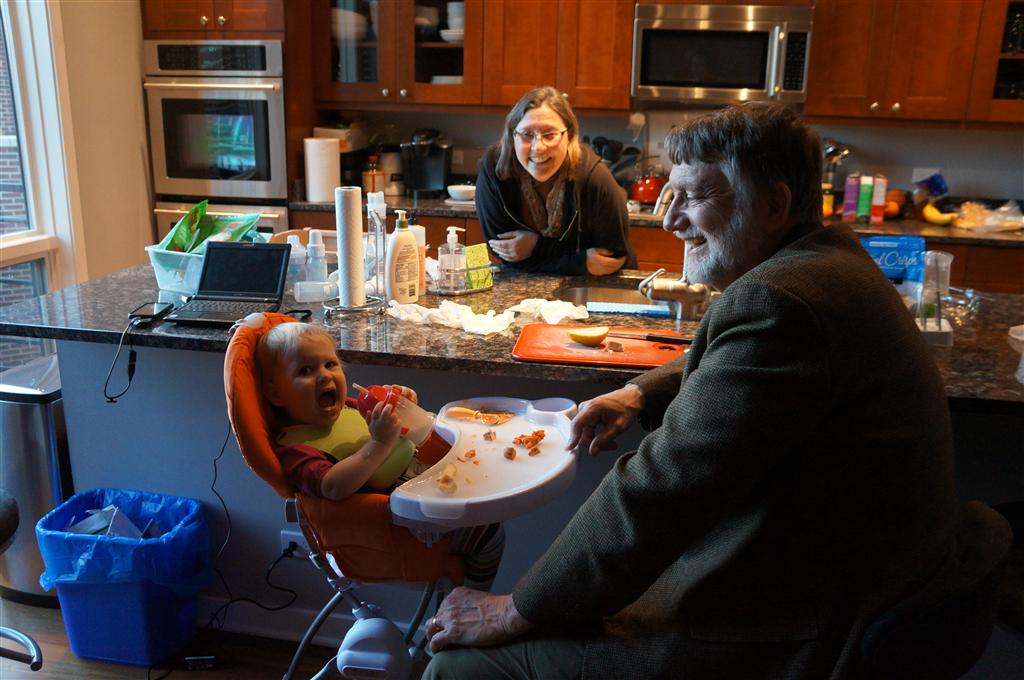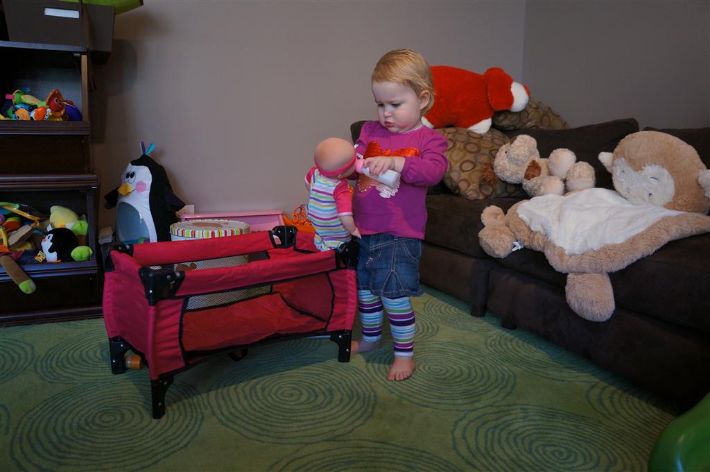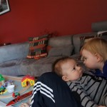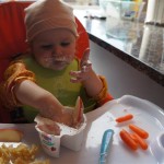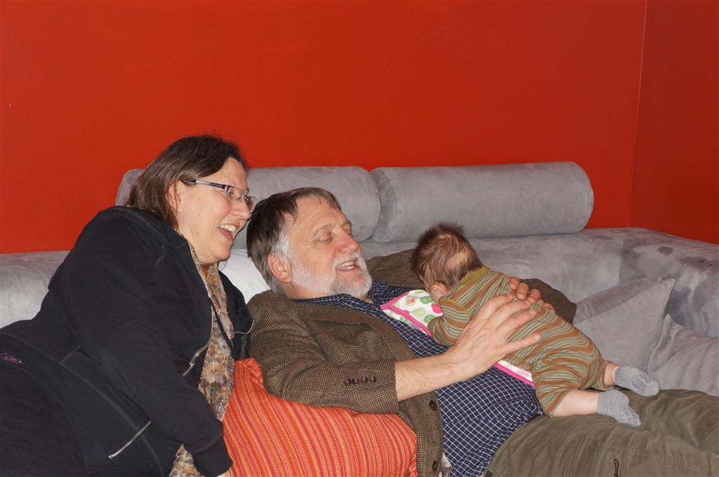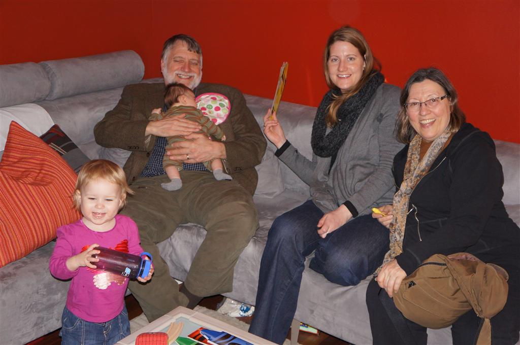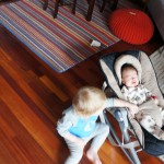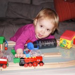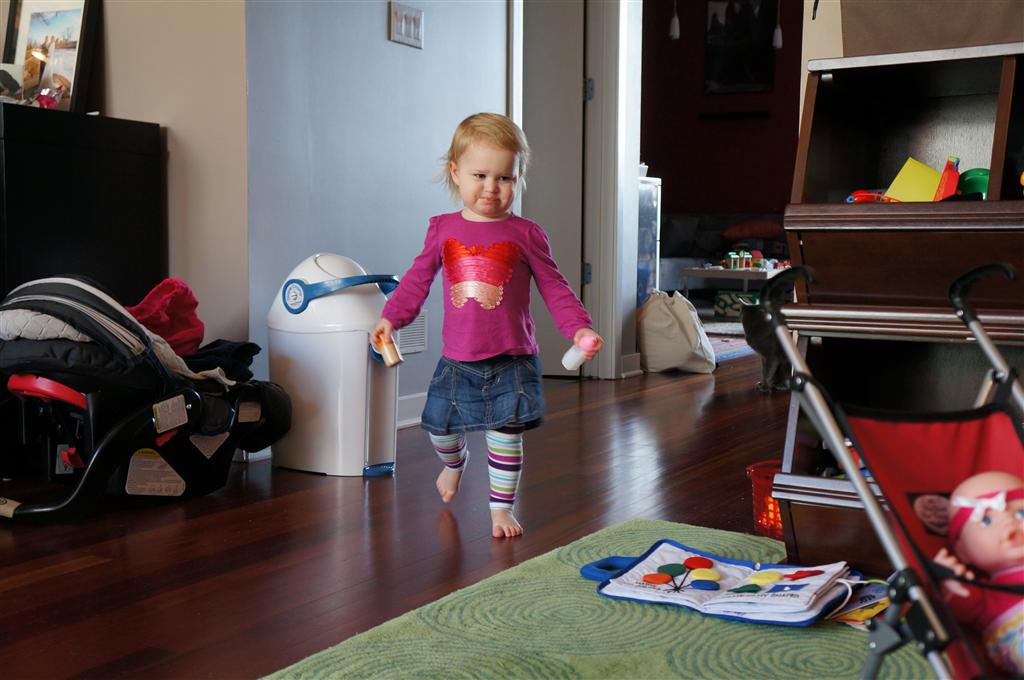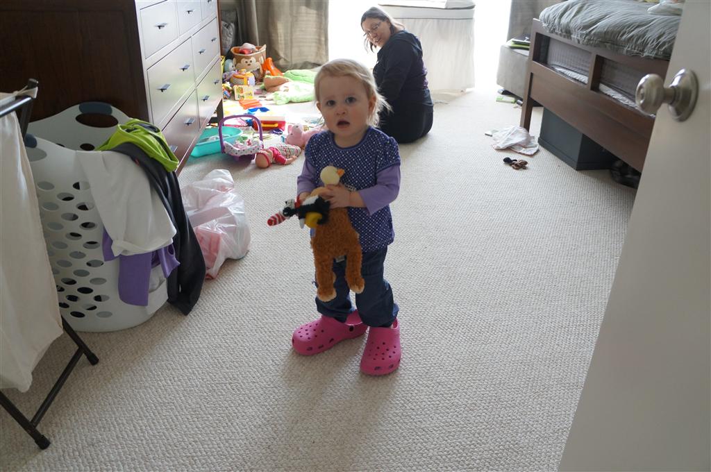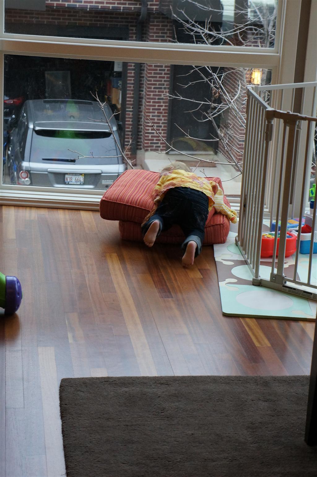 Papa and Mimi came into town for a quick weekend visit, and Eleanor and Henry both got some good grandparent time. Saturday and Sunday were super nice out, so we got to have some extended park time as well. Actually, there were a bunch of nice days this week, and Eleanor really enjoyed the opportunity to play longer outside. This week was really the first time that she spent an entire park session without wanting or needing parental assistance. She can climb up the steps, go down the slide, and repeat… all by herself. On Saturday she played in the sandbox at the park for a good 15 minutes with Lala, just scooping sand in and out of a bucket. I can’t wait to have fun with her in our sandbox all this summer. Eleanor also took her language explosion to a whole new level this week – she just starting saying all kinds of words while reading some picture books. One particular reading session with Mom produced probably 20 new words on its own. Oh yeah, and she can count. Up to eight. Up until this week I had only heard one and two – and then all the sudden while reading “8 Silly Monkey” (thanks Mimi!) Eleanor said “eight” while pointing to the last monkey on the page. So we pointed to the other monkeys in turn, and she rattled off one through eight. Crazy. Now she wants to do it every time we read that book.