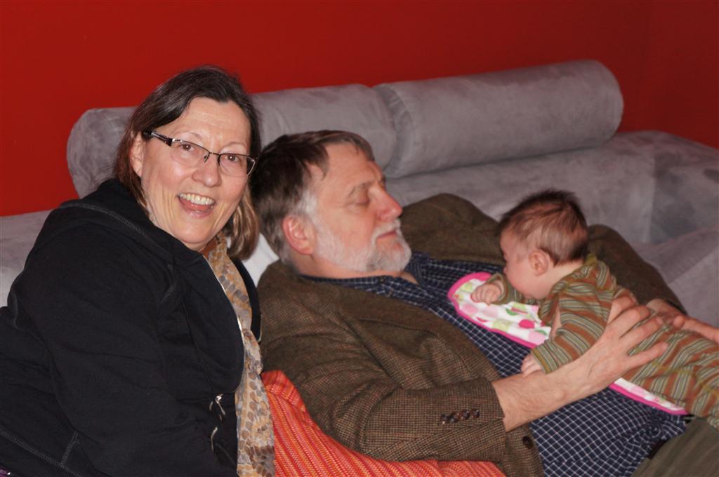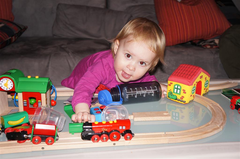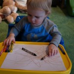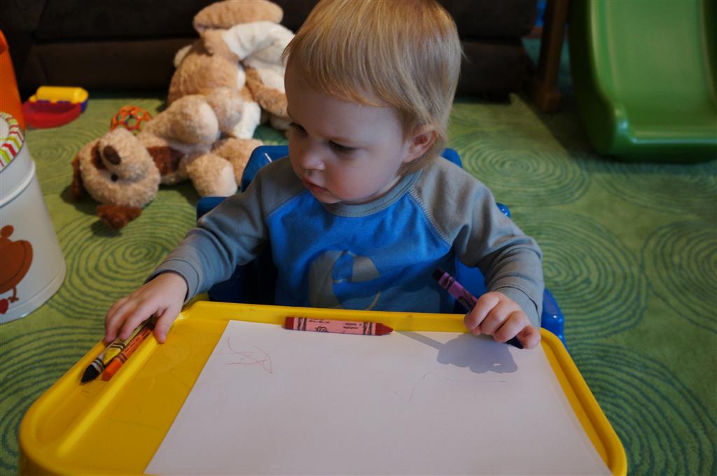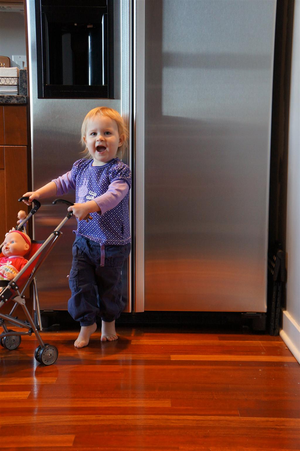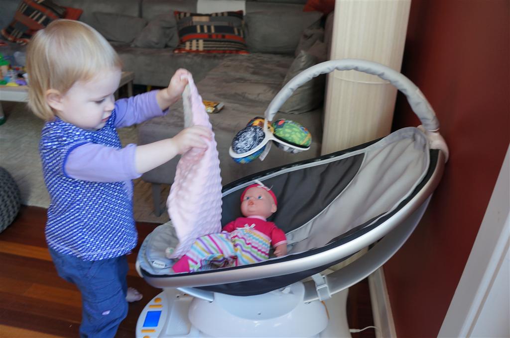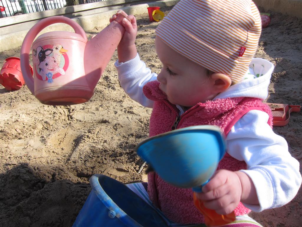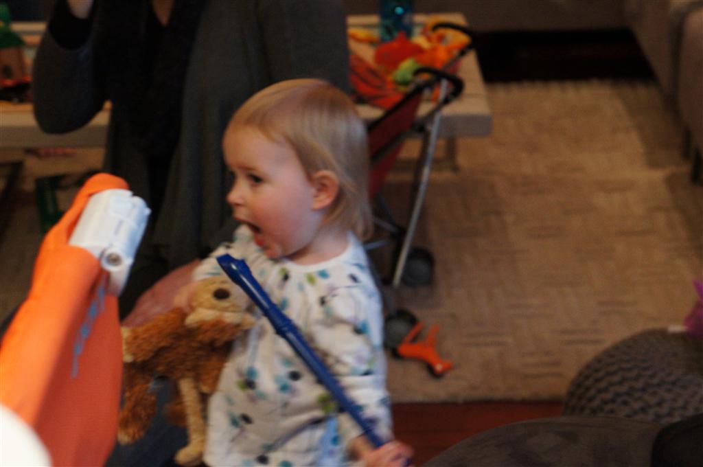 Papa and Mimi came into town for a quick weekend visit, and Eleanor and Henry both got some good grandparent time. Saturday and Sunday were super nice out, so we got to have some extended park time as well. Actually, there were a bunch of nice days this week, and Eleanor really enjoyed the opportunity to play longer outside. This week was really the first time that she spent an entire park session without wanting or needing parental assistance. She can climb up the steps, go down the slide, and repeat… all by herself. On Saturday she played in the sandbox at the park for a good 15 minutes with Lala, just scooping sand in and out of a bucket. I can’t wait to have fun with her in our sandbox all this summer. Eleanor also took her language explosion to a whole new level this week – she just starting saying all kinds of words while reading some picture books. One particular reading session with Mom produced probably 20 new words on its own. Oh yeah, and she can count. Up to eight. Up until this week I had only heard one and two – and then all the sudden while reading “8 Silly Monkey” (thanks Mimi!) Eleanor said “eight” while pointing to the last monkey on the page. So we pointed to the other monkeys in turn, and she rattled off one through eight. Crazy. Now she wants to do it every time we read that book.