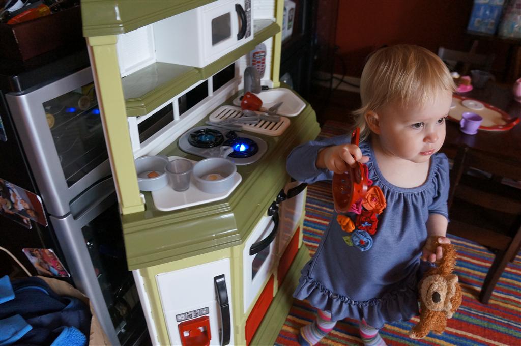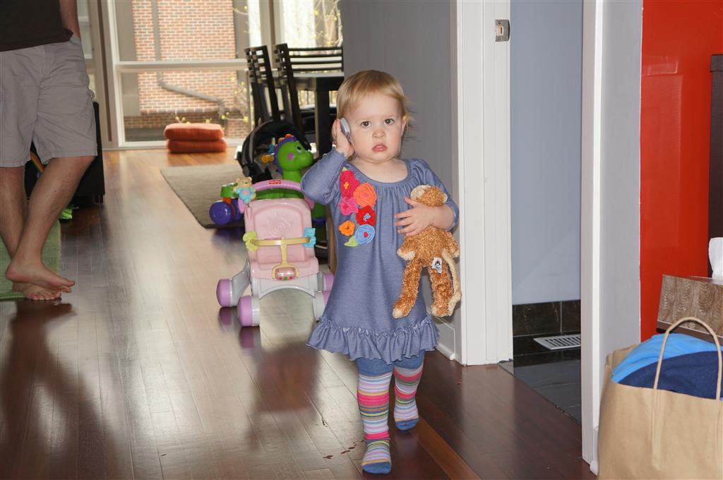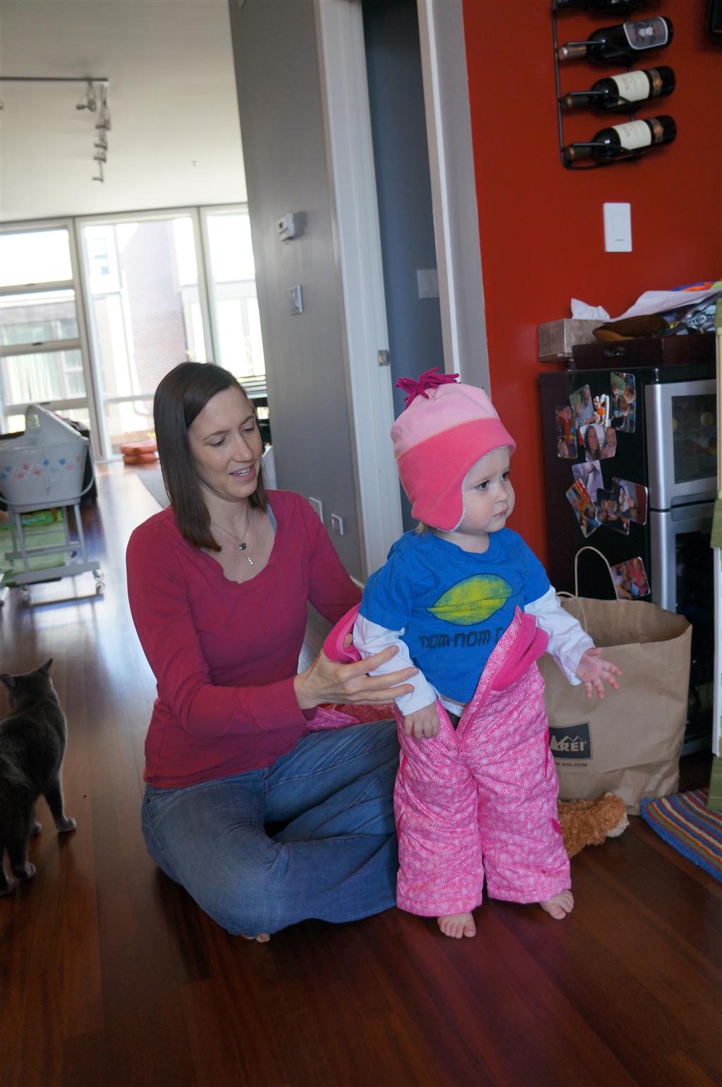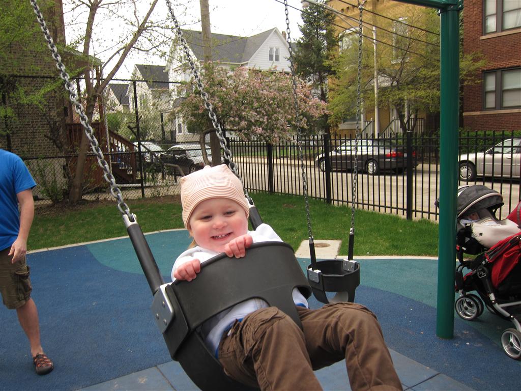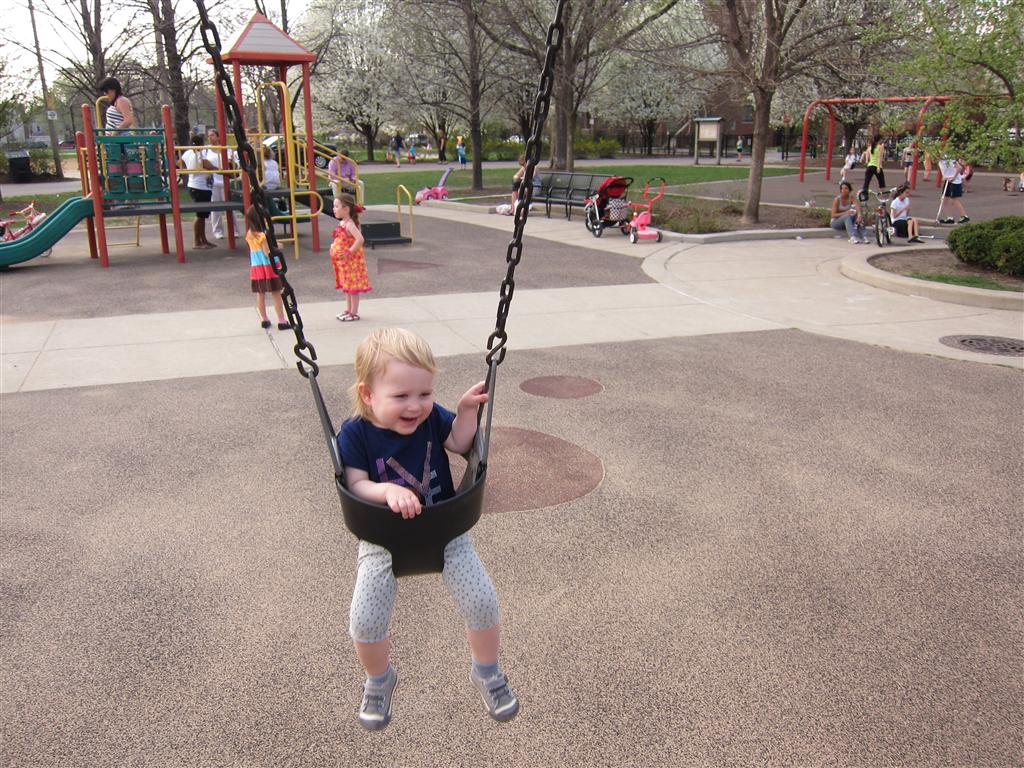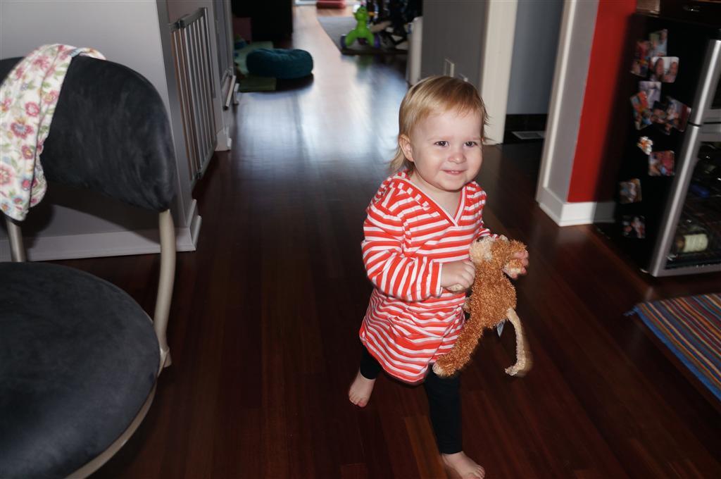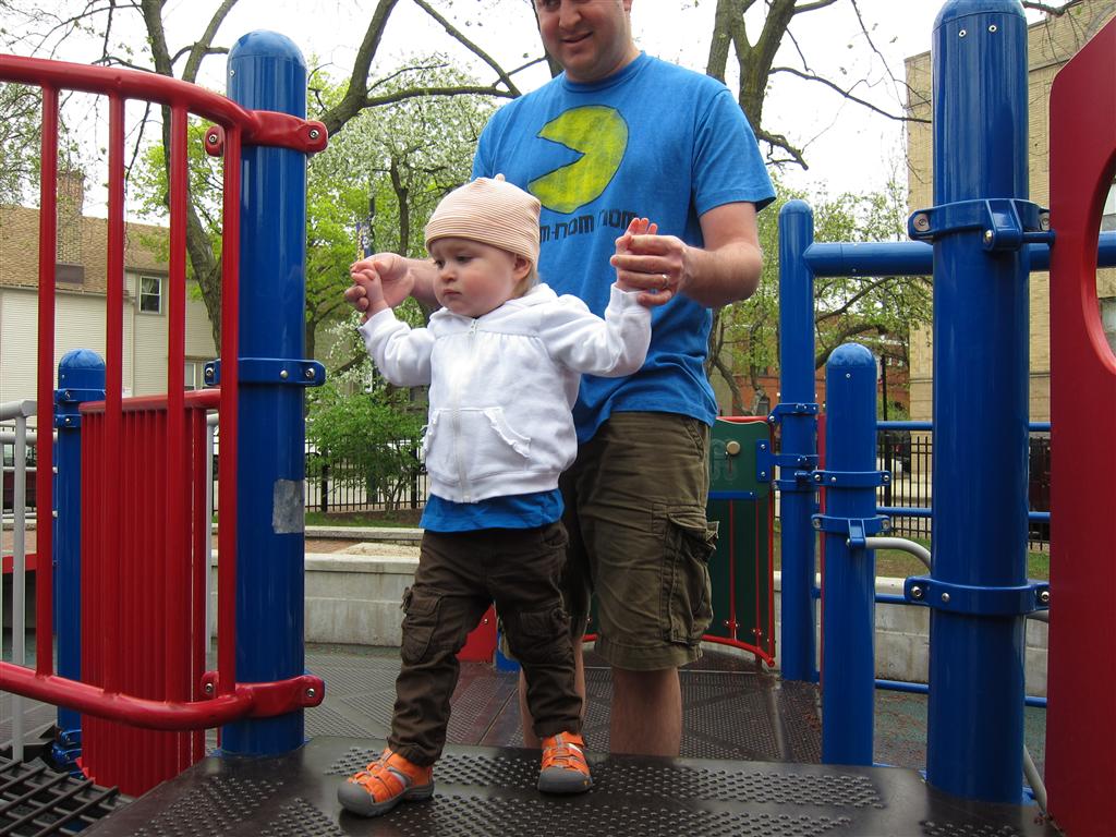 Eleanor learned a new word this week with the warm weather – shorts. She even used it in a partial sentence, “No shorts, pants.” Turns out that she prefers pants over shorts. Eleanor watched me scold the cat while she was scratching one of Eleanor’s toys, and now Eleanor will chase the cat around pointing and saying “No No No”. On Sunday we had our first preview of the “terrible twos” as Eleanor had a meltdown over nothing that lasted the entire walk home from the park. A random stranger passing us on a bike stopped to turn around and comment about Eleanor’s crying.