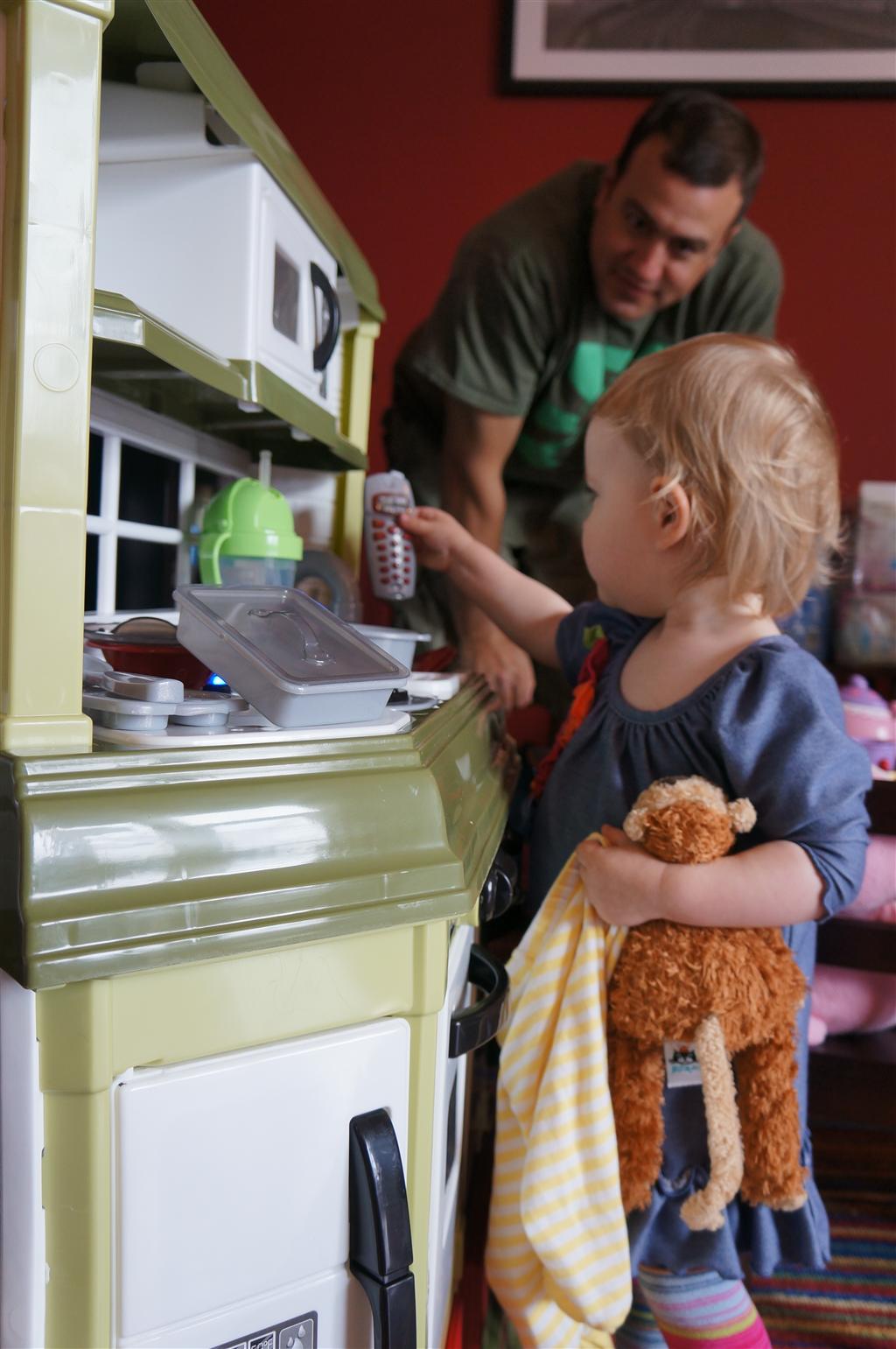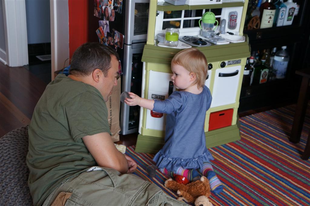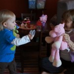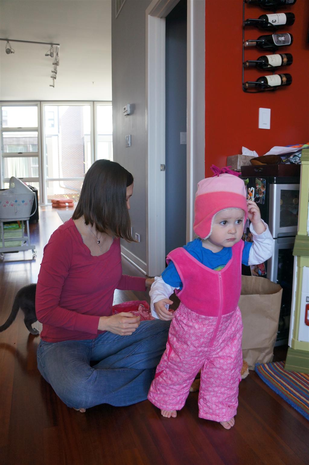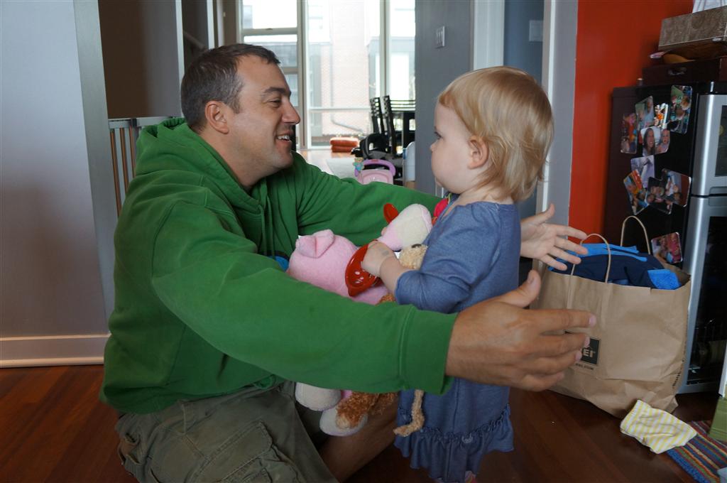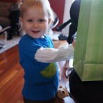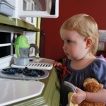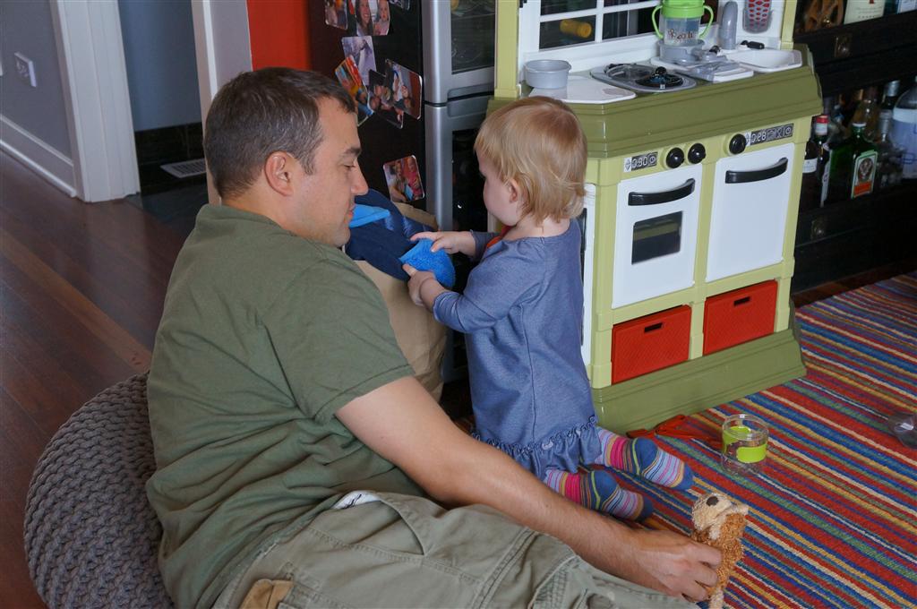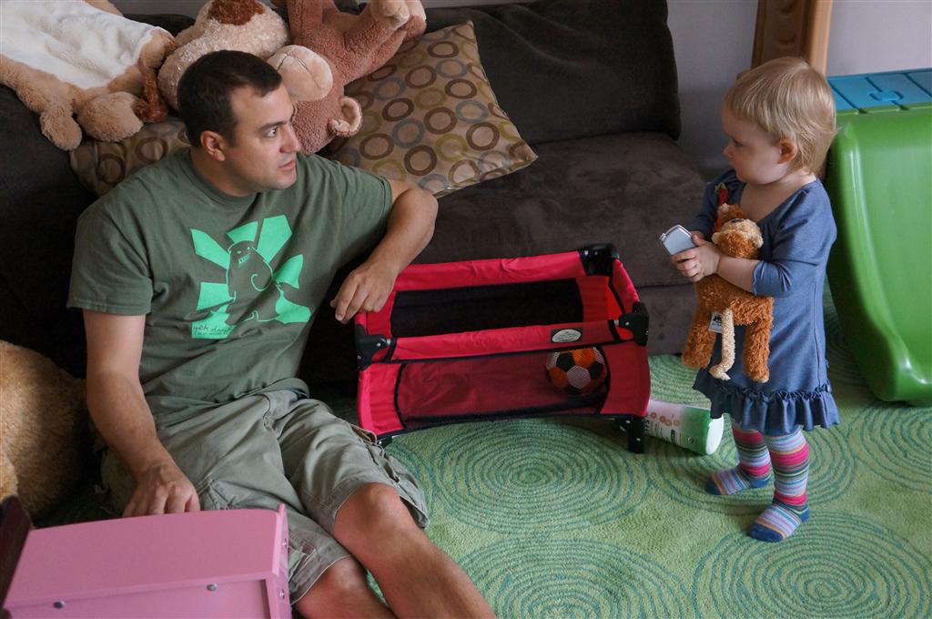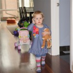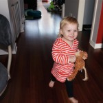 Eleanor learned a new word this week with the warm weather – shorts. She even used it in a partial sentence, “No shorts, pants.” Turns out that she prefers pants over shorts. Eleanor watched me scold the cat while she was scratching one of Eleanor’s toys, and now Eleanor will chase the cat around pointing and saying “No No No”. On Sunday we had our first preview of the “terrible twos” as Eleanor had a meltdown over nothing that lasted the entire walk home from the park. A random stranger passing us on a bike stopped to turn around and comment about Eleanor’s crying.
