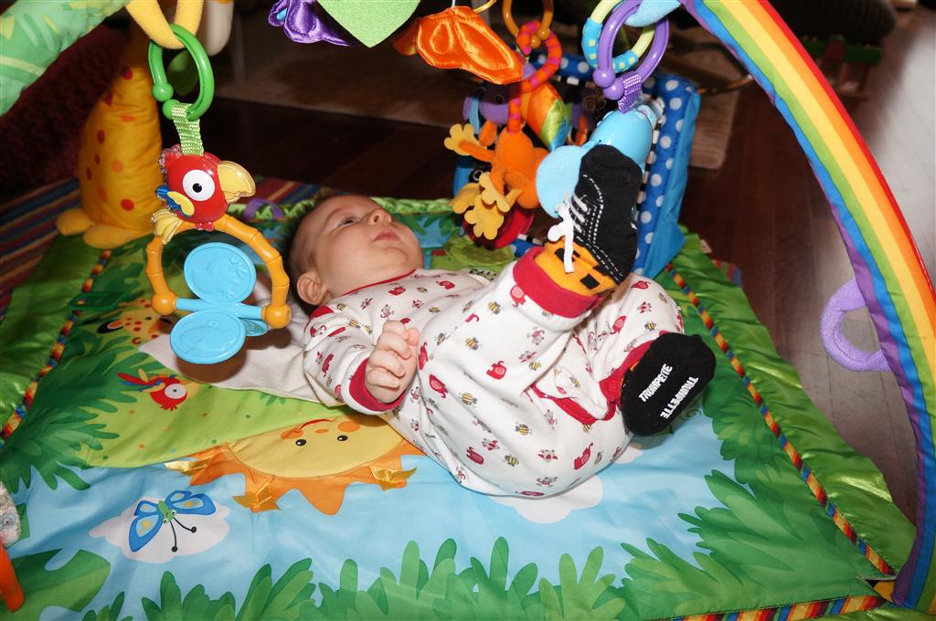 Henry has increased his smiling even more this week, flashing big ear to ear grins, as well as making some more happy noises. I’m betting on a giggle any day now. He is also getting a bit better at tummy time, he has started to push with his legs, and on Sunday he managed to lift his whole body off the ground between his toes and his head.