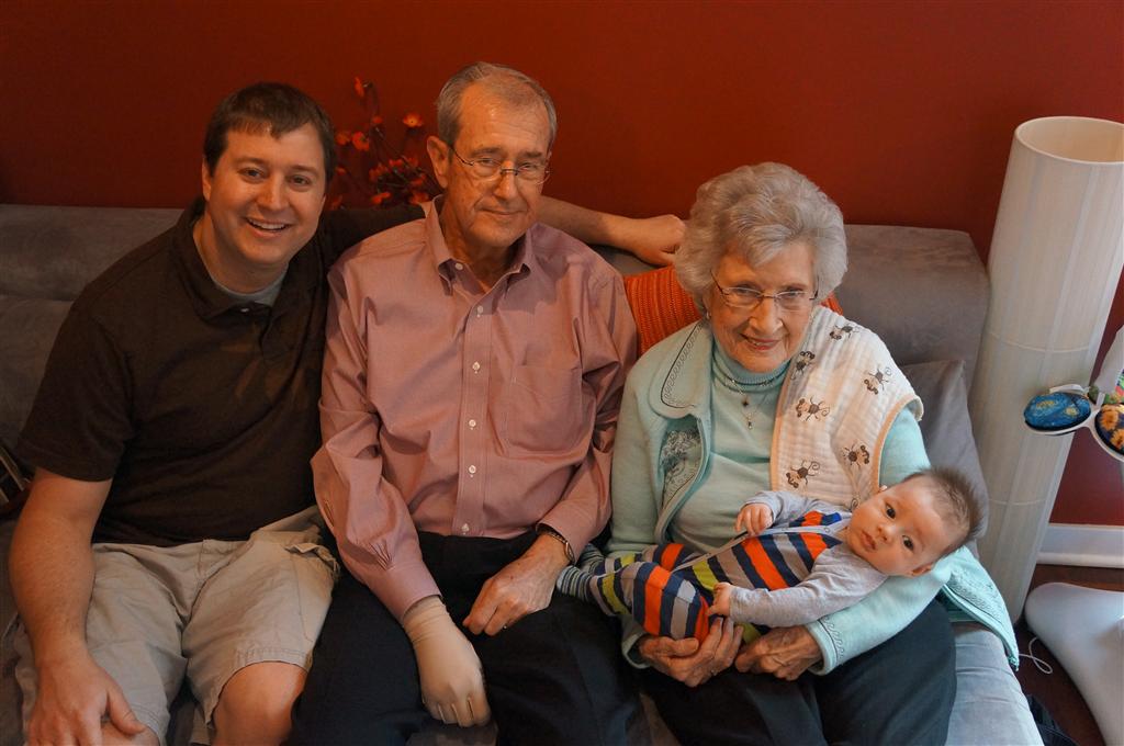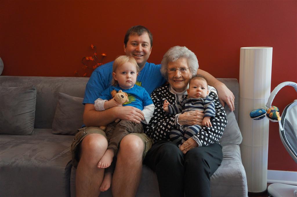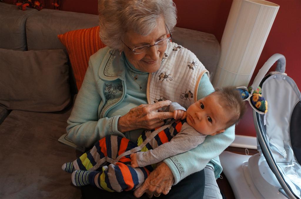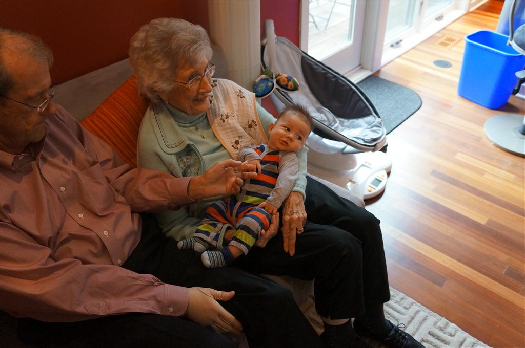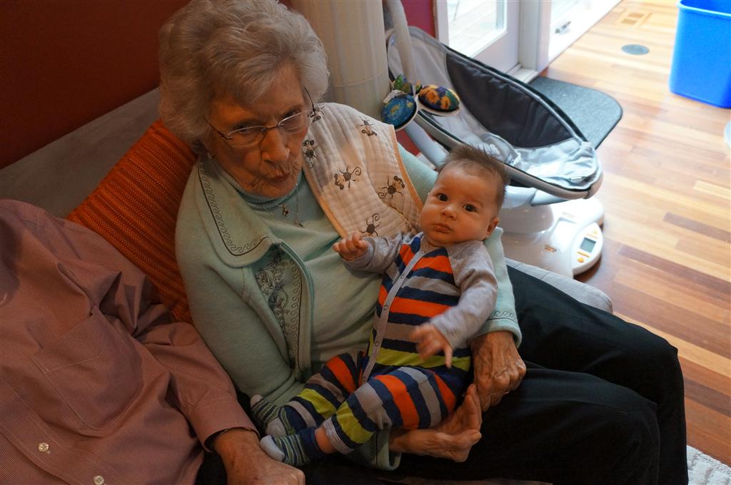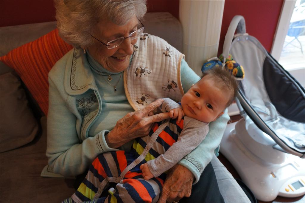 Henry got to meet Great Grandma this week, as she came in for a visit with Grandma and Grandpa! We had lots of fun during their visit, and took a few photos as well! Great Grandma got lots of Henry time, he was quite content hanging out in her lap. Eleanor wasn’t quite as certain, and gave Great Grandma a few of her patented blank stares :)