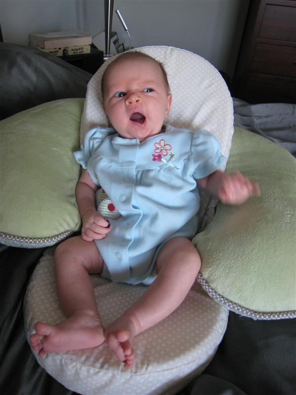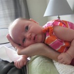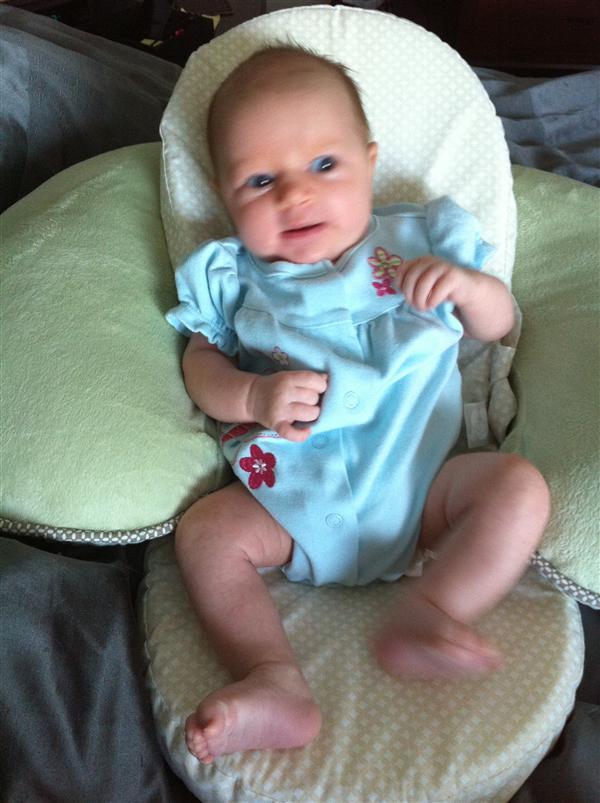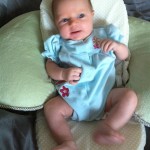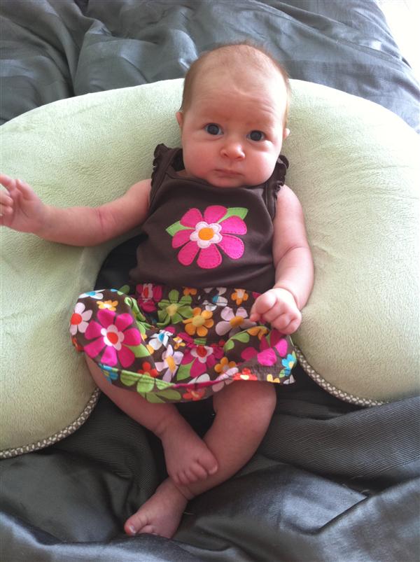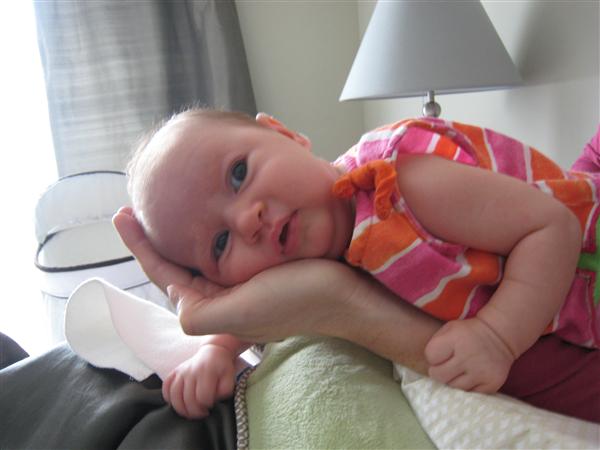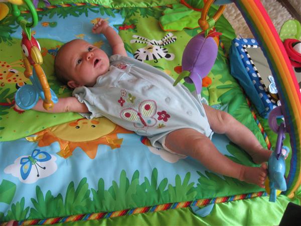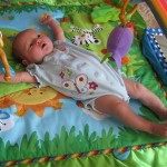 Eleanor had lots of fun this week on her playmat, kicking and swatting up a storm, and even giving Mom a few smiles. She also seems to love hanging out on her changing pad. Not sure why, but we do get lots of good smiles and dancing there.
