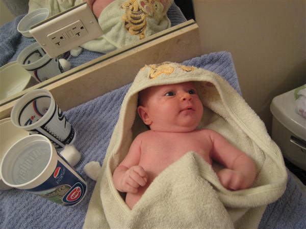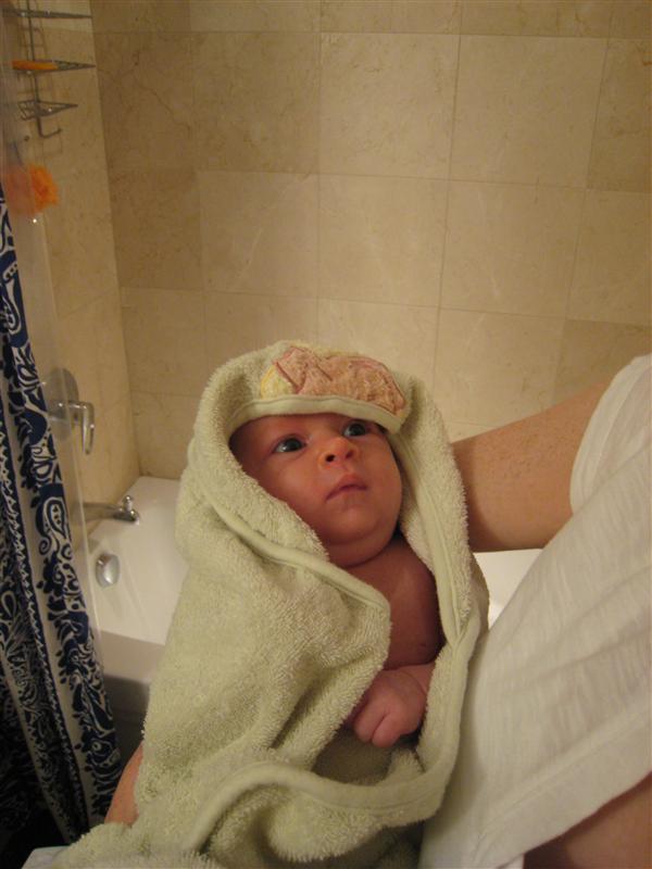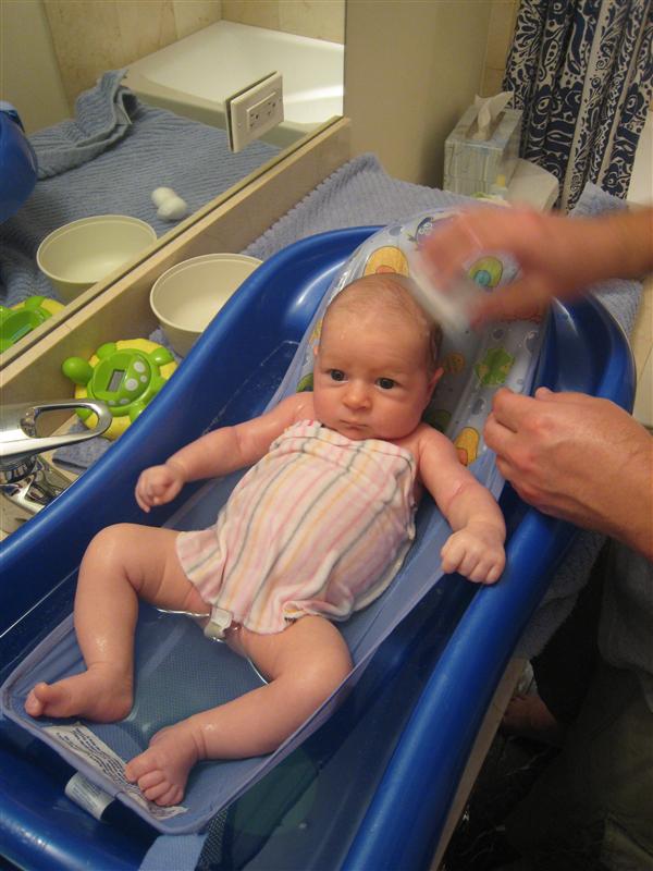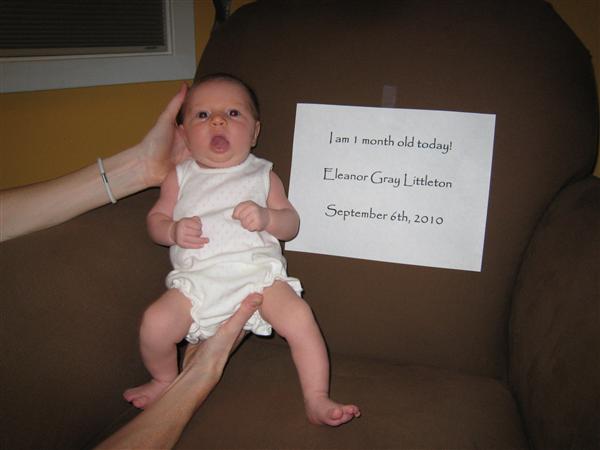 Eleanor turned one month old this week, and we celebrated with a Labor Day cookout. Brian, Breanne, Sarah, Jay and Laura all came over with tons of food, and Jay cooked it all up. Yummy! We also had some self portraits, and a bath. How about that for a celebration!