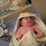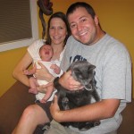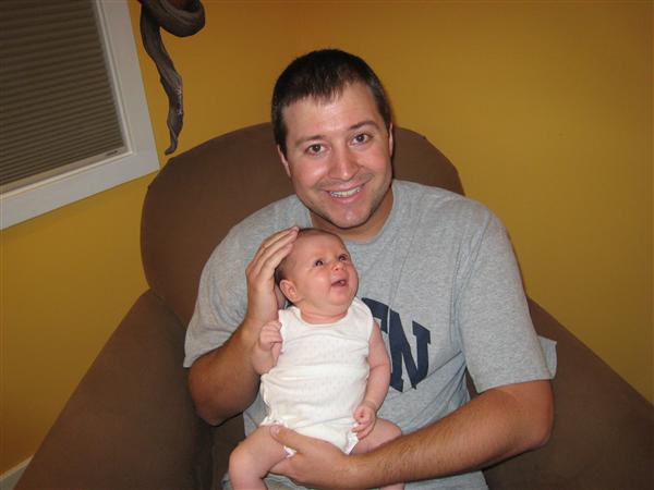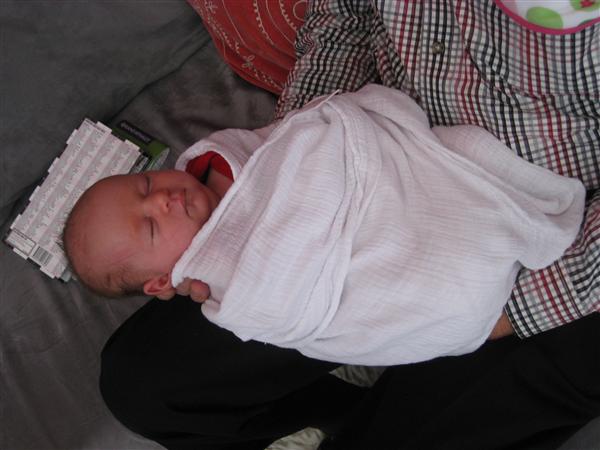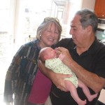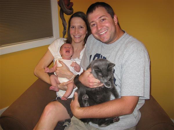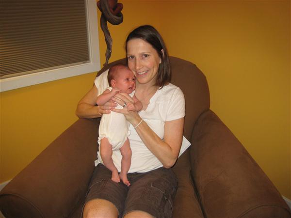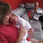 Cousins Paula, Tom and Chris stopped in to meet Eleanor for the first time. Unfortunately, she was a bit fussy and needed the pacifier for the photos. The good news is that apparently 6 weeks of age is the peak of fussiness for most babies – and it is clear sailing from then on (until the terrible twos, that is). I’ll let you know how that works out.