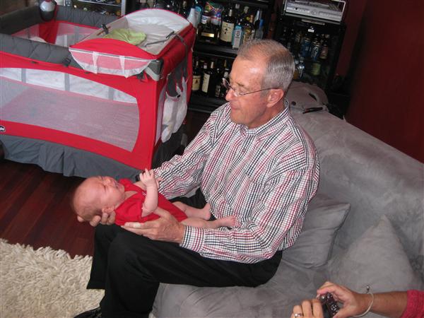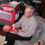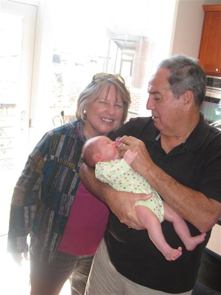 Grandma and Grandpa Littleton stopped by for a quick visit, Grandpa was in town for a golf tournament, which went well. As for the visit, he reported “Eleanor cried when I held her, I went to see Zapatita and she hissed at me. Amy was fine though”. One for three isn’t bad.