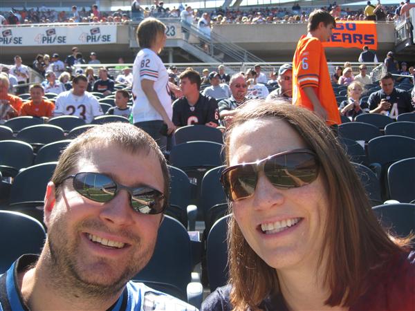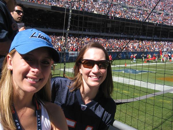 Our biggest first this week was Aunt Lary’s first time babysitting alone. Amy and I went to the Lions game (or Bears game, depending on who you ask) and Lary and Eleanor had a good five hours of bonding time. Highlights included lots of napping, two bottle feedings and one soiled changing pad cover. The game, you ask? Hmmm, I can’t remember who won….but this one time, at a Lions Bears game in 2005, I met this girl…