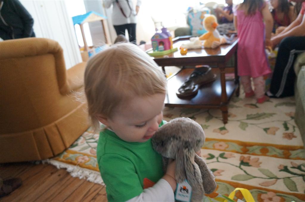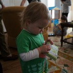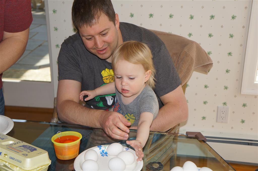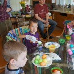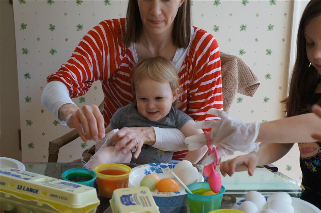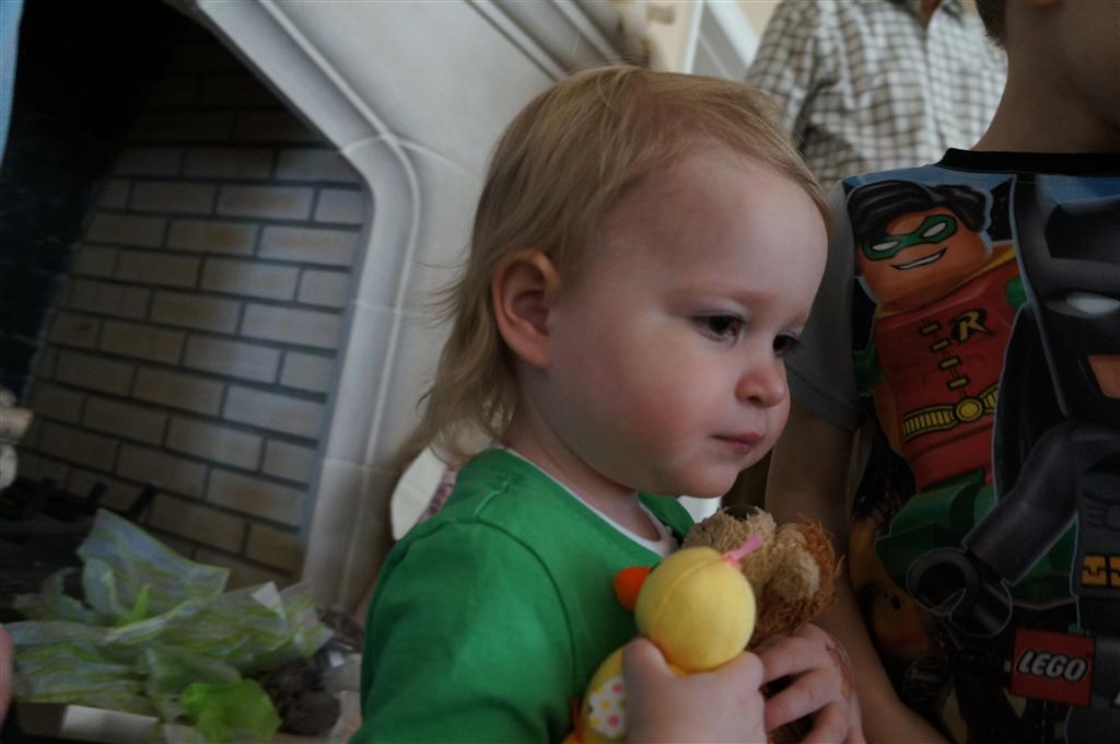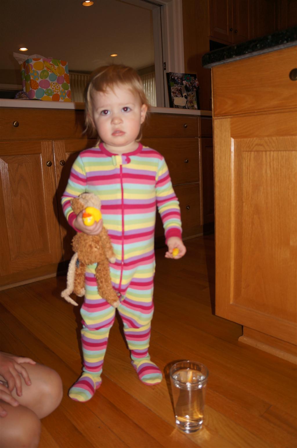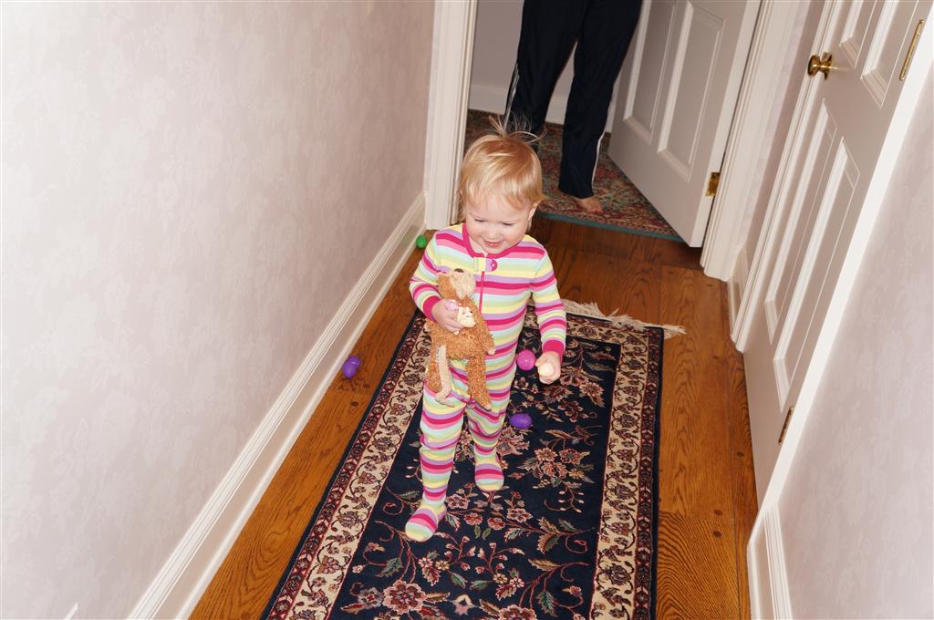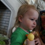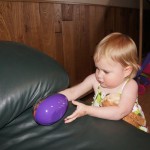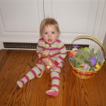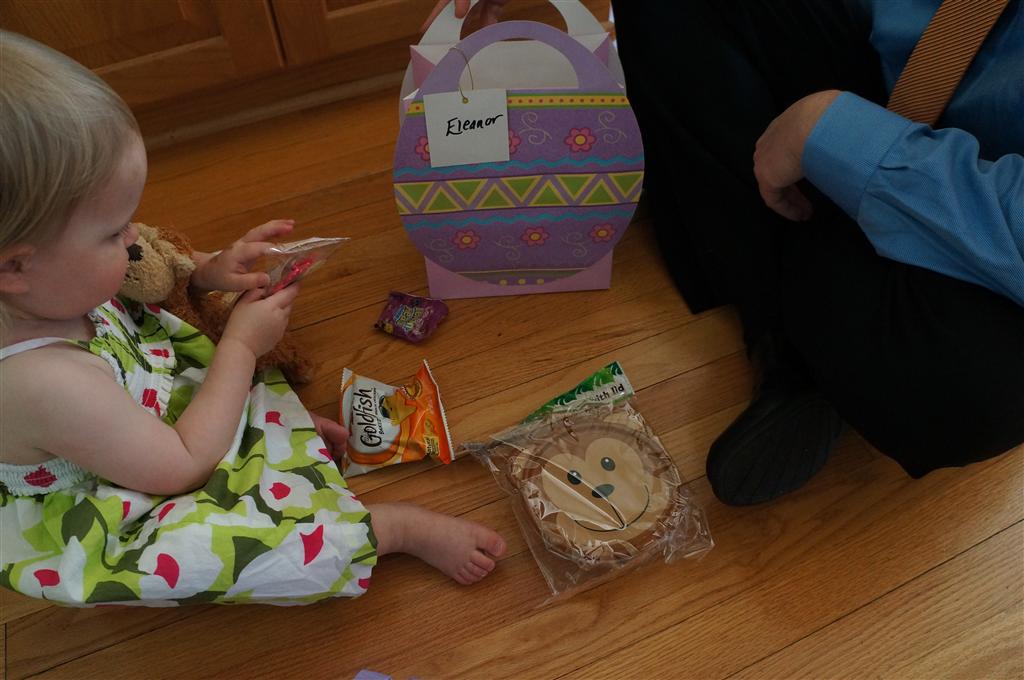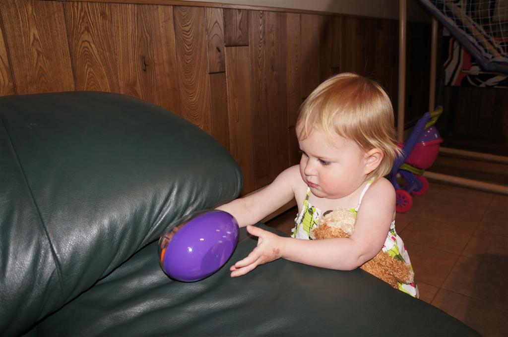 Eleanor definitely got a kick out of the easter fun – she gave quite a giggle upon seeing the trail of plastic eggs leading to her basket, and definitely liked all of stuffed chicks and bunnies. She didn’t quite get the idea of the easter egg hunt, but did enjoy helping to dye the eggs. She had lots of fun playing hide and seek with Jack, and Mackenzie taught her all about makeup and tea parties. Ben showed her some tricks with the train set and encouraged her to say some new words. Eleanor is starting to use more words together, and add syllables to some of her existing half-words. She now says “El No” for herself, rather than just “El”, and has a number of two syllable words in her vocabulary now.