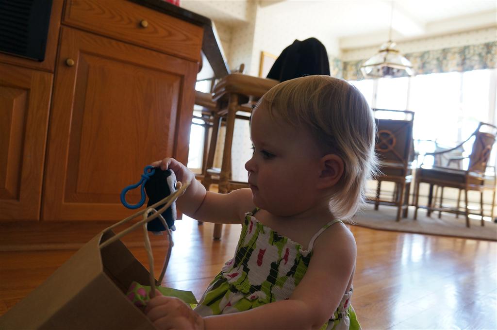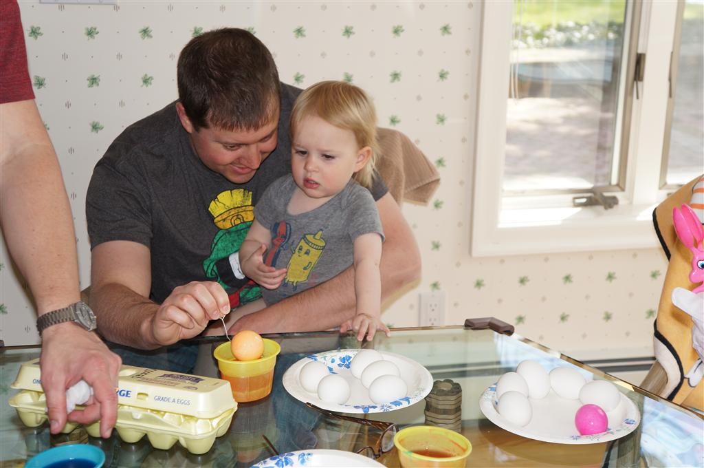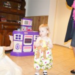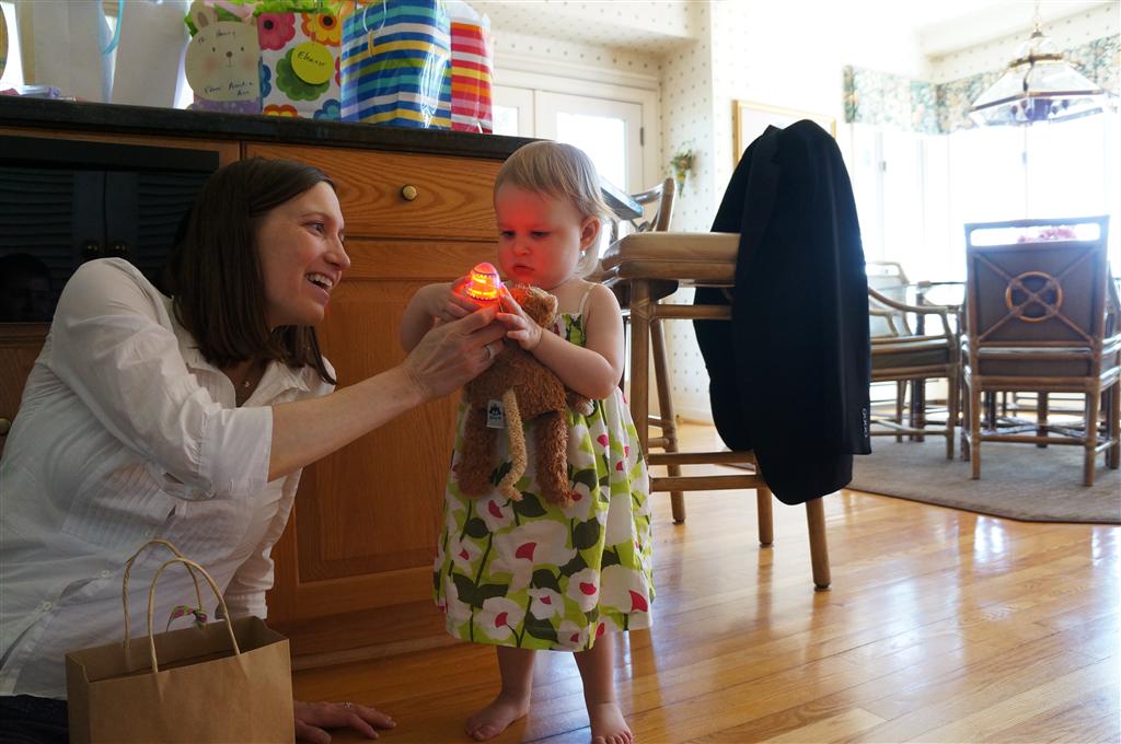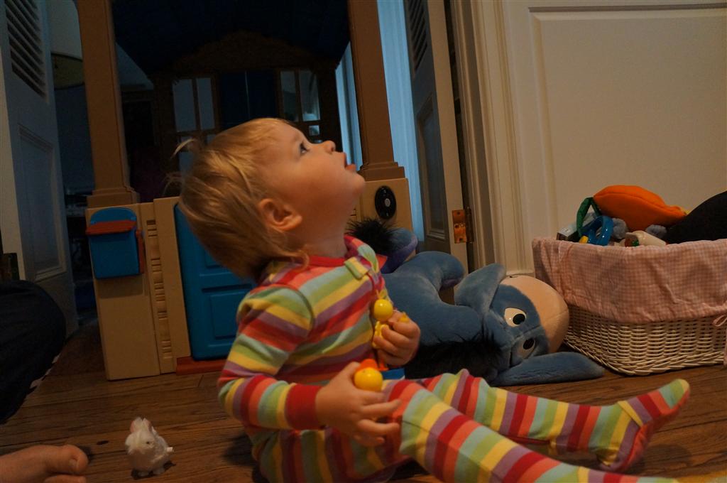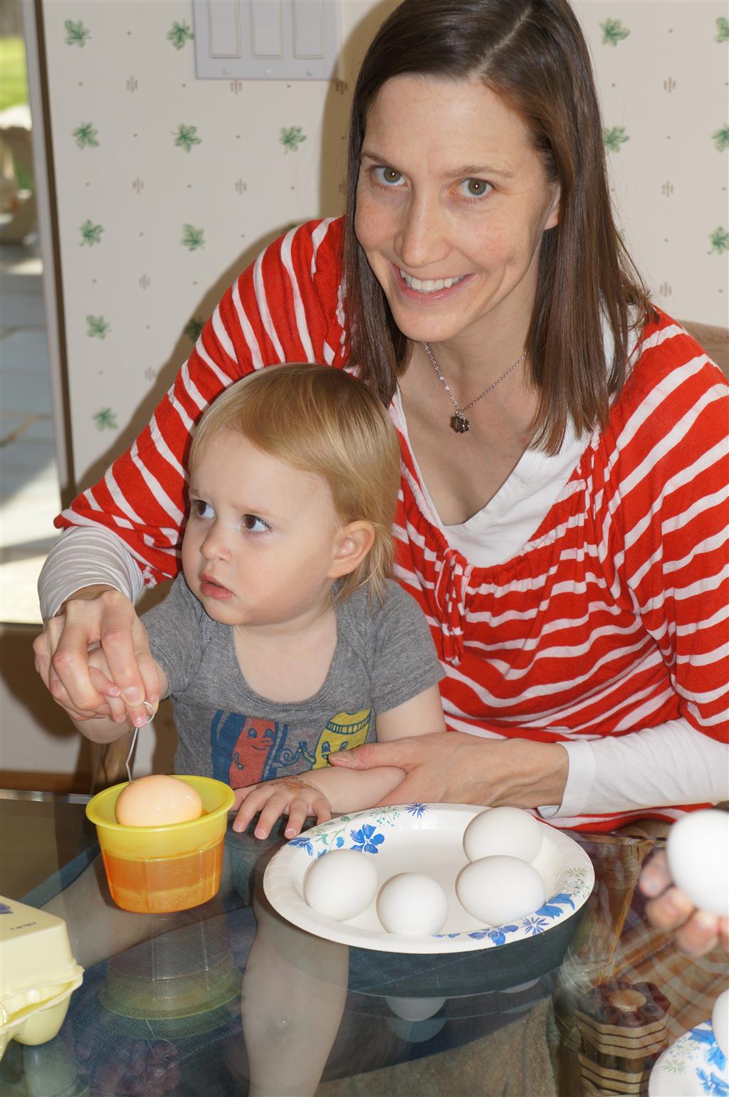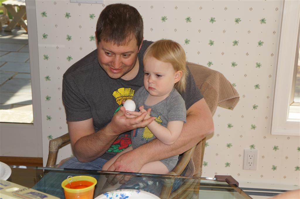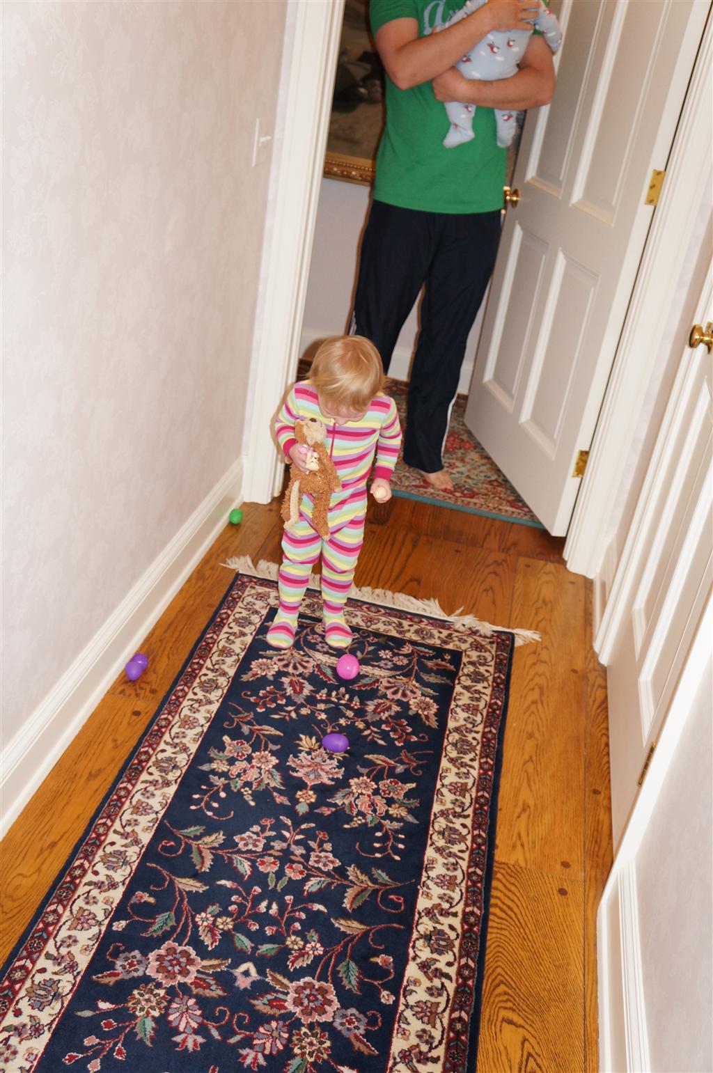 Eleanor definitely got a kick out of the easter fun – she gave quite a giggle upon seeing the trail of plastic eggs leading to her basket, and definitely liked all of stuffed chicks and bunnies. She didn’t quite get the idea of the easter egg hunt, but did enjoy helping to dye the eggs. She had lots of fun playing hide and seek with Jack, and Mackenzie taught her all about makeup and tea parties. Ben showed her some tricks with the train set and encouraged her to say some new words. Eleanor is starting to use more words together, and add syllables to some of her existing half-words. She now says “El No” for herself, rather than just “El”, and has a number of two syllable words in her vocabulary now.