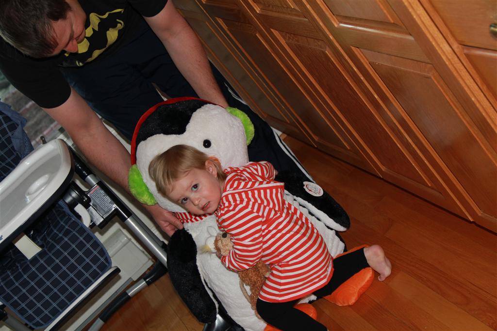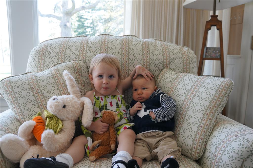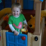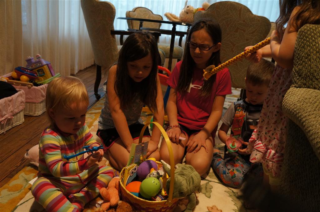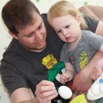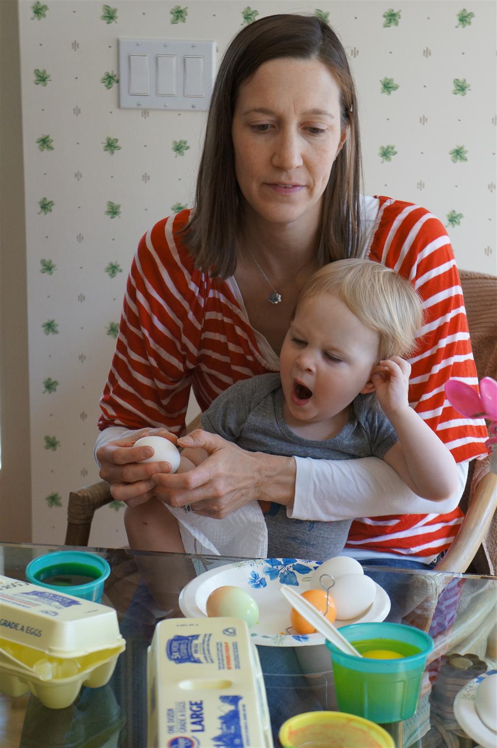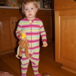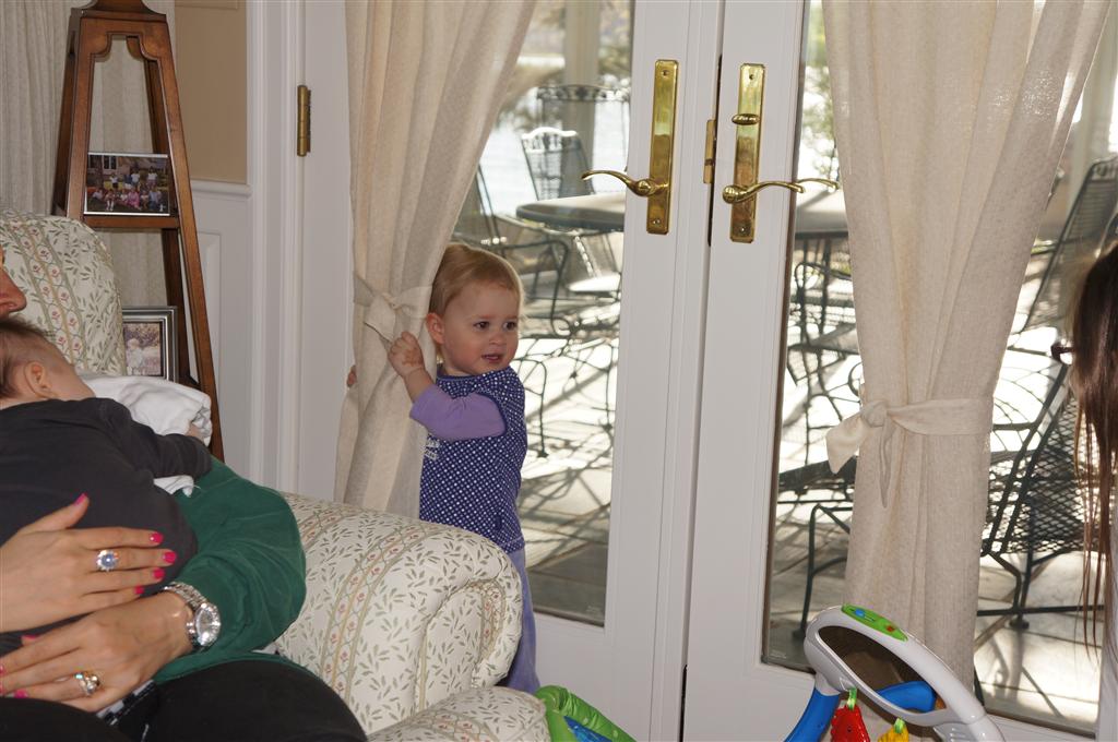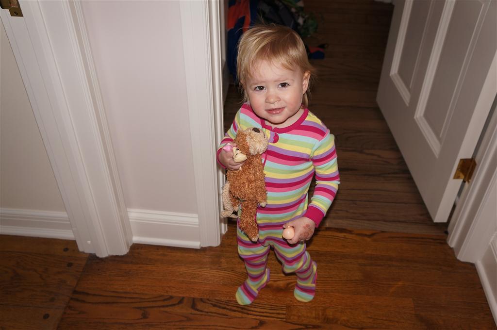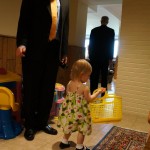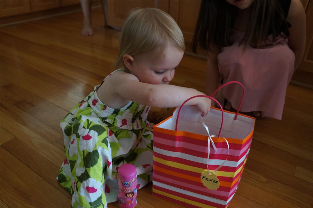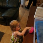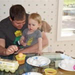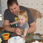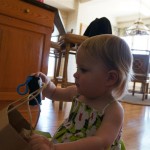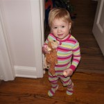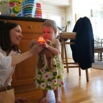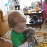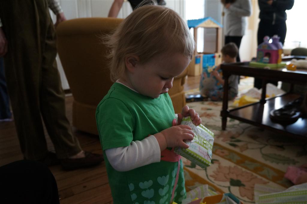 Eleanor definitely got a kick out of the easter fun – she gave quite a giggle upon seeing the trail of plastic eggs leading to her basket, and definitely liked all of stuffed chicks and bunnies. She didn’t quite get the idea of the easter egg hunt, but did enjoy helping to dye the eggs. She had lots of fun playing hide and seek with Jack, and Mackenzie taught her all about makeup and tea parties. Ben showed her some tricks with the train set and encouraged her to say some new words. Eleanor is starting to use more words together, and add syllables to some of her existing half-words. She now says “El No” for herself, rather than just “El”, and has a number of two syllable words in her vocabulary now.