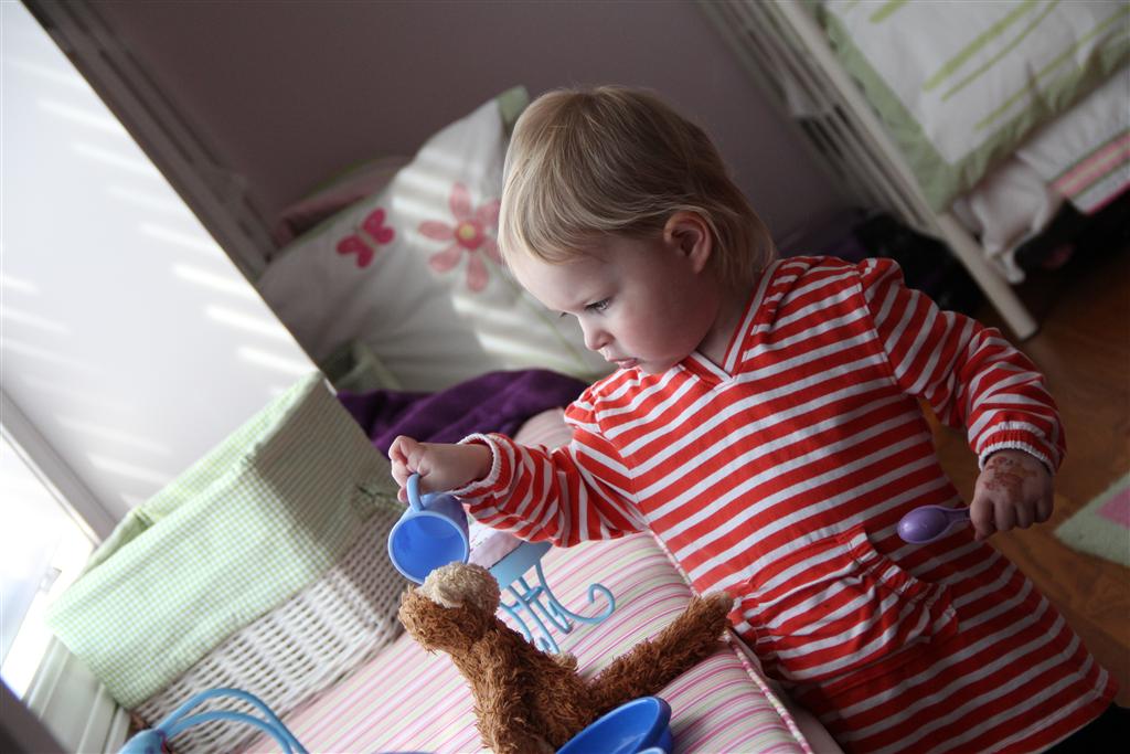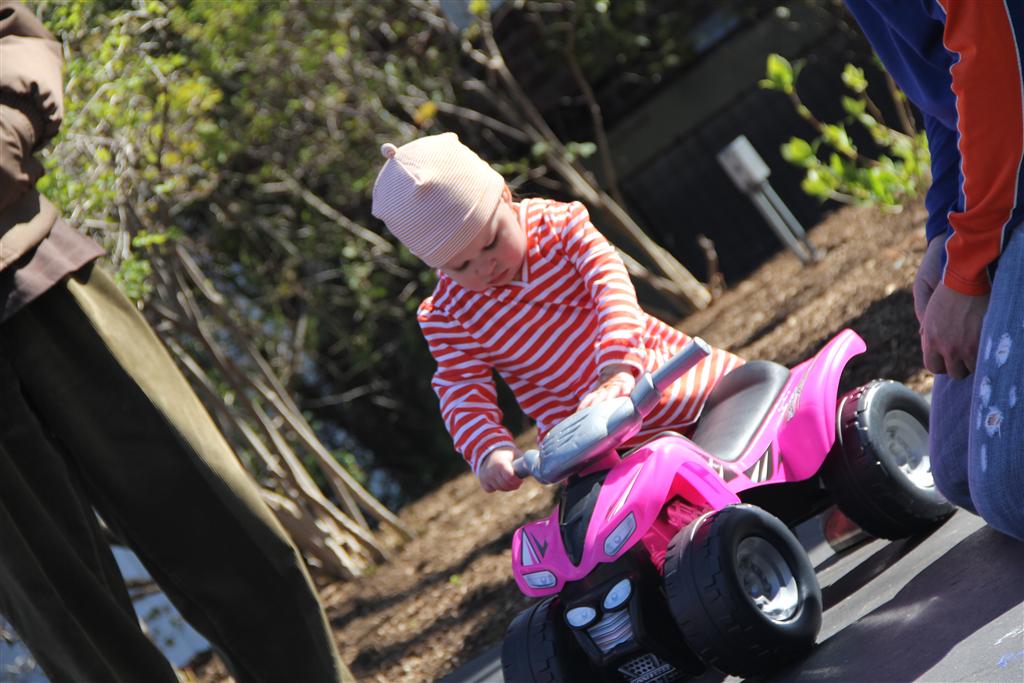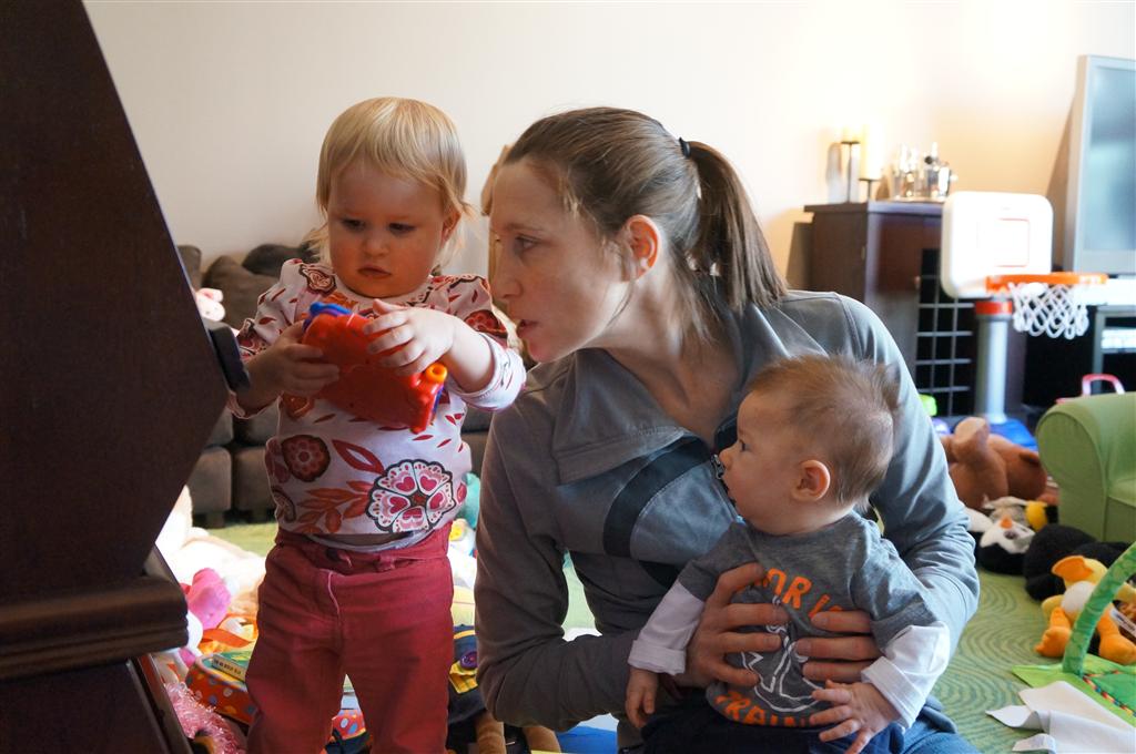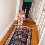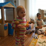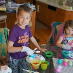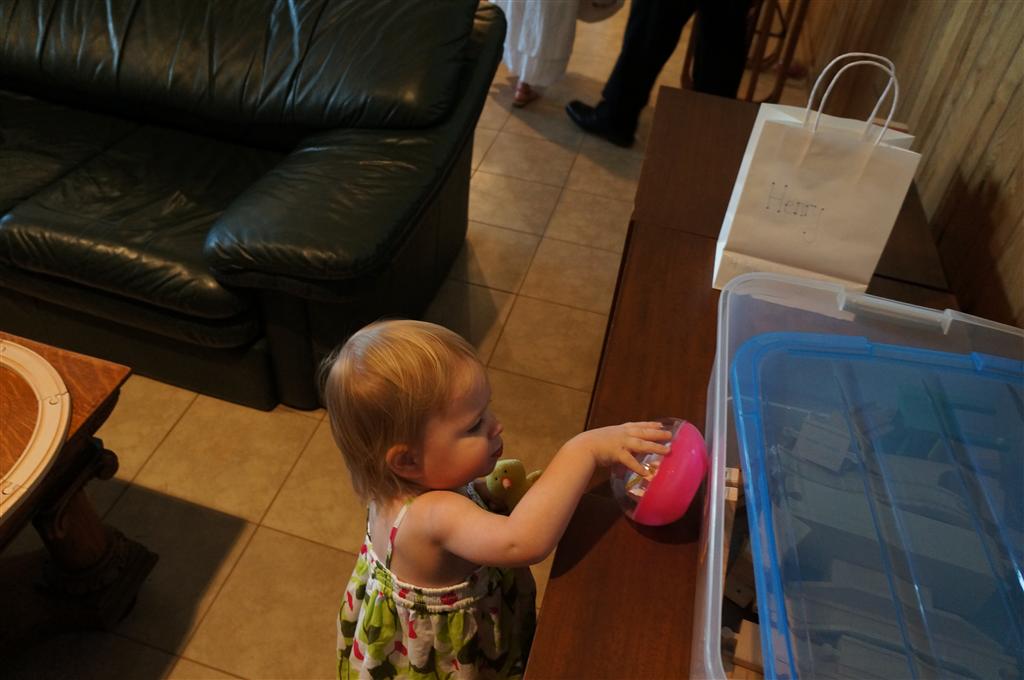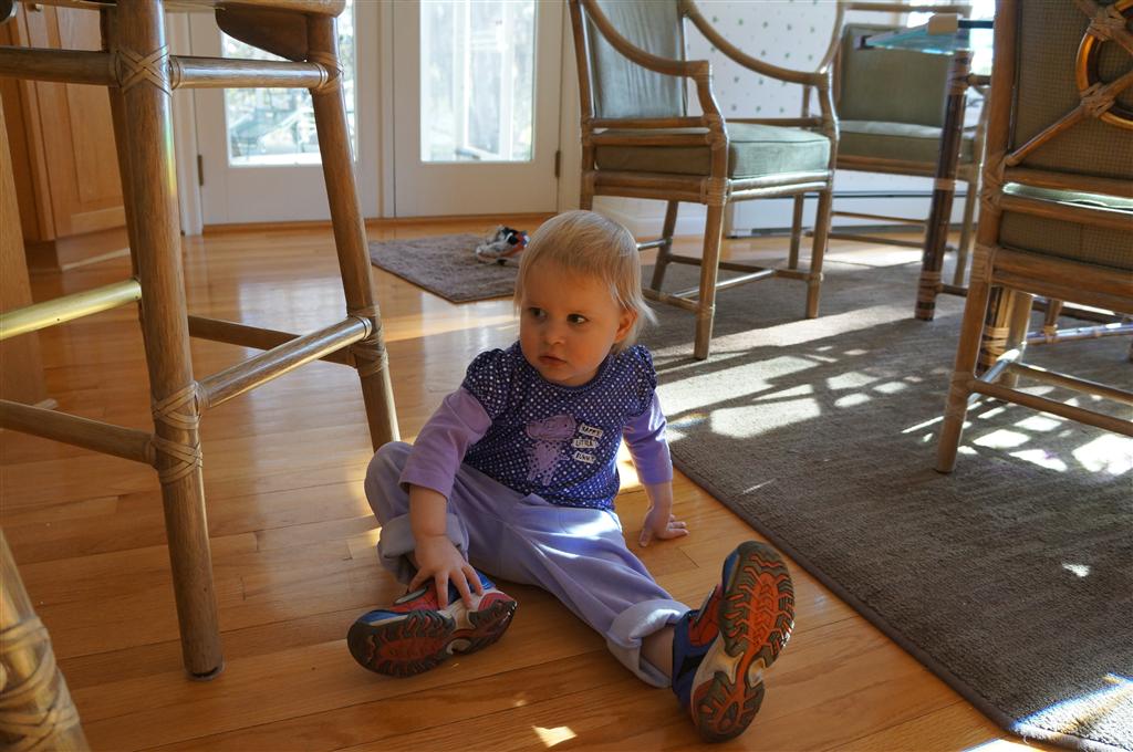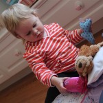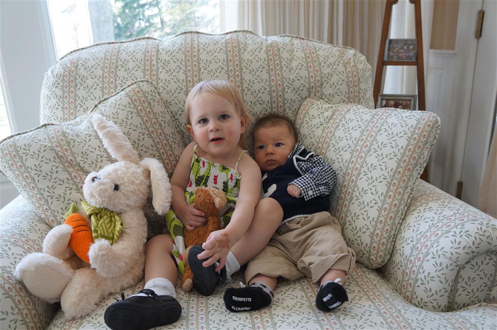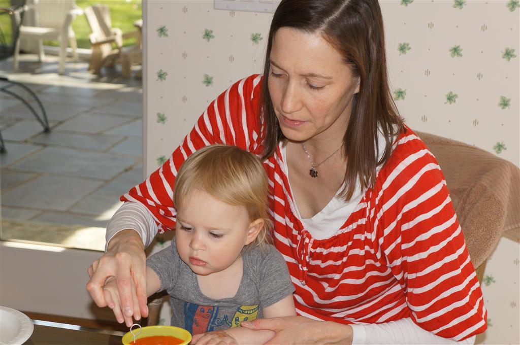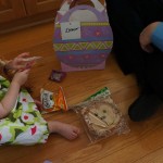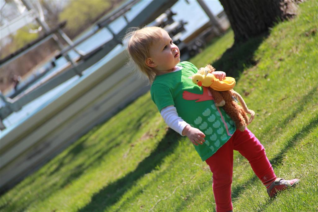 Eleanor definitely got a kick out of the easter fun – she gave quite a giggle upon seeing the trail of plastic eggs leading to her basket, and definitely liked all of stuffed chicks and bunnies. She didn’t quite get the idea of the easter egg hunt, but did enjoy helping to dye the eggs. She had lots of fun playing hide and seek with Jack, and Mackenzie taught her all about makeup and tea parties. Ben showed her some tricks with the train set and encouraged her to say some new words. Eleanor is starting to use more words together, and add syllables to some of her existing half-words. She now says “El No” for herself, rather than just “El”, and has a number of two syllable words in her vocabulary now.
