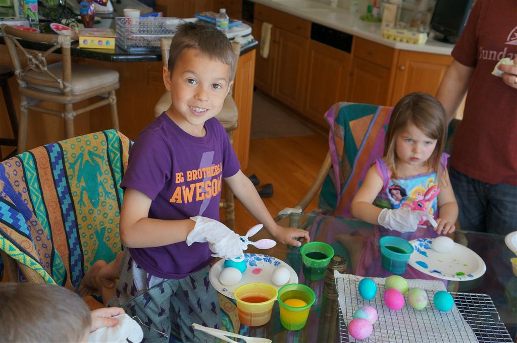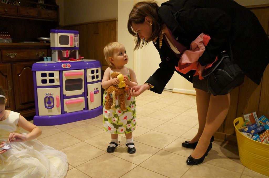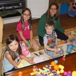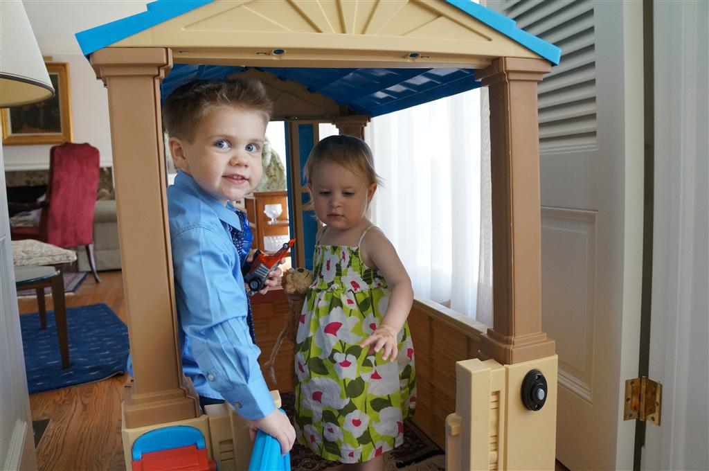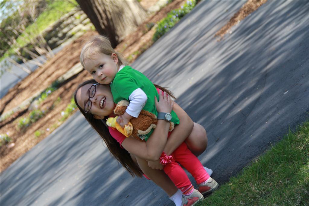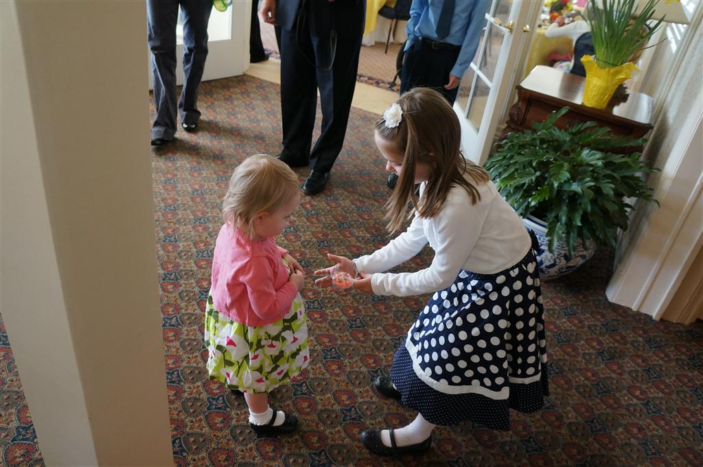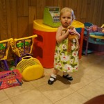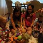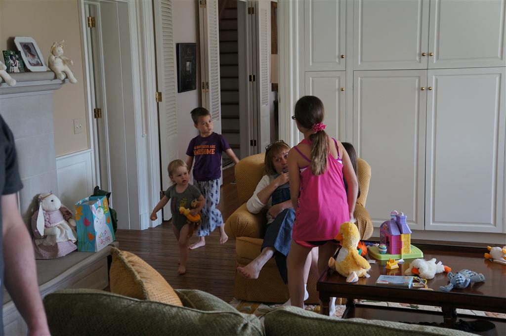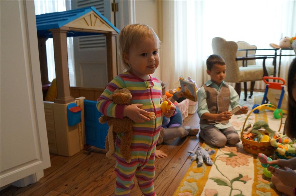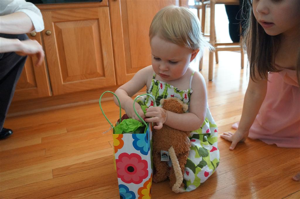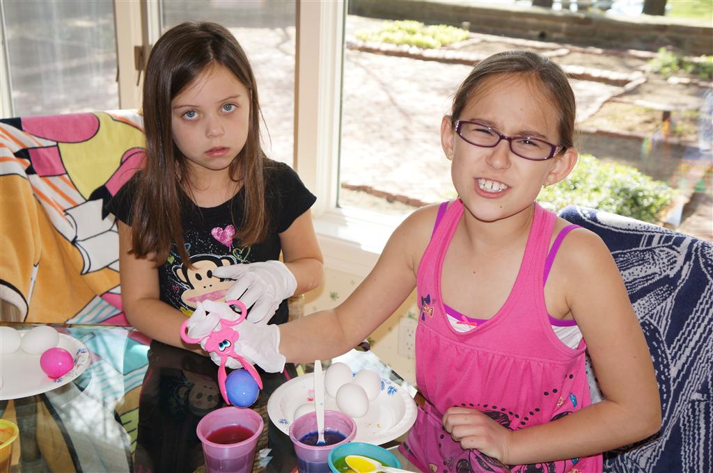 Eleanor definitely got a kick out of the easter fun – she gave quite a giggle upon seeing the trail of plastic eggs leading to her basket, and definitely liked all of stuffed chicks and bunnies. She didn’t quite get the idea of the easter egg hunt, but did enjoy helping to dye the eggs. She had lots of fun playing hide and seek with Jack, and Mackenzie taught her all about makeup and tea parties. Ben showed her some tricks with the train set and encouraged her to say some new words. Eleanor is starting to use more words together, and add syllables to some of her existing half-words. She now says “El No” for herself, rather than just “El”, and has a number of two syllable words in her vocabulary now.