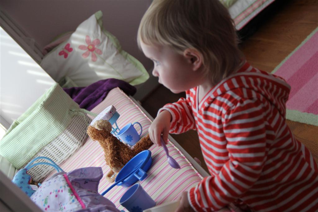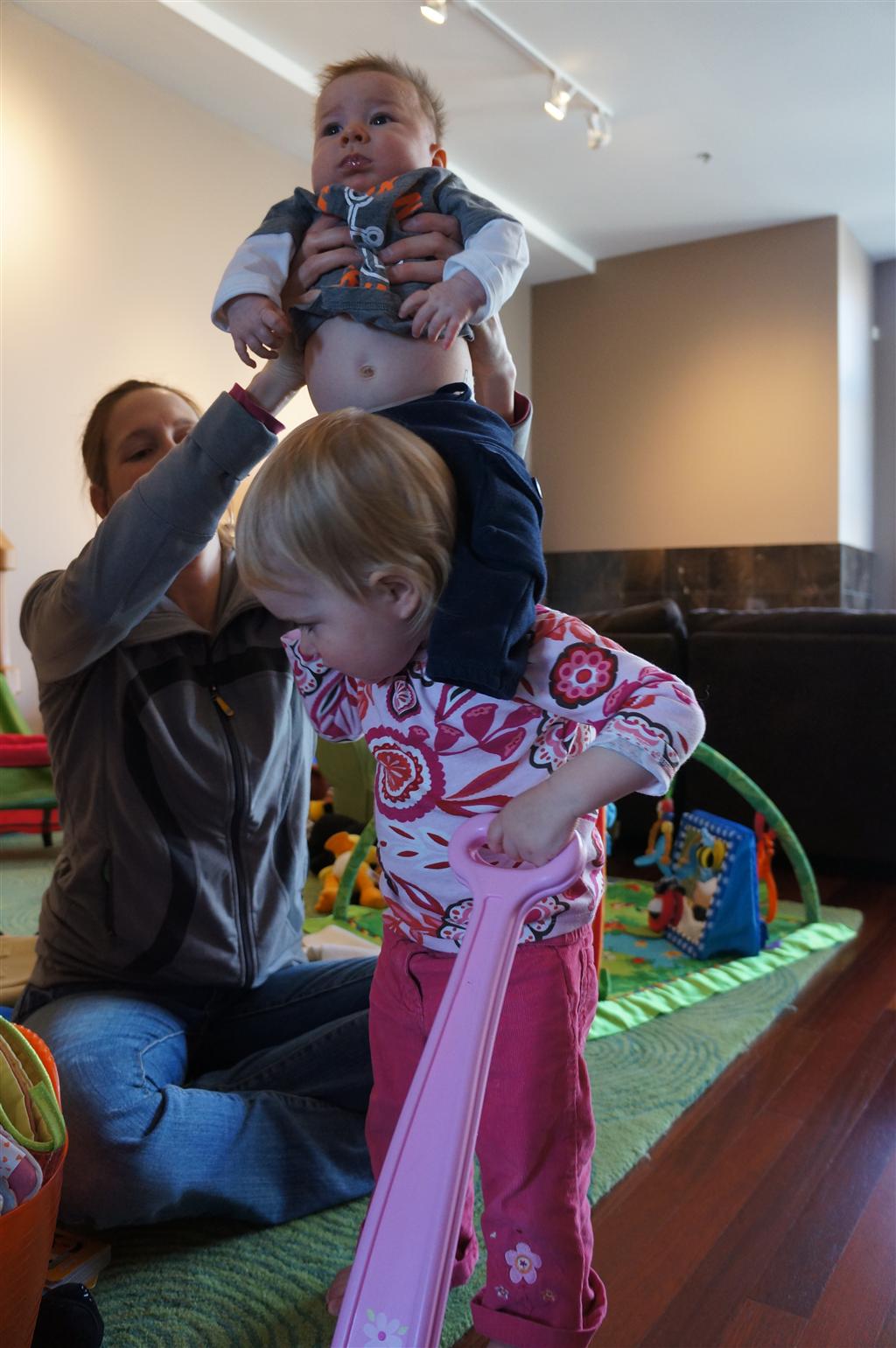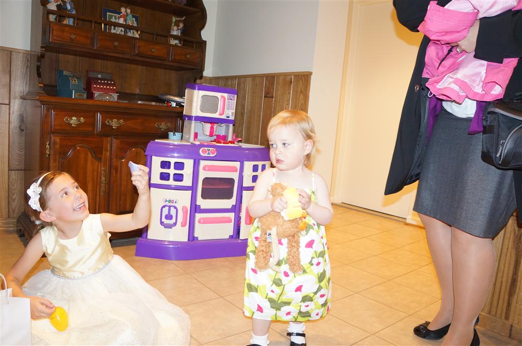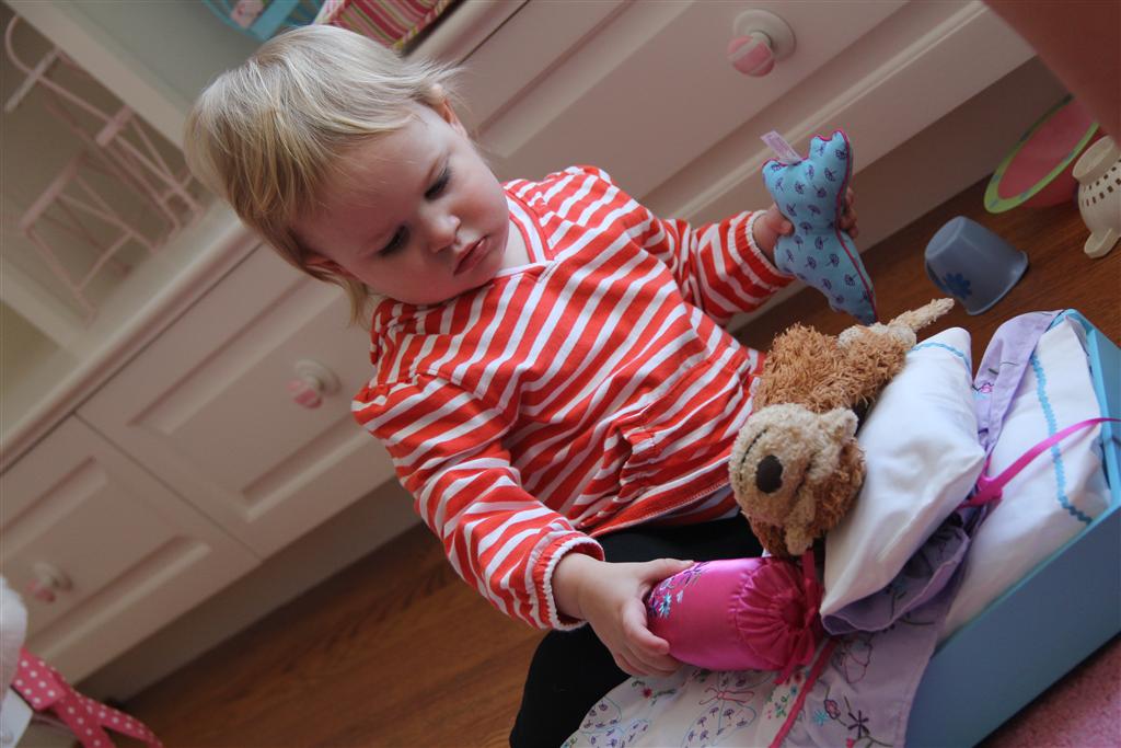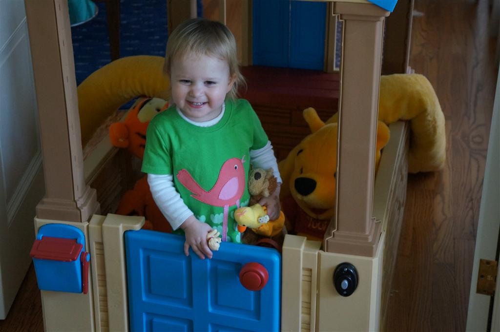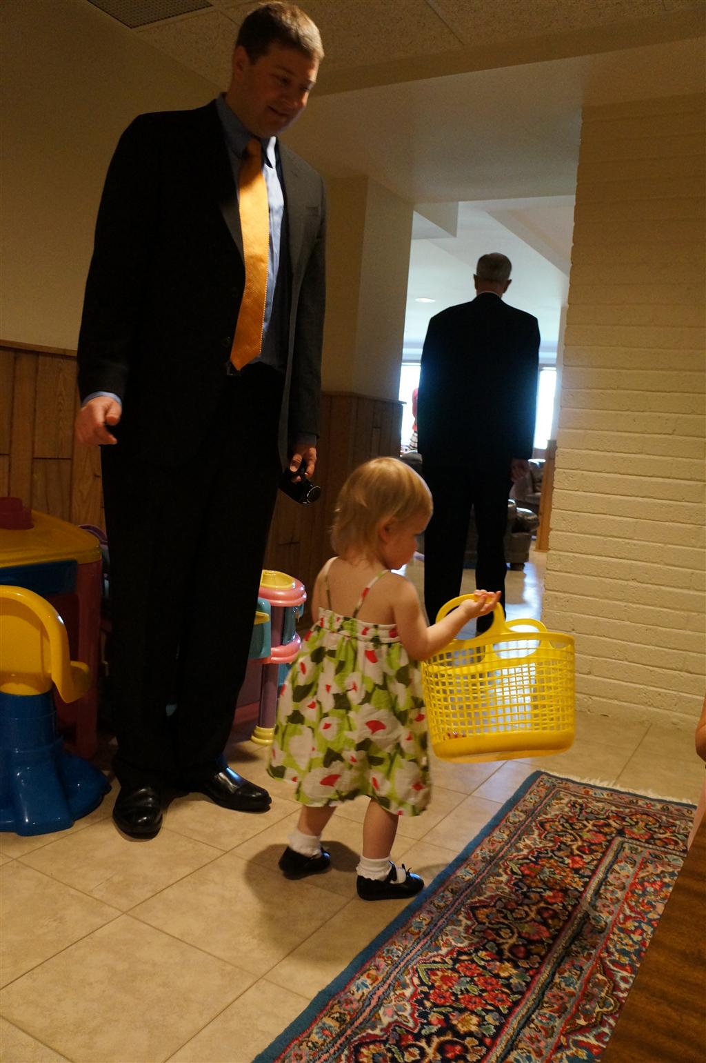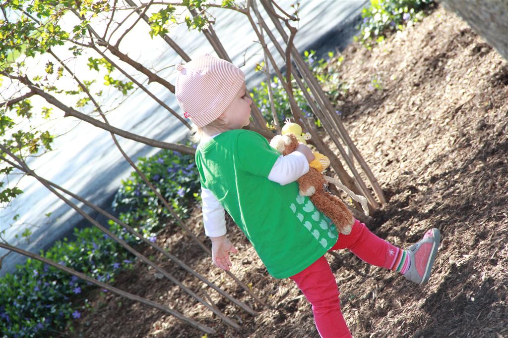 Eleanor definitely got a kick out of the easter fun – she gave quite a giggle upon seeing the trail of plastic eggs leading to her basket, and definitely liked all of stuffed chicks and bunnies. She didn’t quite get the idea of the easter egg hunt, but did enjoy helping to dye the eggs. She had lots of fun playing hide and seek with Jack, and Mackenzie taught her all about makeup and tea parties. Ben showed her some tricks with the train set and encouraged her to say some new words. Eleanor is starting to use more words together, and add syllables to some of her existing half-words. She now says “El No” for herself, rather than just “El”, and has a number of two syllable words in her vocabulary now.