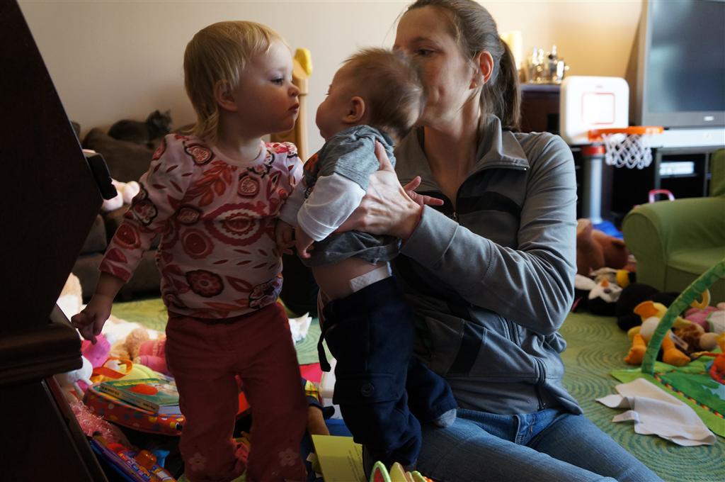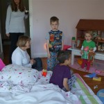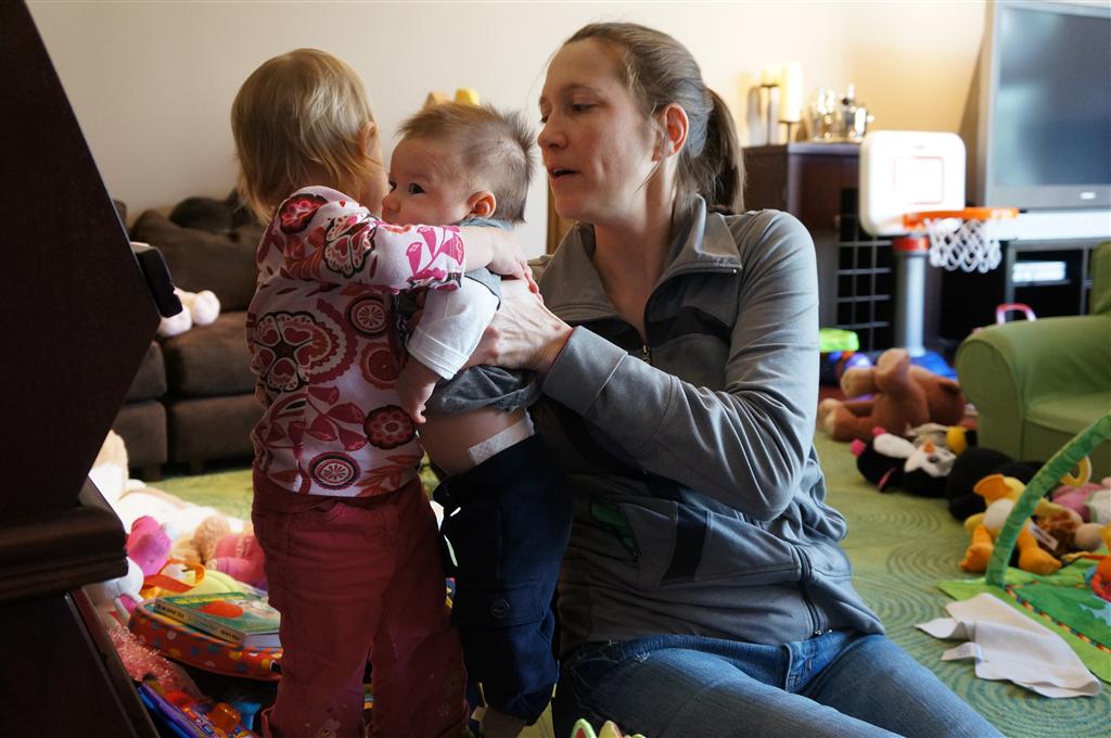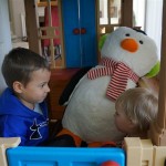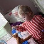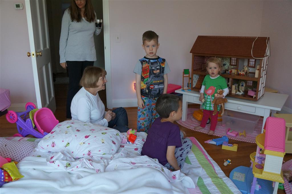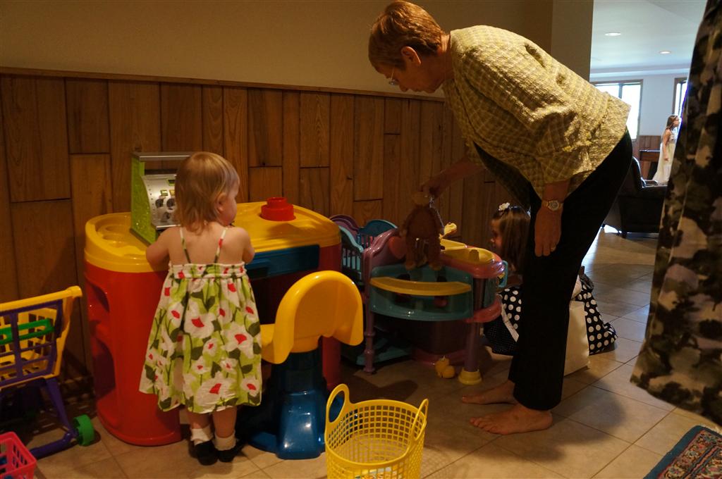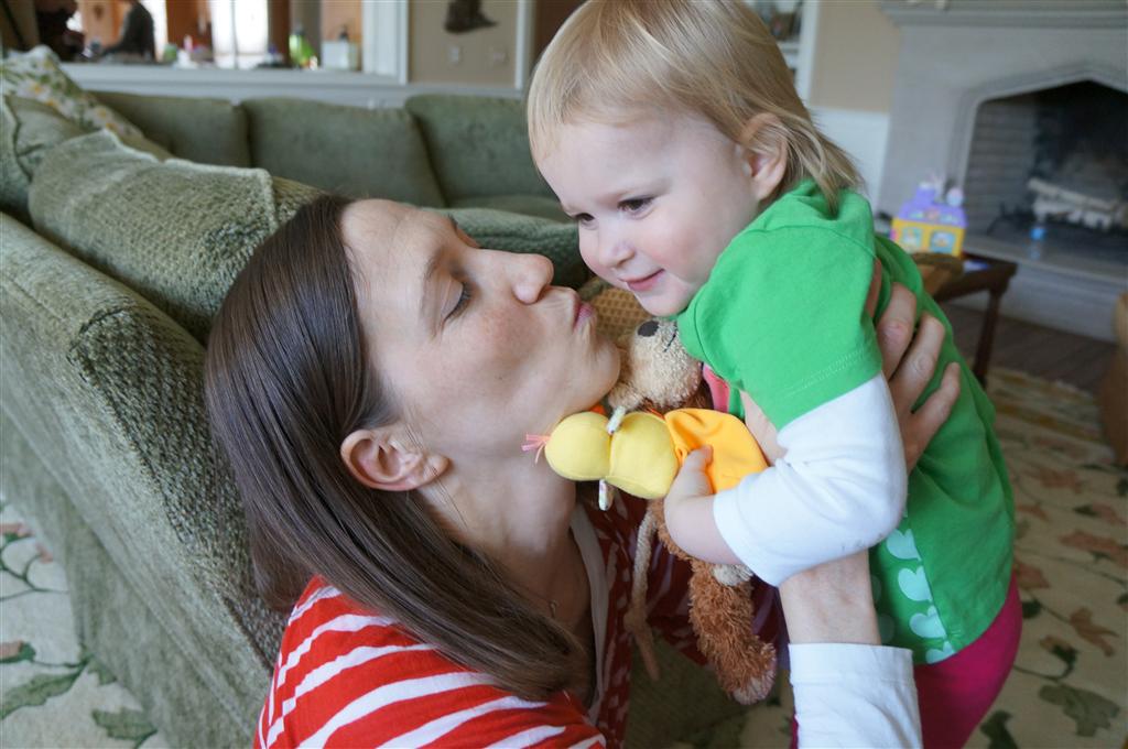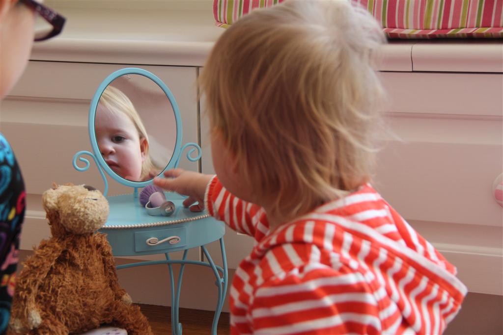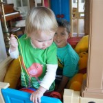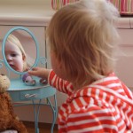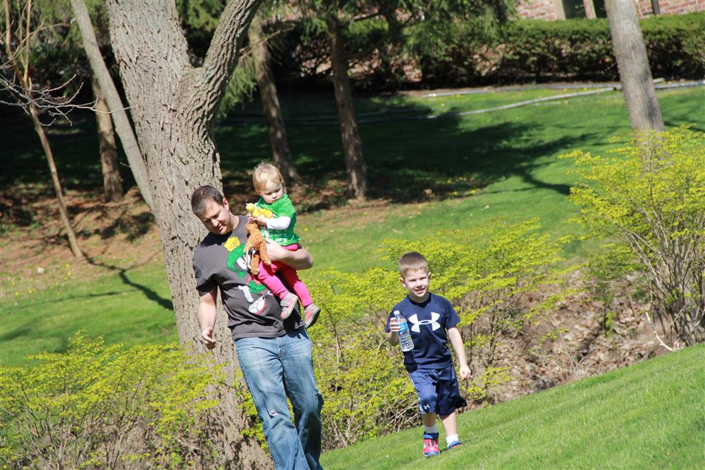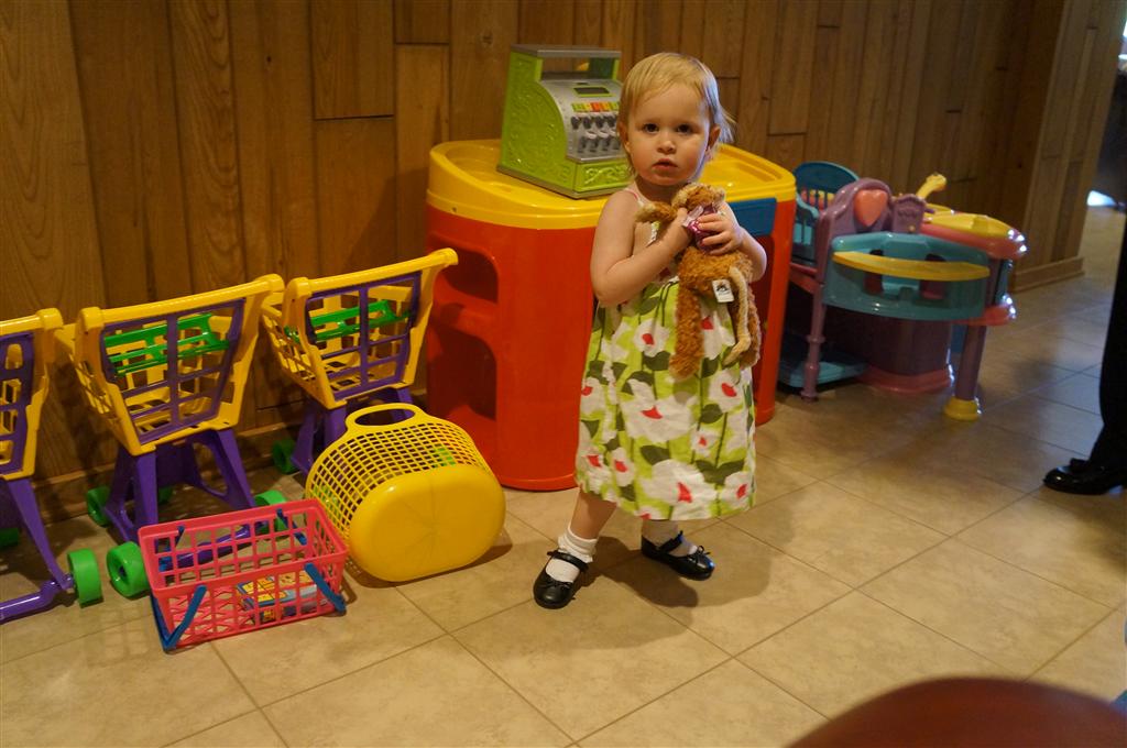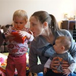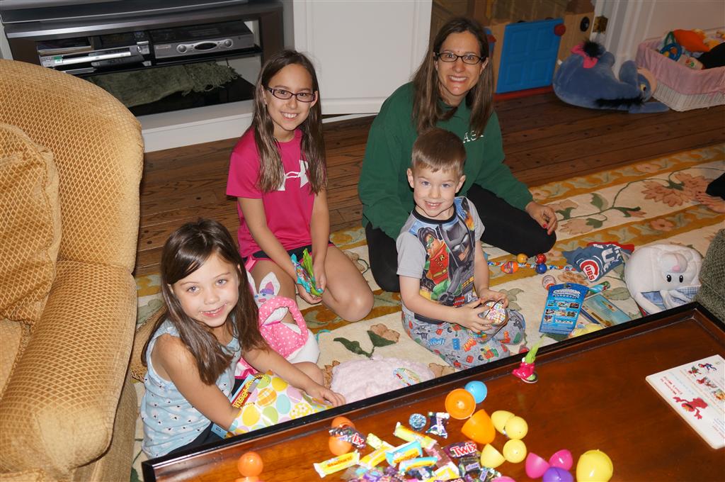 Eleanor definitely got a kick out of the easter fun – she gave quite a giggle upon seeing the trail of plastic eggs leading to her basket, and definitely liked all of stuffed chicks and bunnies. She didn’t quite get the idea of the easter egg hunt, but did enjoy helping to dye the eggs. She had lots of fun playing hide and seek with Jack, and Mackenzie taught her all about makeup and tea parties. Ben showed her some tricks with the train set and encouraged her to say some new words. Eleanor is starting to use more words together, and add syllables to some of her existing half-words. She now says “El No” for herself, rather than just “El”, and has a number of two syllable words in her vocabulary now.