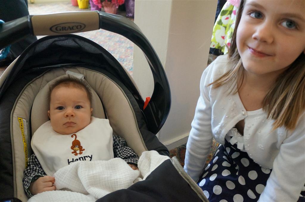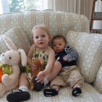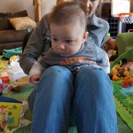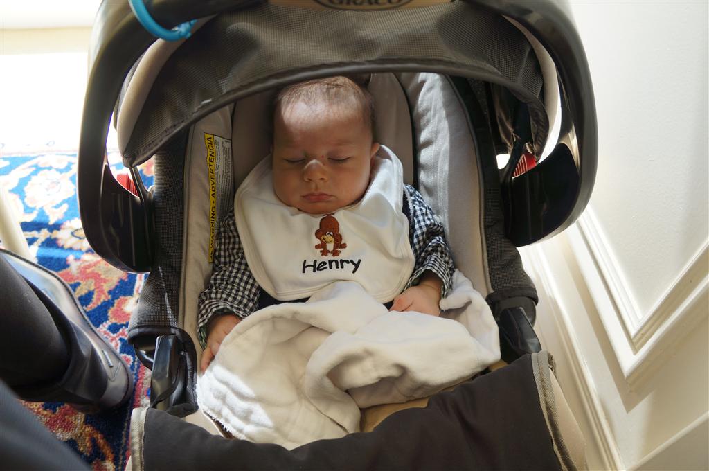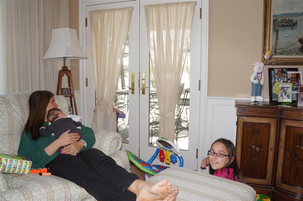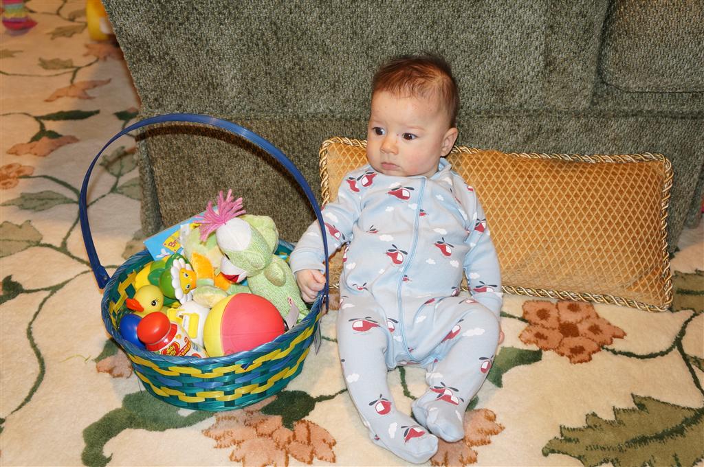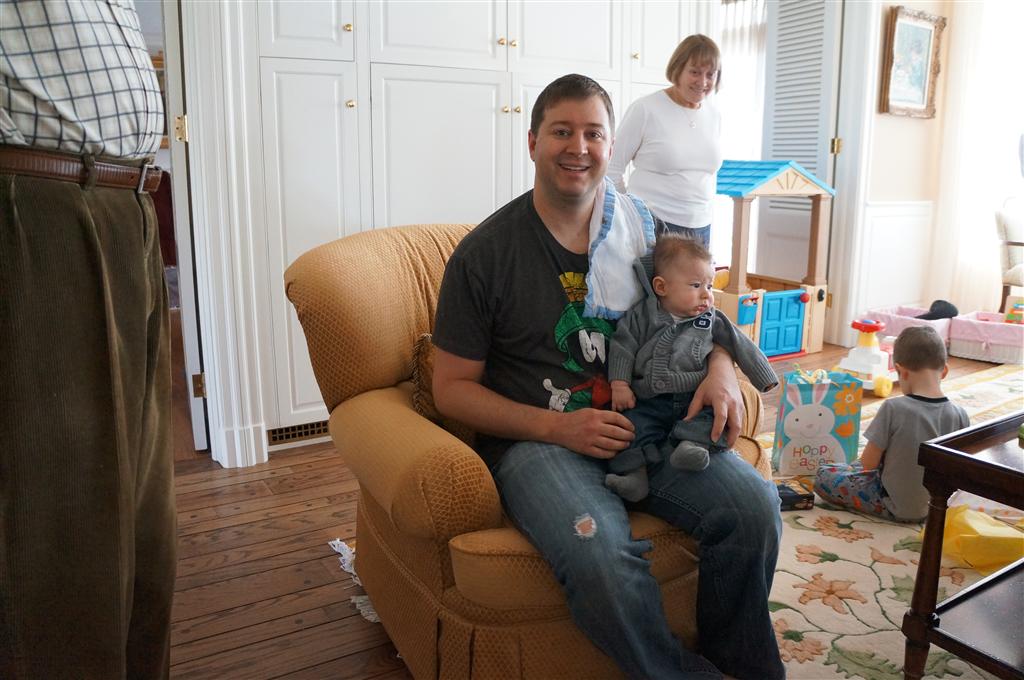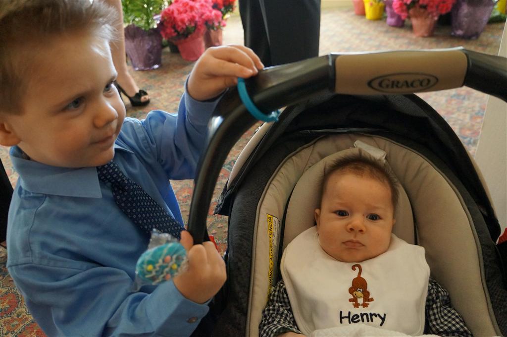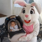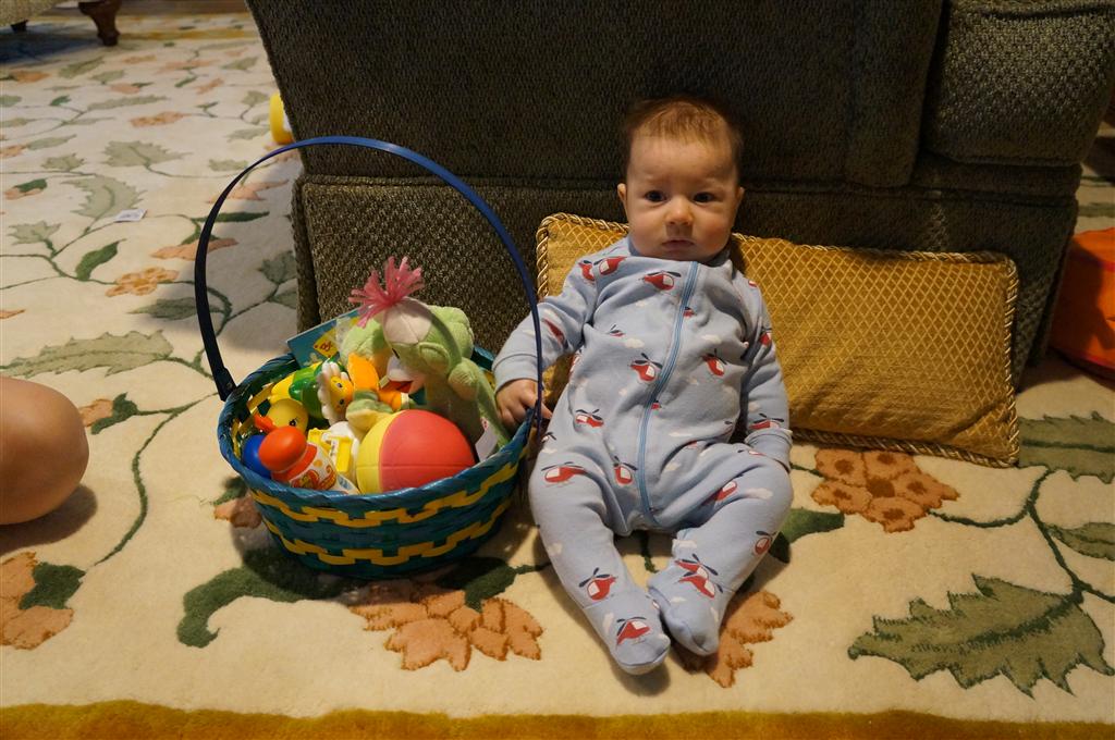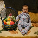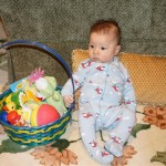 Henry celebrated his first Easter this week with his first trip to Grandma and Grandpa’s house. He was a champ during the car rides, sleeping pretty much the whole time both ways. His naptimes, however, were not as good. The only solid naps that he took all weekend were on Grandma’s lap. He had lots of fun meeting more family members and being oohed and ahhed over by adults and kiddos alike. All that excitement still didn’t product our first giggle – but he sure seemed awfully close a few times!