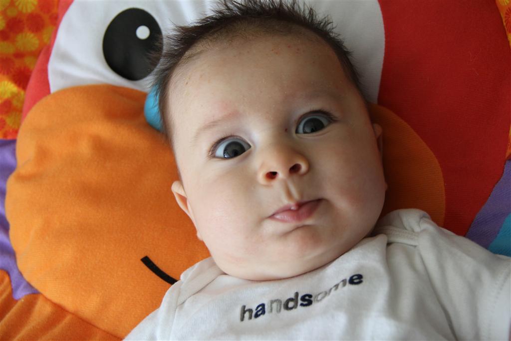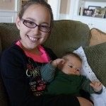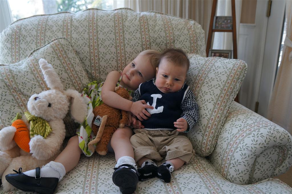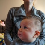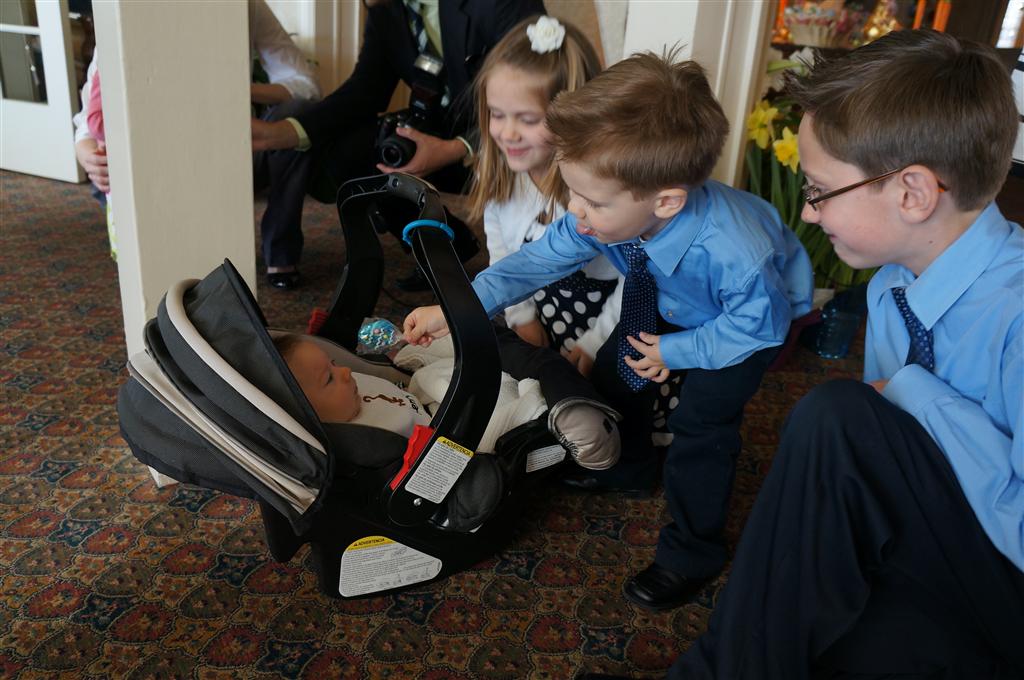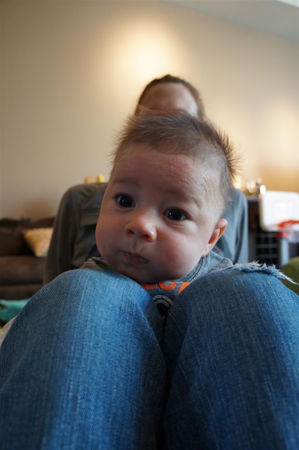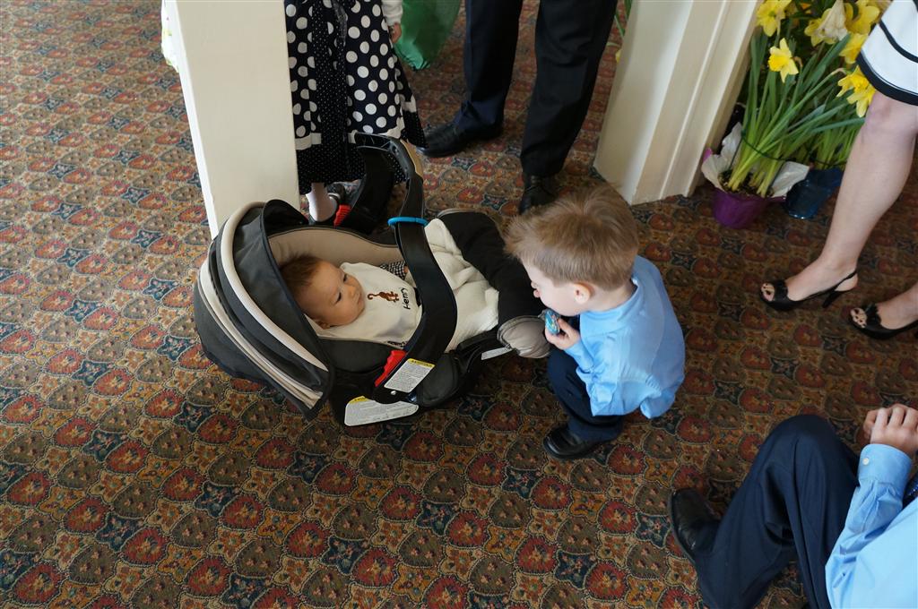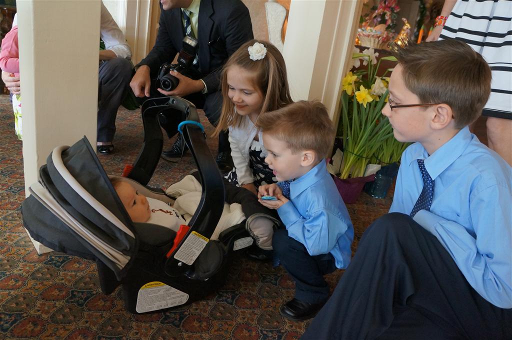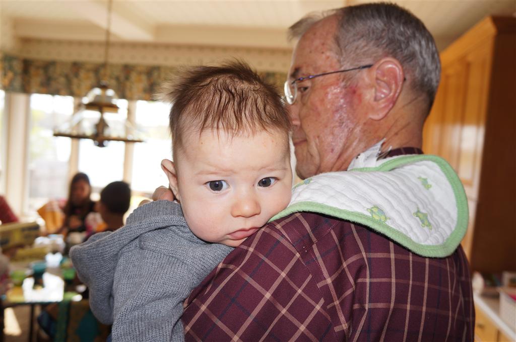 Henry celebrated his first Easter this week with his first trip to Grandma and Grandpa’s house. He was a champ during the car rides, sleeping pretty much the whole time both ways. His naptimes, however, were not as good. The only solid naps that he took all weekend were on Grandma’s lap. He had lots of fun meeting more family members and being oohed and ahhed over by adults and kiddos alike. All that excitement still didn’t product our first giggle – but he sure seemed awfully close a few times!