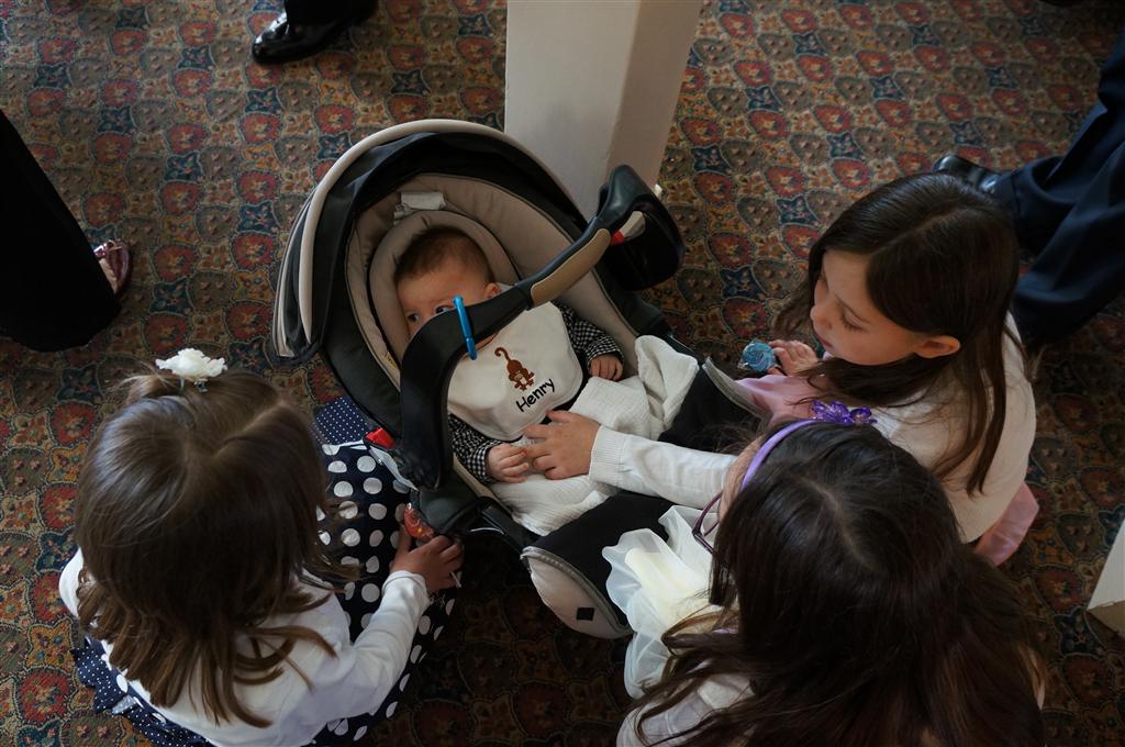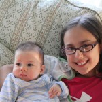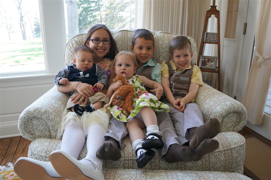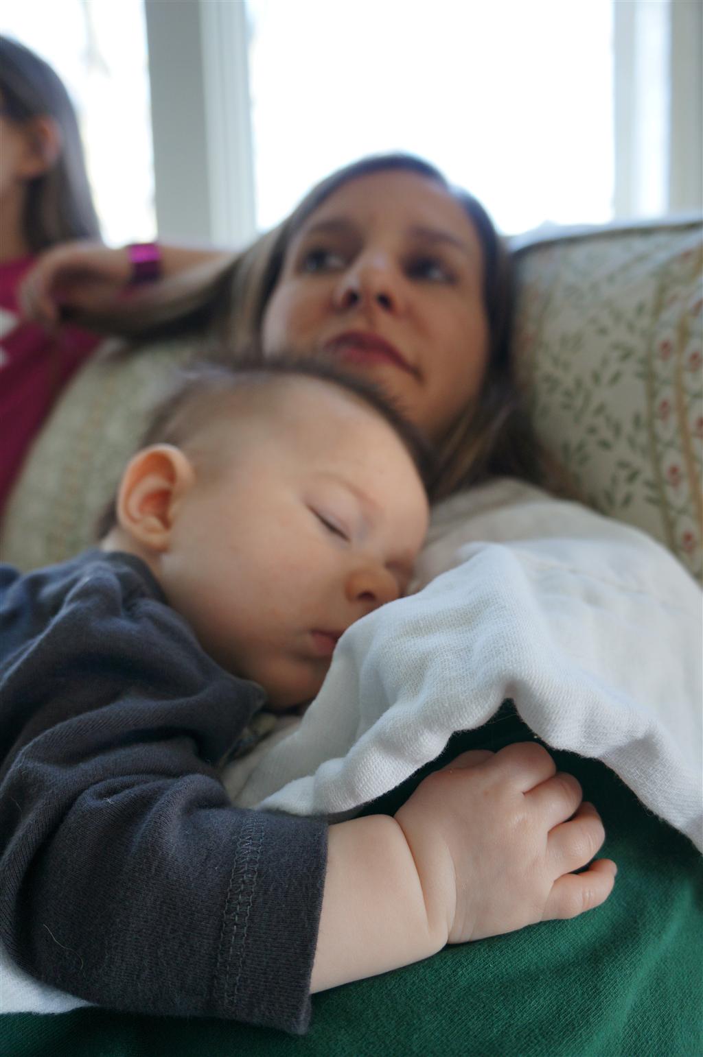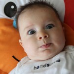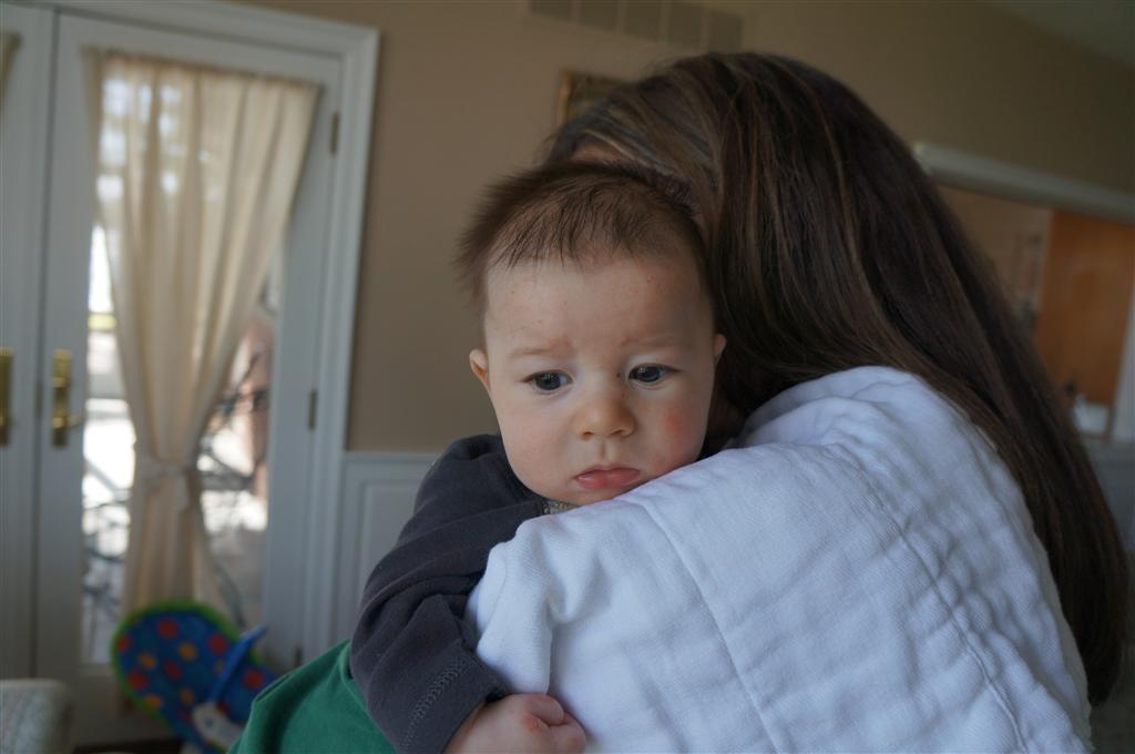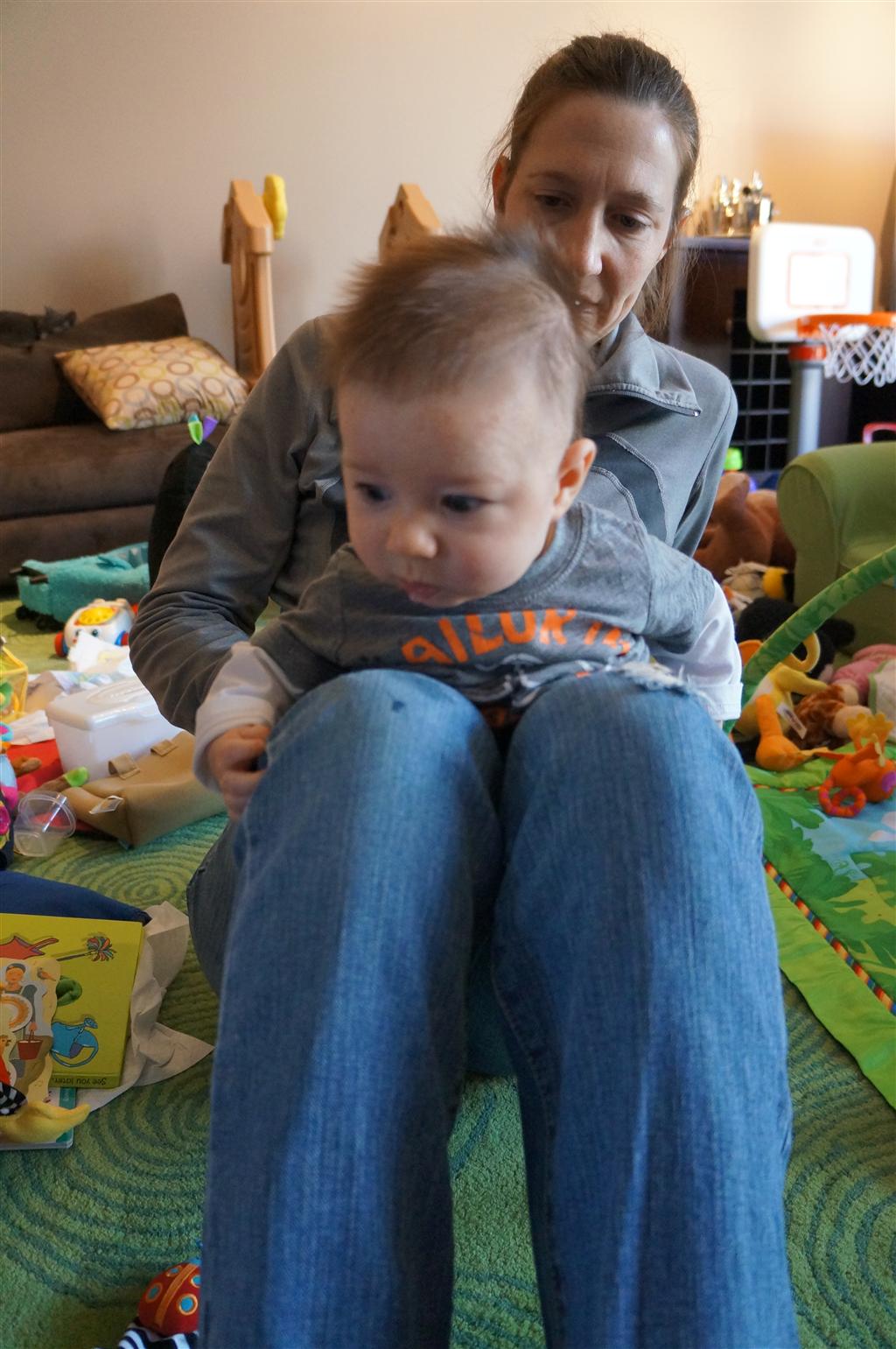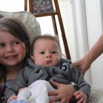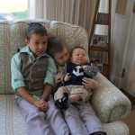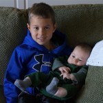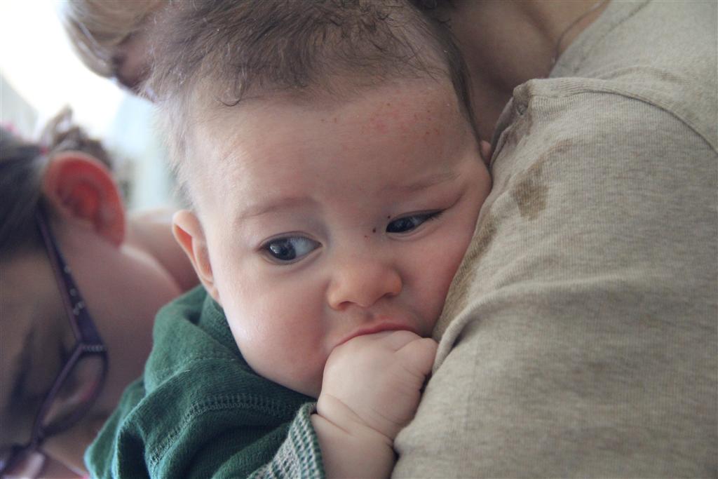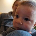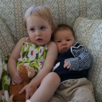 Henry celebrated his first Easter this week with his first trip to Grandma and Grandpa’s house. He was a champ during the car rides, sleeping pretty much the whole time both ways. His naptimes, however, were not as good. The only solid naps that he took all weekend were on Grandma’s lap. He had lots of fun meeting more family members and being oohed and ahhed over by adults and kiddos alike. All that excitement still didn’t product our first giggle – but he sure seemed awfully close a few times!