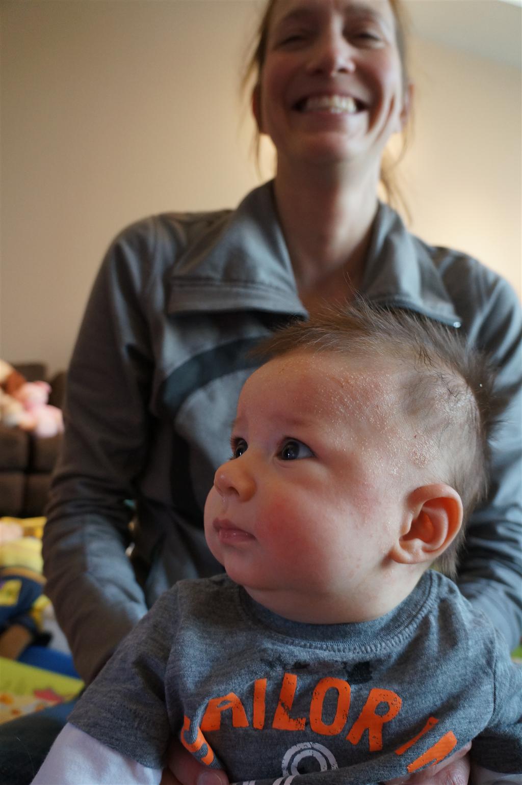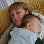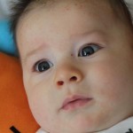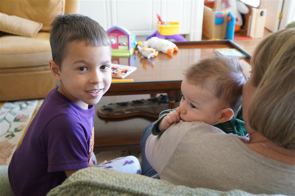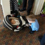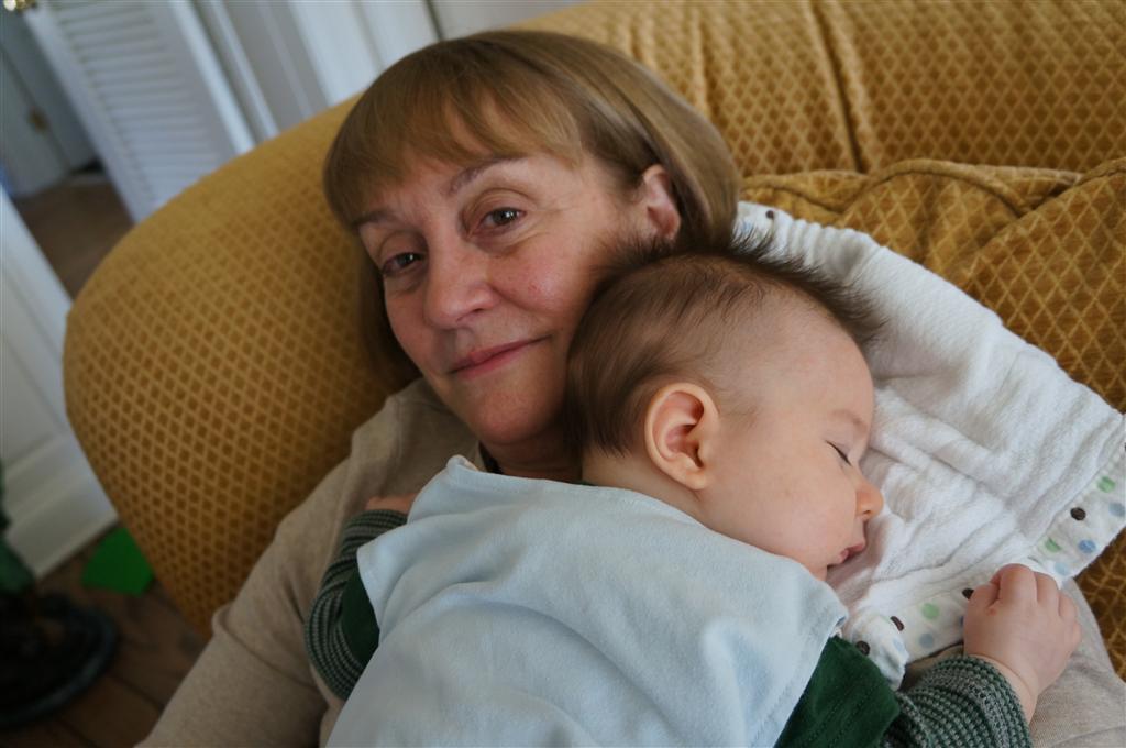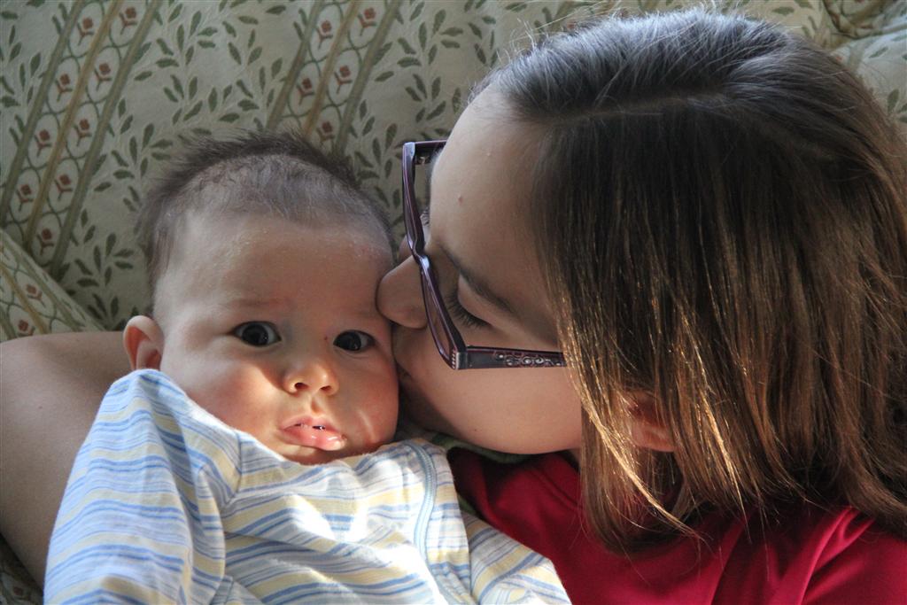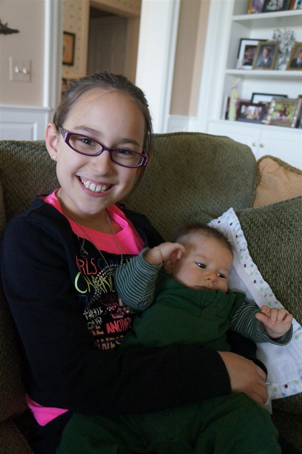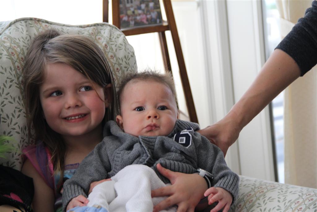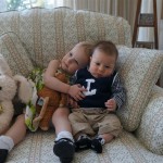 Henry celebrated his first Easter this week with his first trip to Grandma and Grandpa’s house. He was a champ during the car rides, sleeping pretty much the whole time both ways. His naptimes, however, were not as good. The only solid naps that he took all weekend were on Grandma’s lap. He had lots of fun meeting more family members and being oohed and ahhed over by adults and kiddos alike. All that excitement still didn’t product our first giggle – but he sure seemed awfully close a few times!