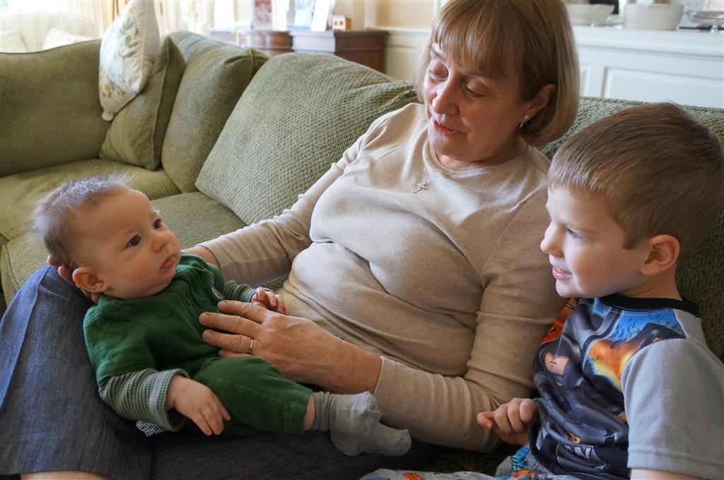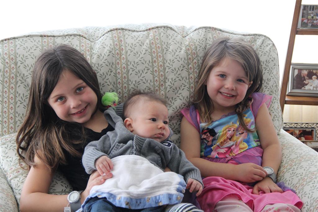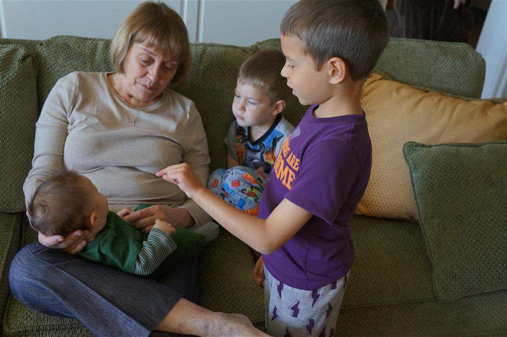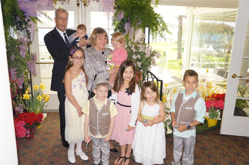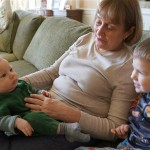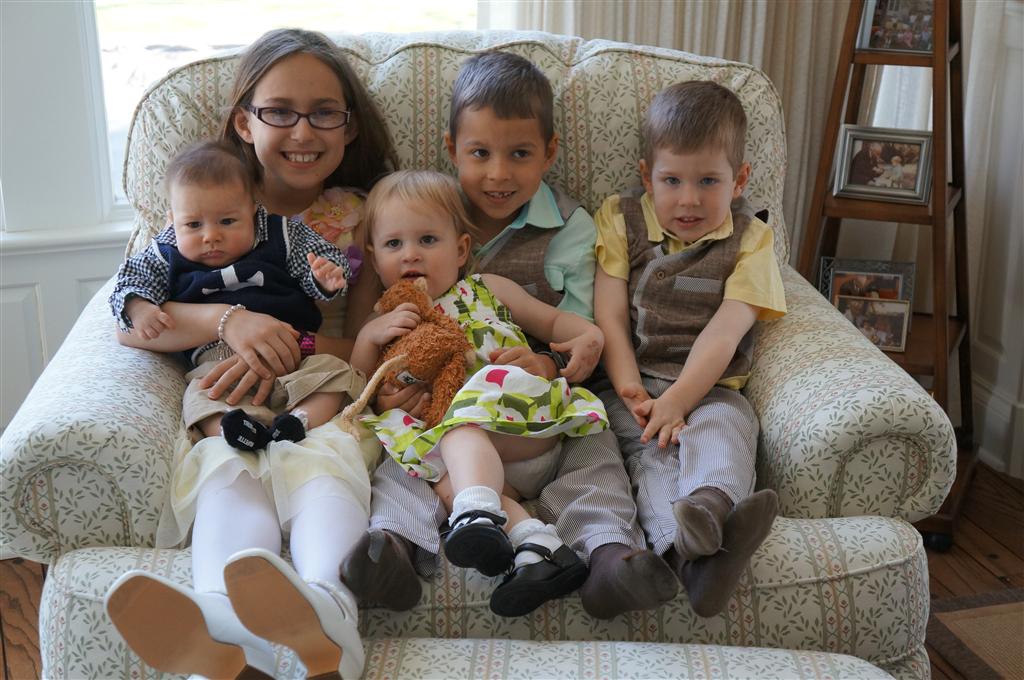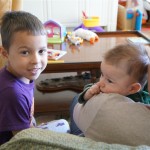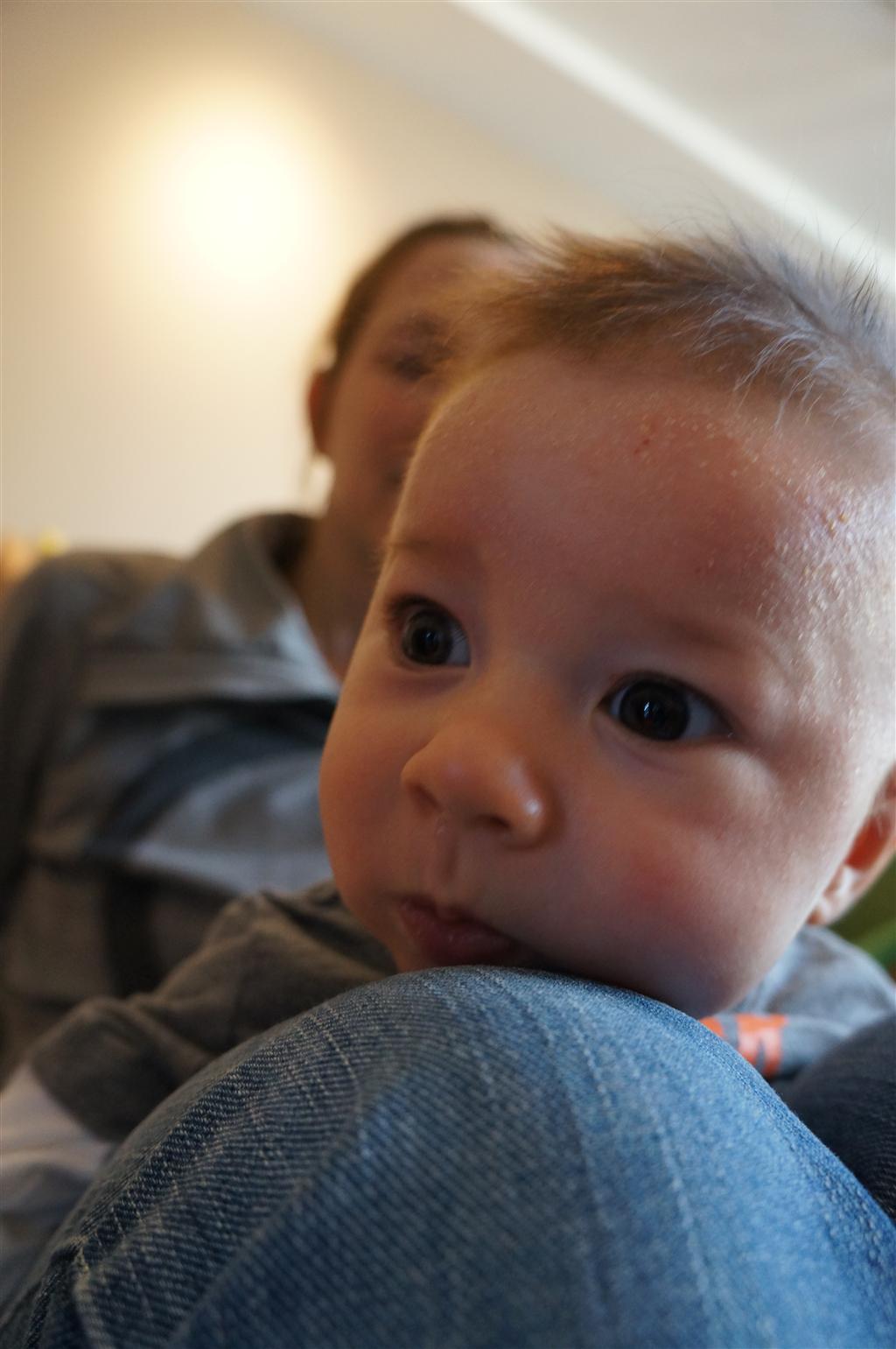 Henry celebrated his first Easter this week with his first trip to Grandma and Grandpa’s house. He was a champ during the car rides, sleeping pretty much the whole time both ways. His naptimes, however, were not as good. The only solid naps that he took all weekend were on Grandma’s lap. He had lots of fun meeting more family members and being oohed and ahhed over by adults and kiddos alike. All that excitement still didn’t product our first giggle – but he sure seemed awfully close a few times!