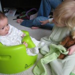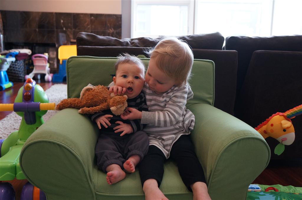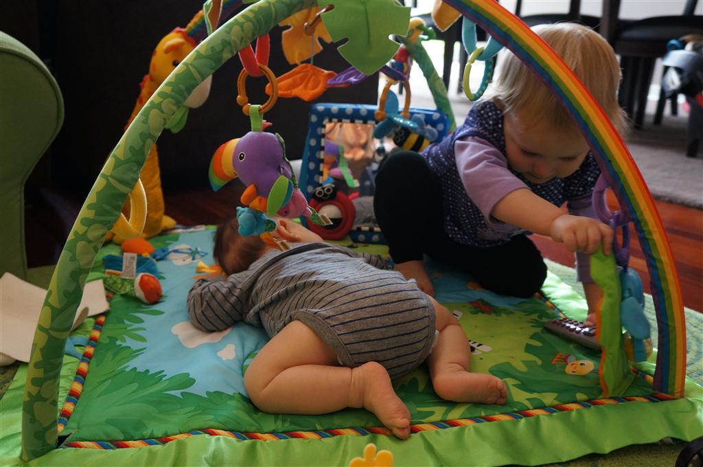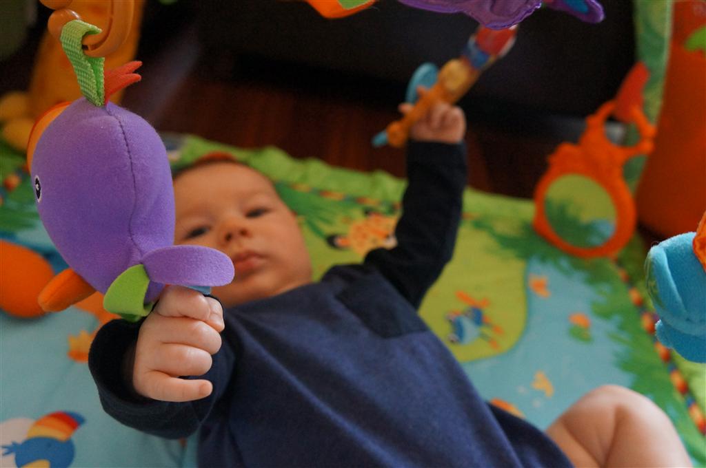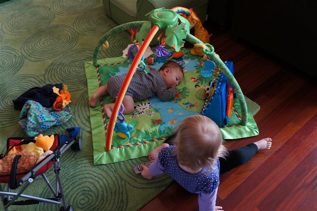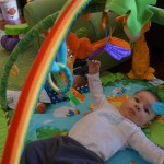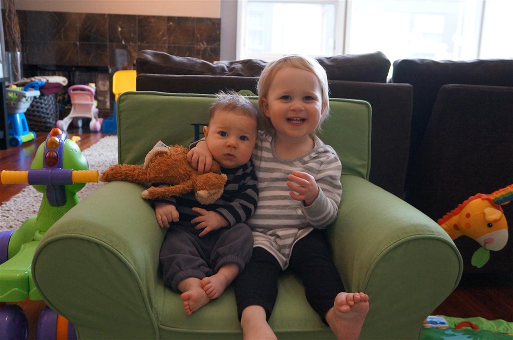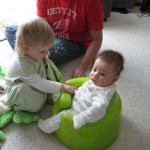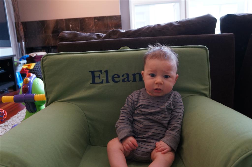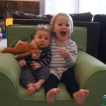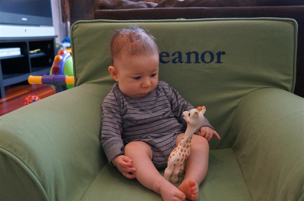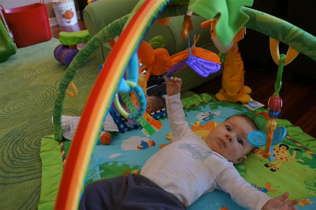 Henry has been getting very active with his hands. He now routinely grabs items both handing above him on the playmat, and also just sitting beside him. He also performed his first hand to hand transfer this week – very impressive. Henry also went to his first music class this week – and Eleanor spent an hour in “sibling care” without anyone that she knew. Mom didn’t hear any screaming and the teacher didn’t report any trouble upon pickup :)